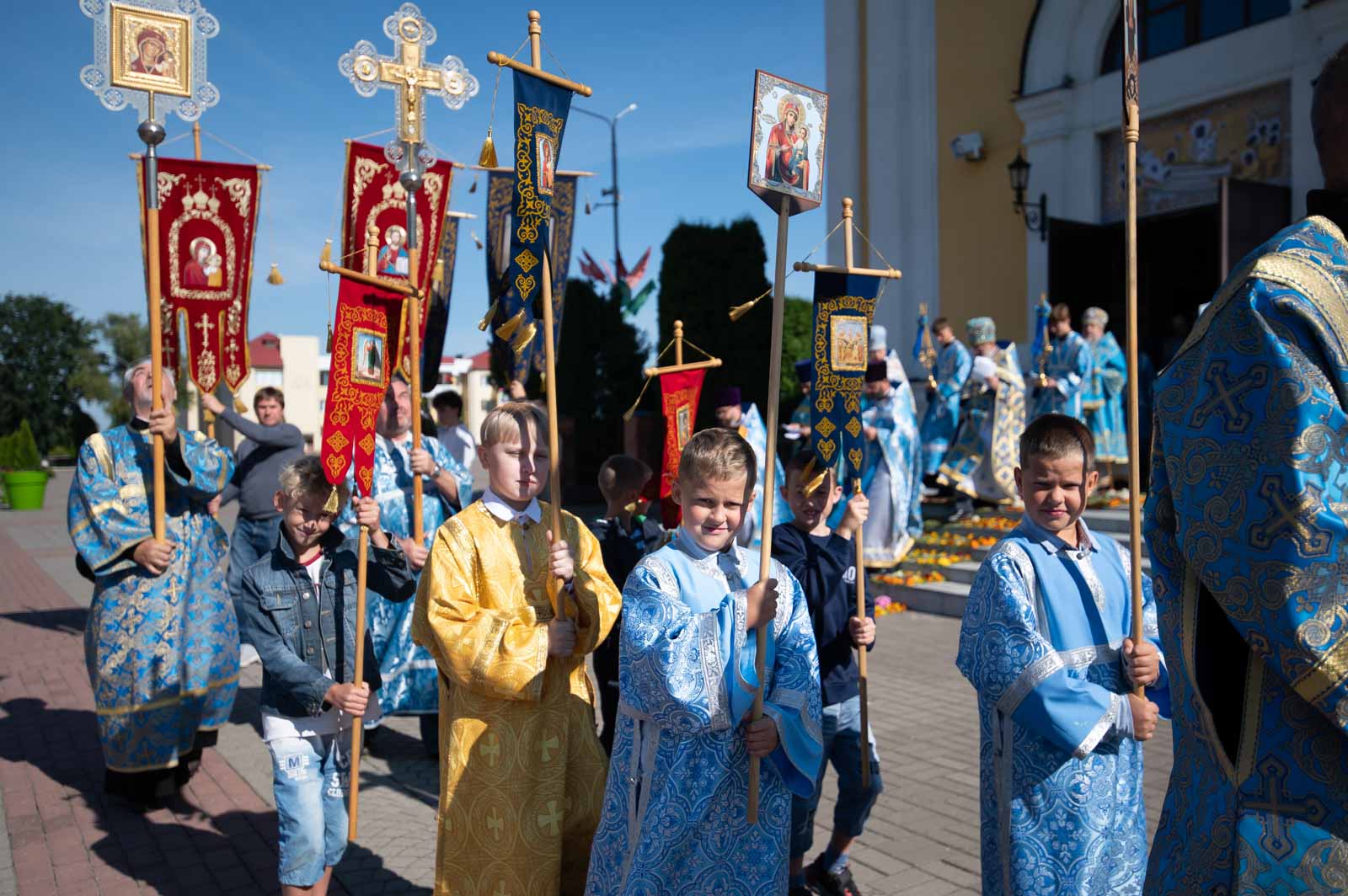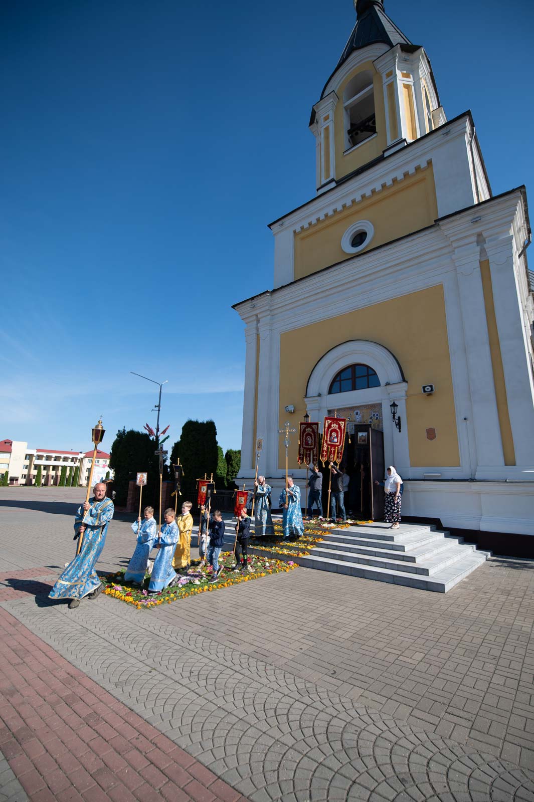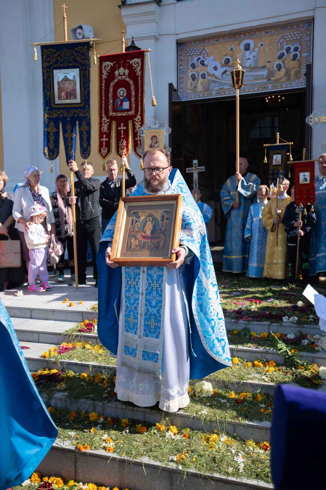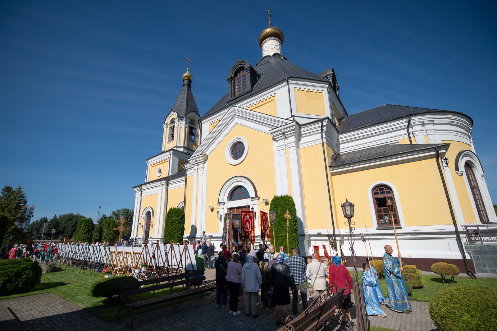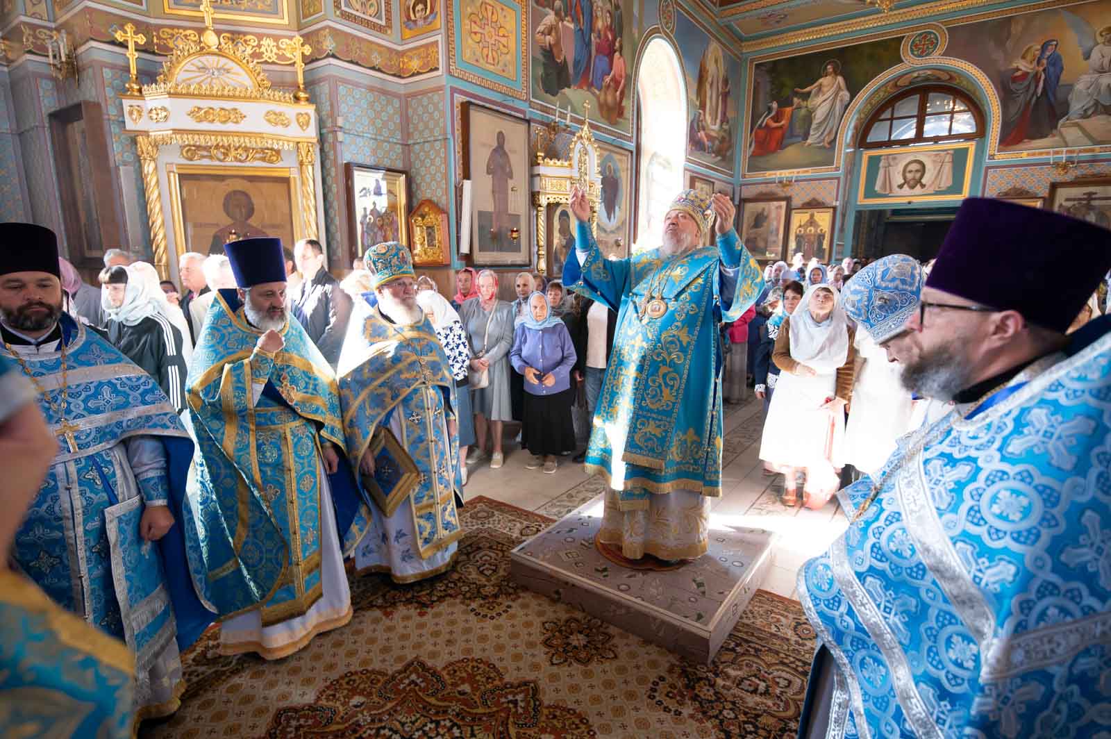 В завершение Литургии духовенство и молящиеся во главе с архипастырем совершили крестный ход вокруг собора.