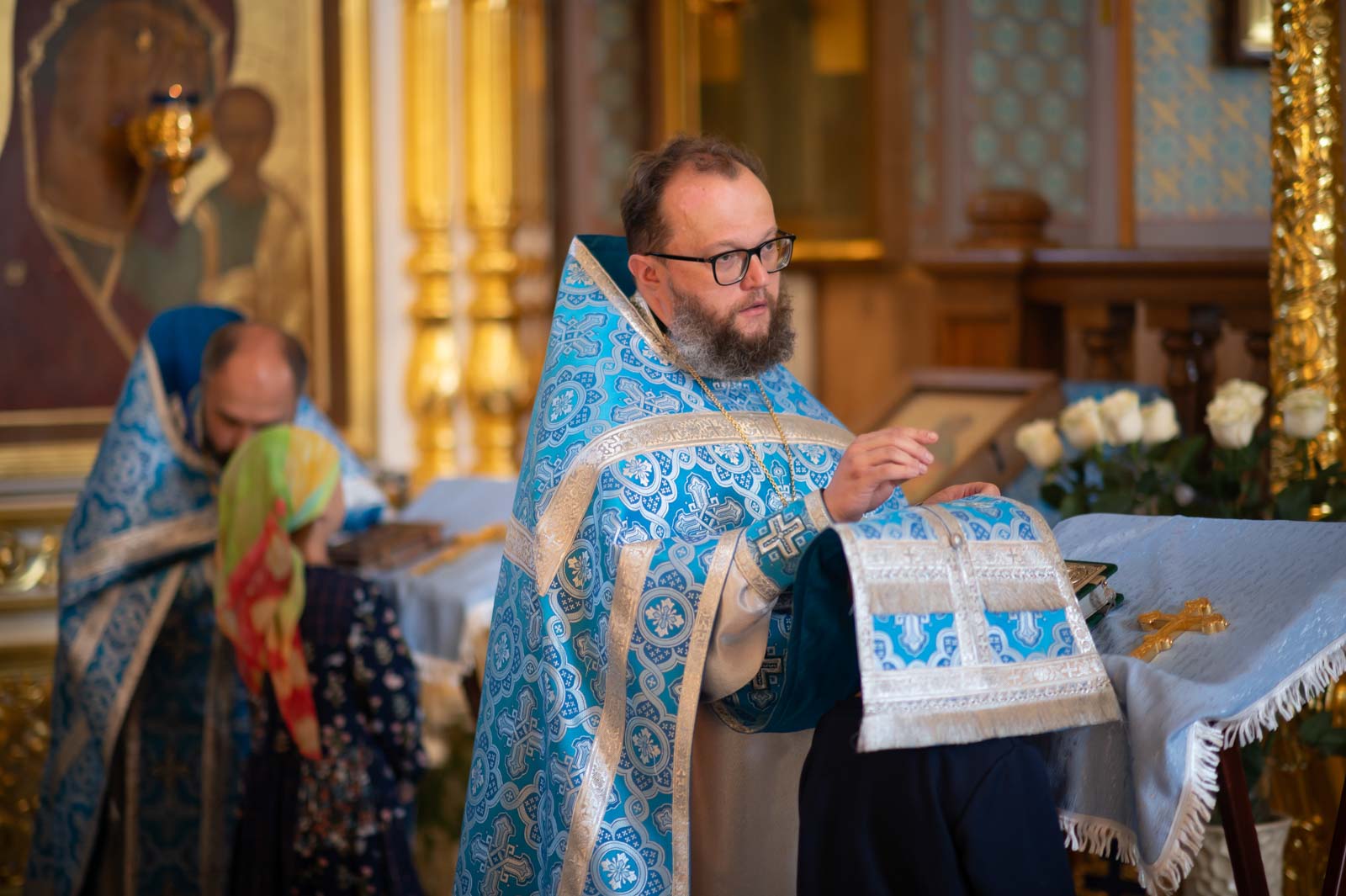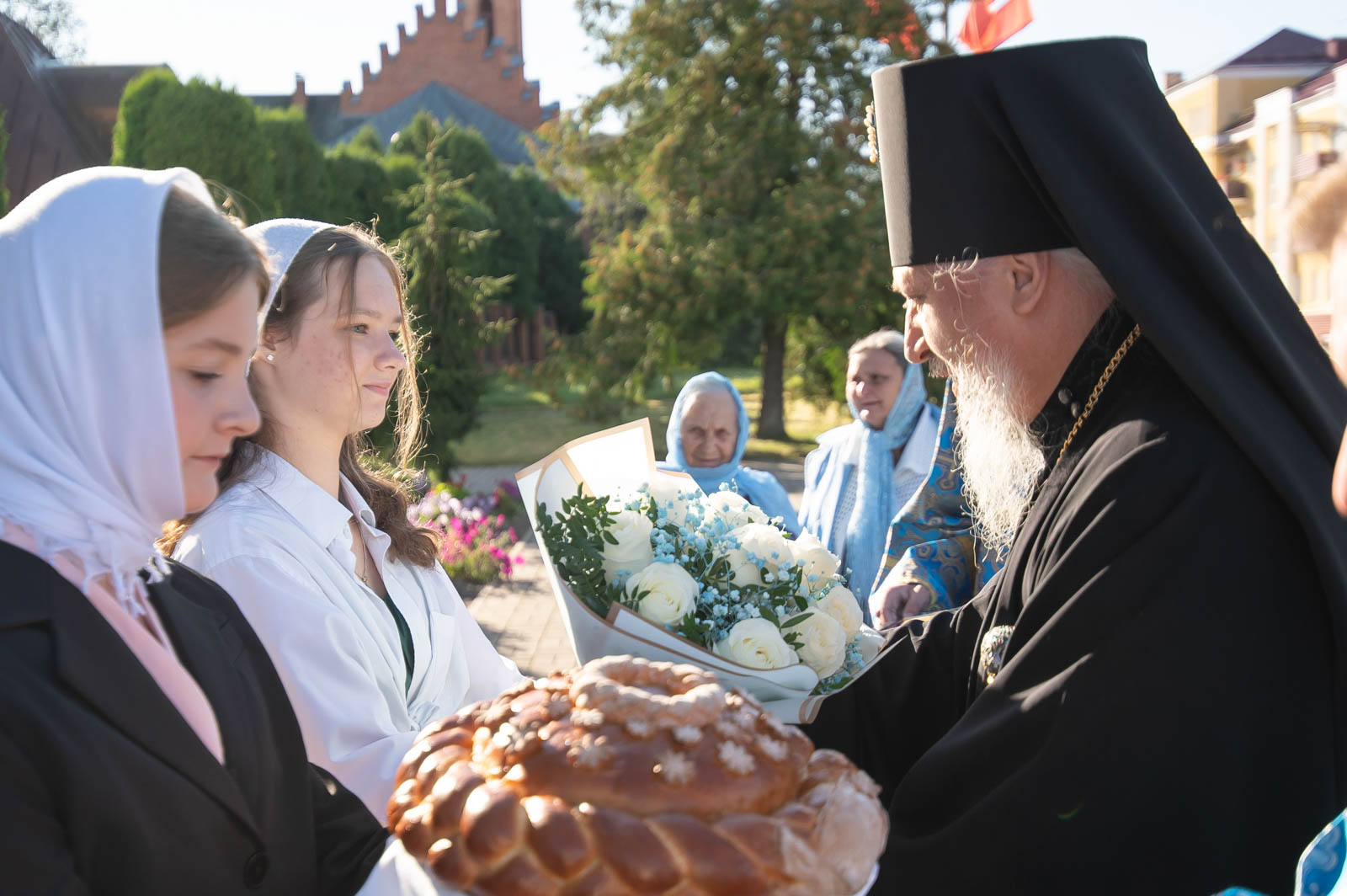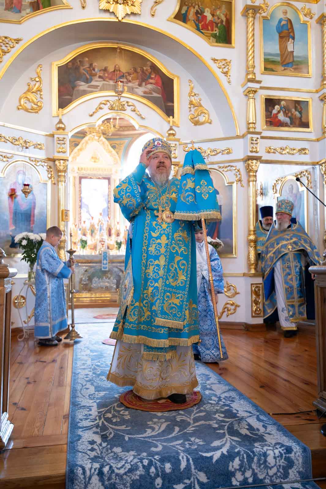 Его Высокопреосвященству сослужили: секретарь Гомельской епархии протоиерей Георгий Алампиев, благочинный церквей Речицкого округа протоиерей Алексей Пешко и духовенство благочиния.