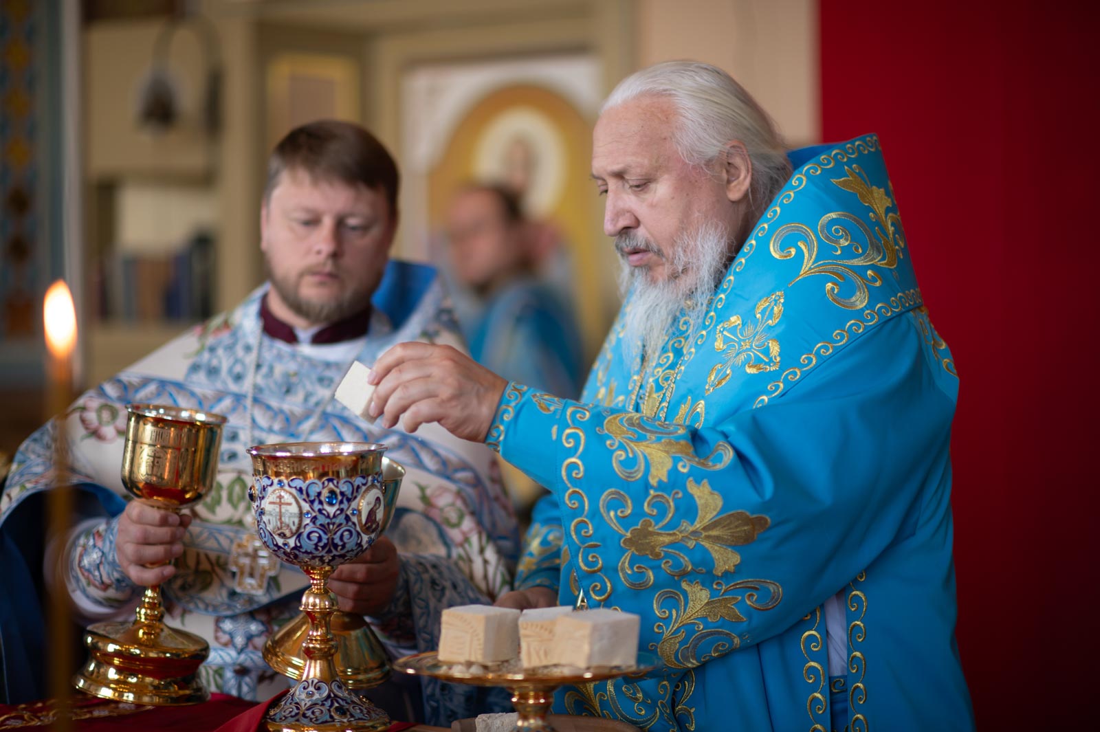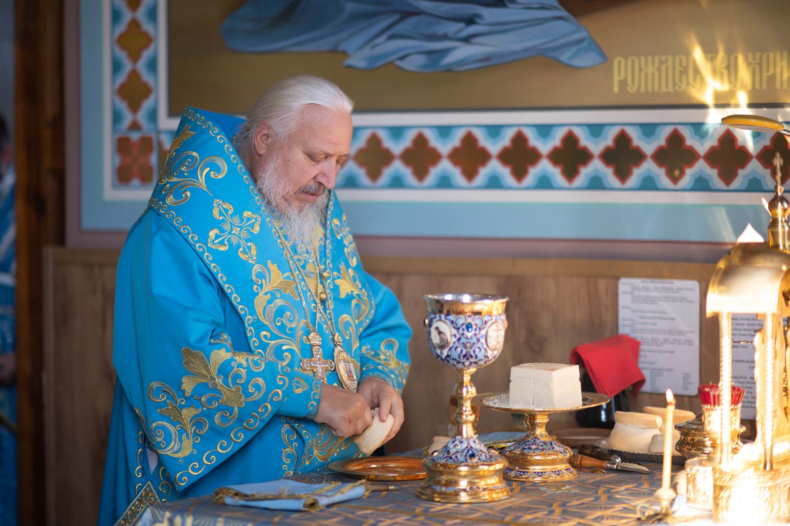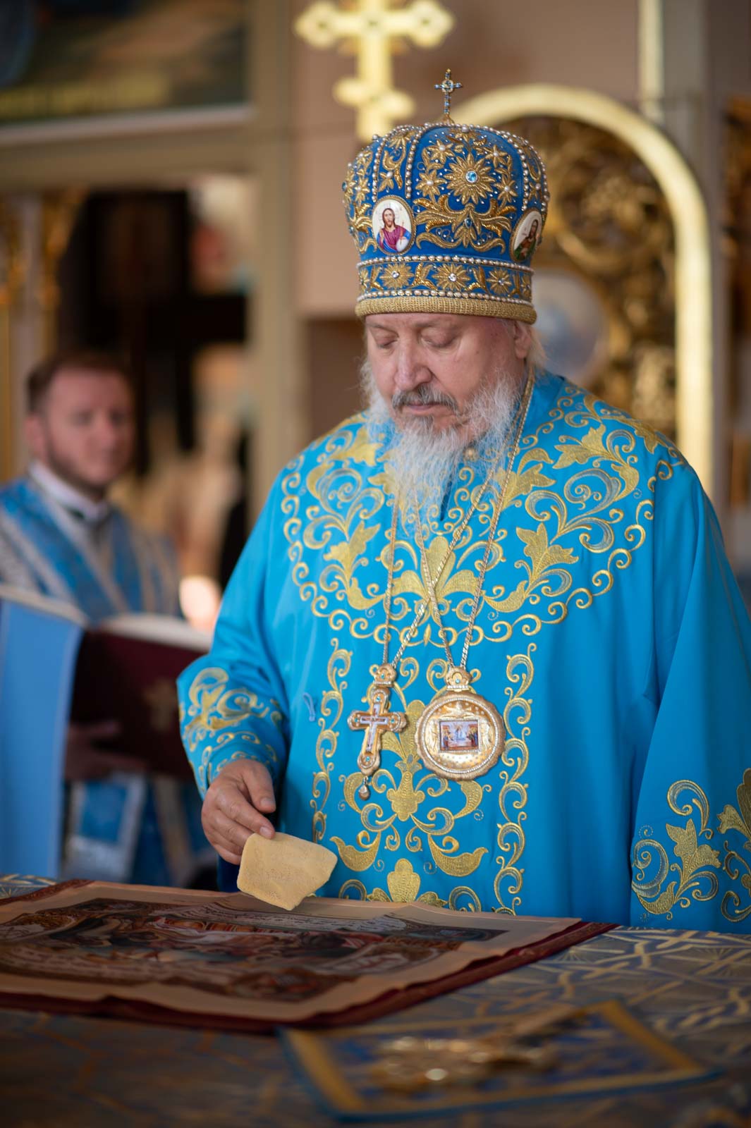 Его Высокопреосвященству сослужили: секретарь Гомельской епархии протоиерей Георгий Алампиев, благочинный церквей Речицкого округа протоиерей Алексей Пешко и духовенство благочиния.