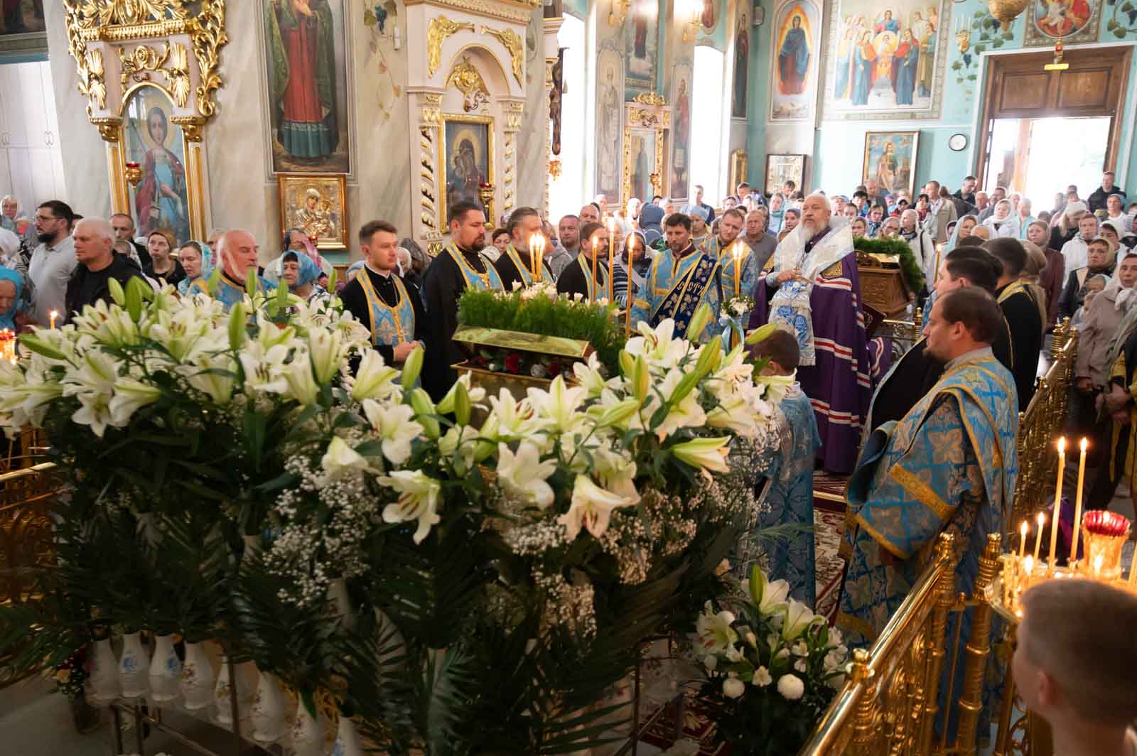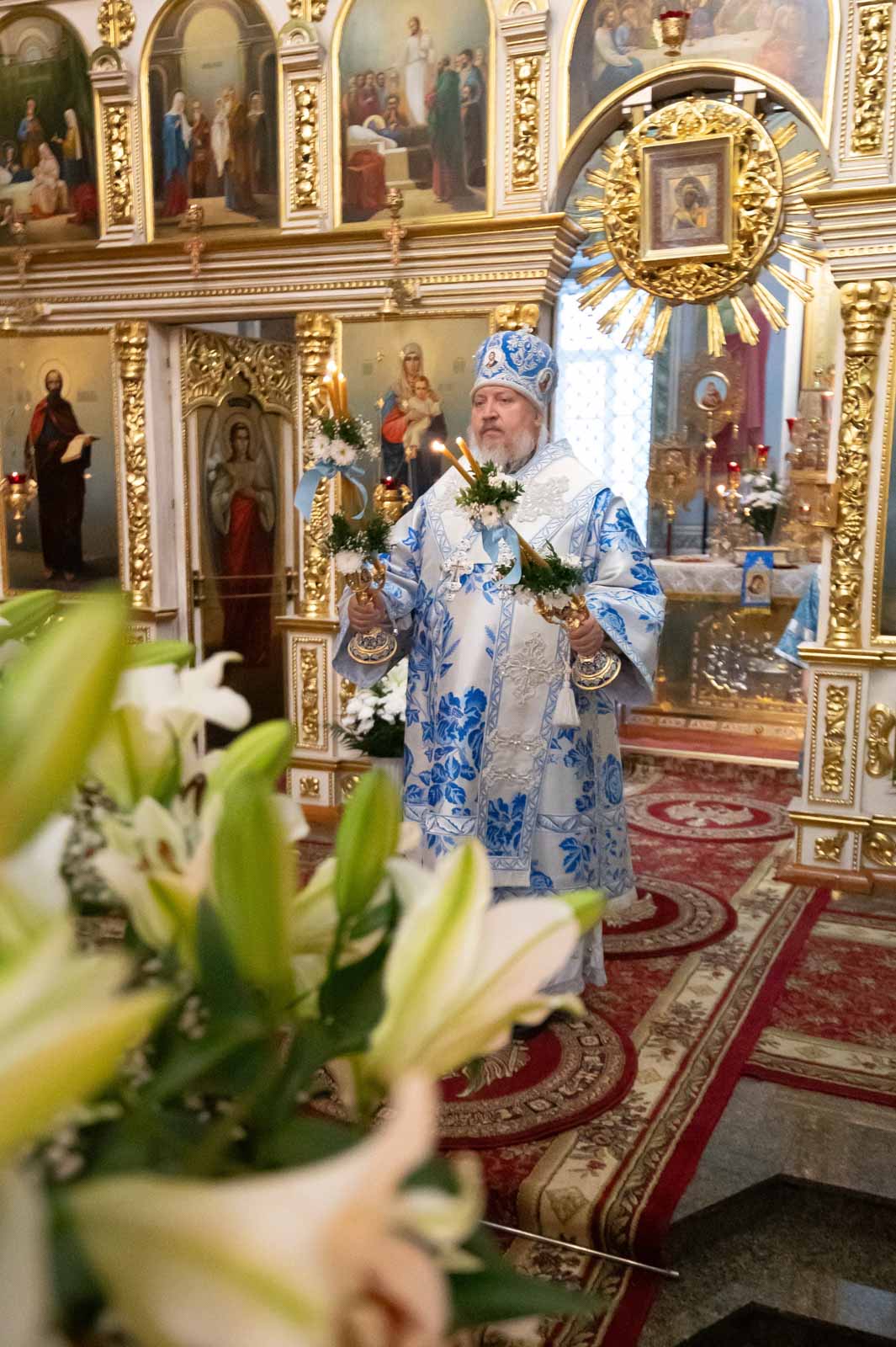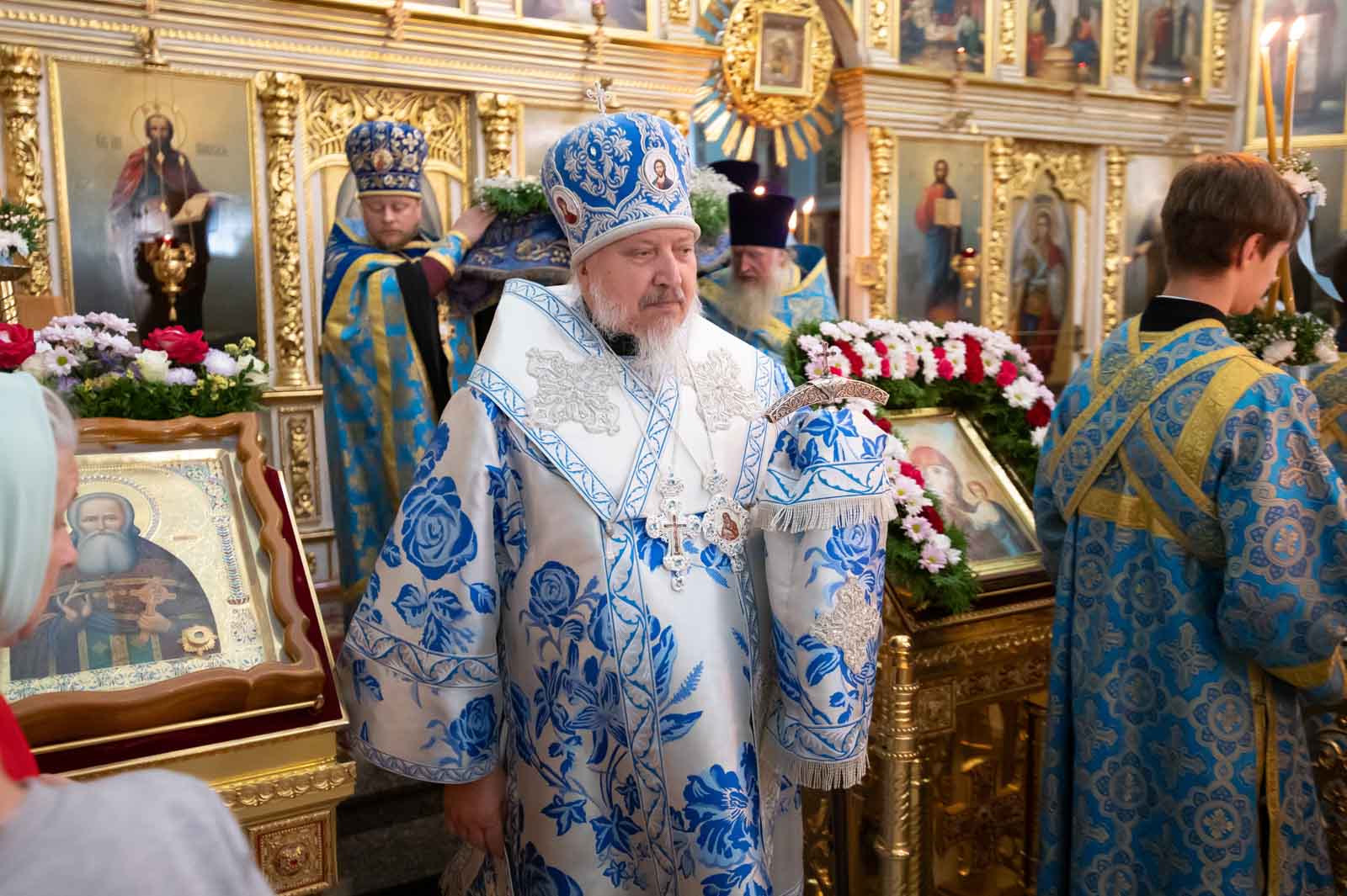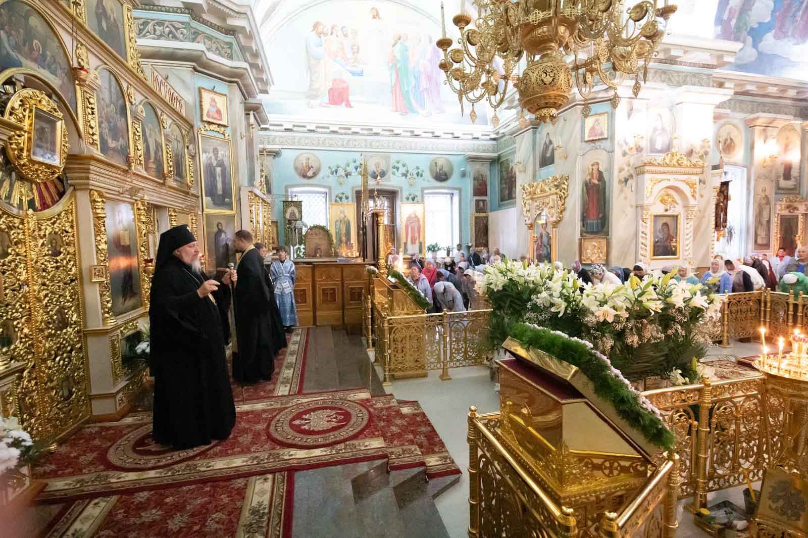 Высокопреосвященнейшему сослужили: секретарь Гомельской епархии протоиерей Георгий Алампиев и духовенство собора.