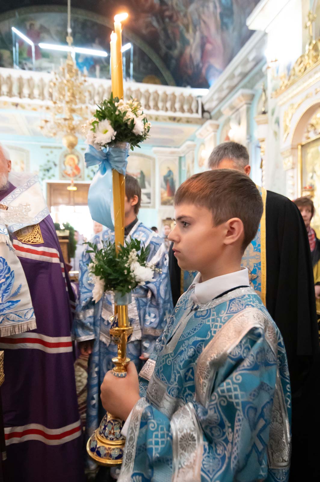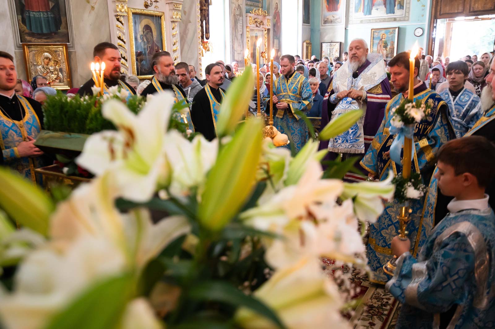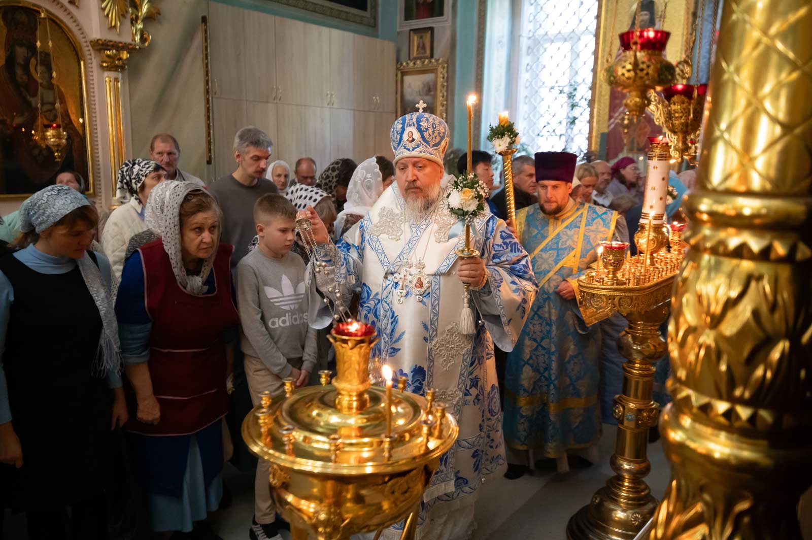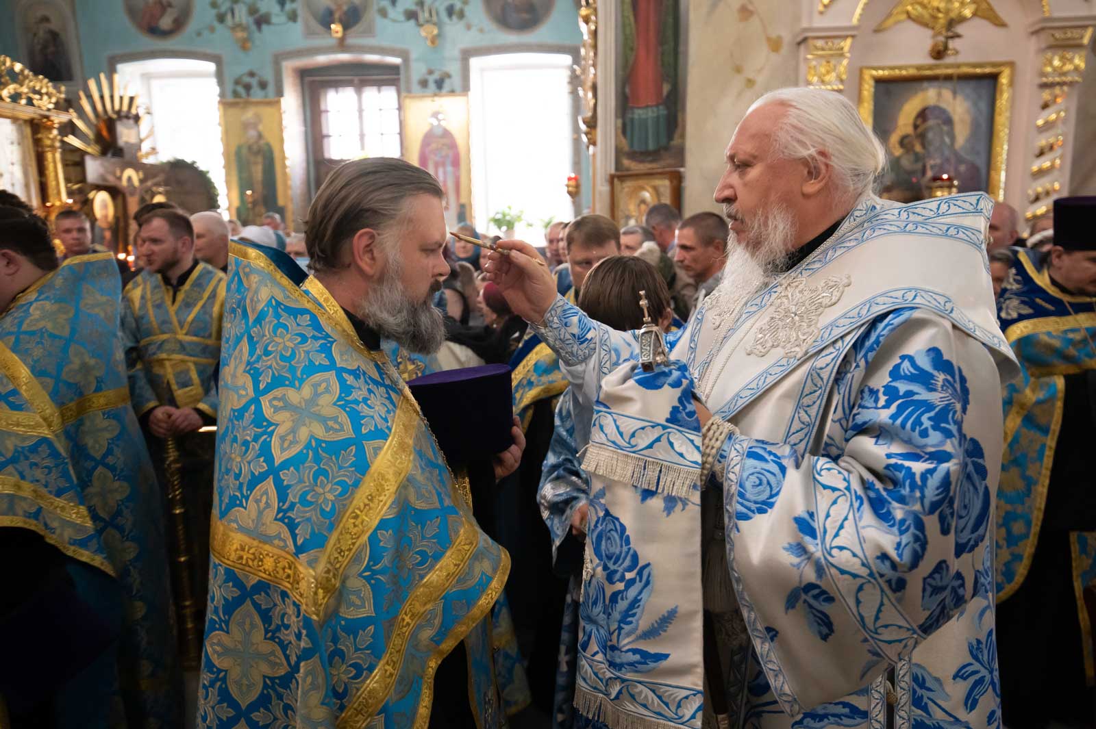 Высокопреосвященнейшему сослужили: секретарь Гомельской епархии протоиерей Георгий Алампиев и духовенство собора.