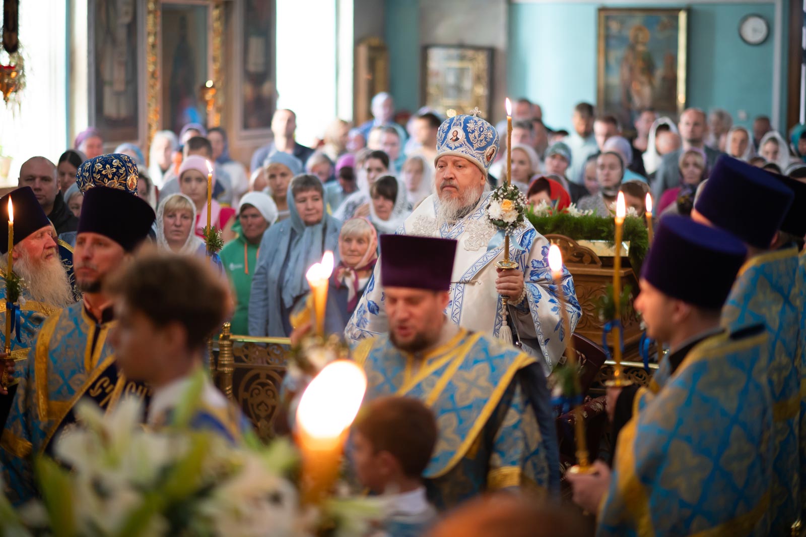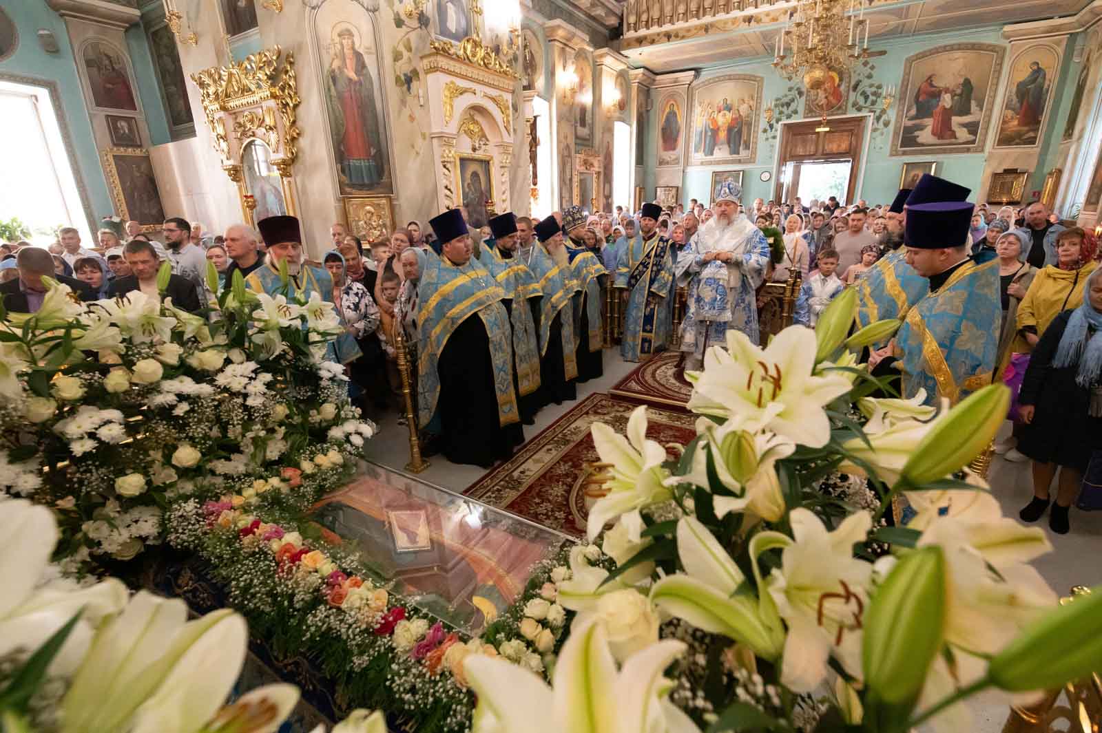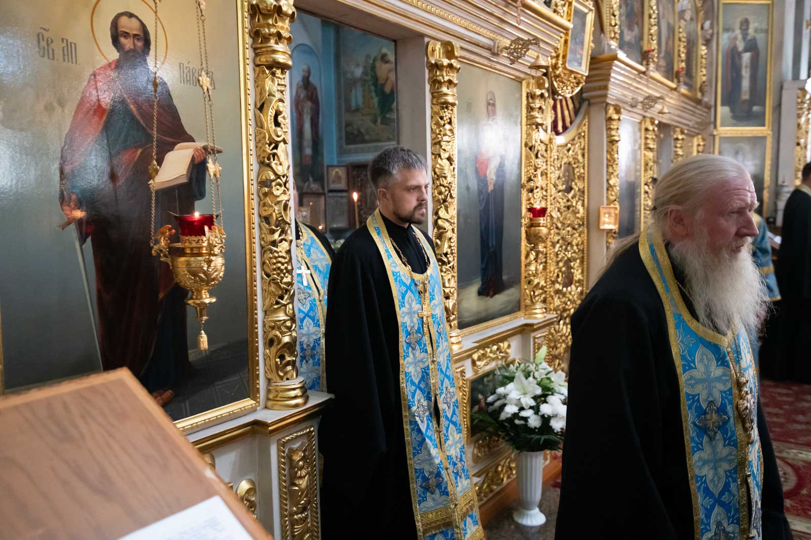 Всенощное бдение 27 августа 2025 года, в канун праздника Успения Пресвятой Владычицы нашей Богородицы и Приснодевы Марии, в Петро-Павловском кафедральном соборе г. Гомеля совершил Высокопреосвященнейший Стефан, архиепископ Гомельский и Жлобинский.