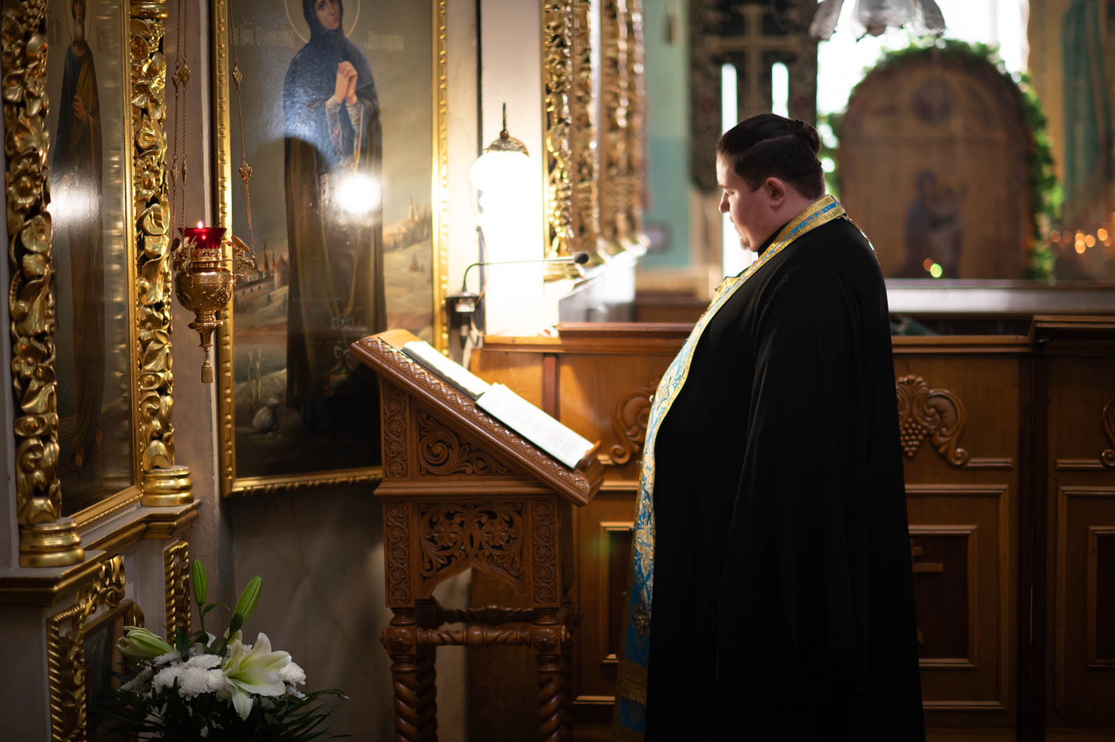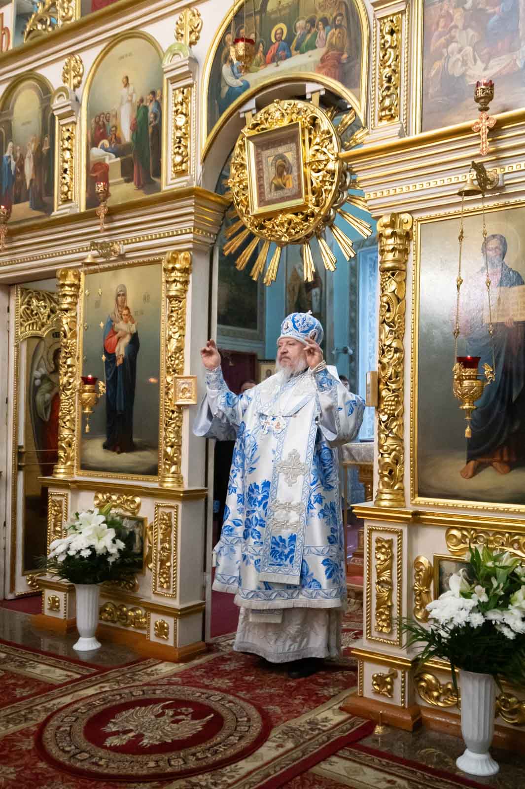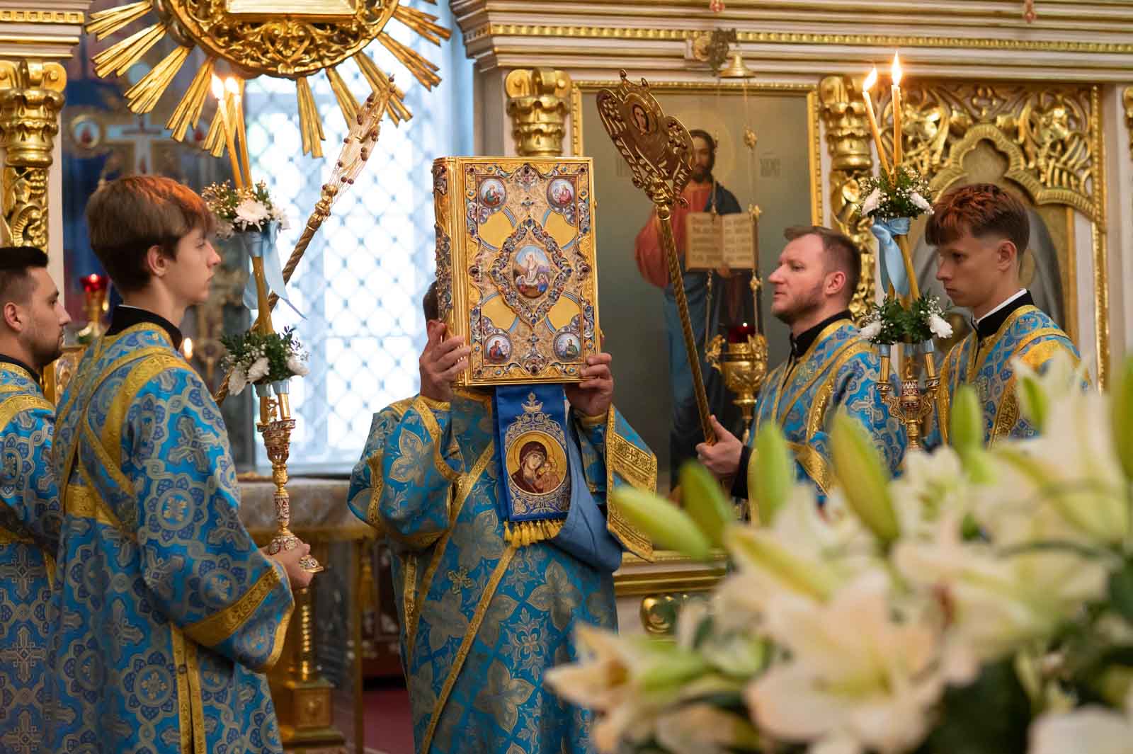 Всенощное бдение 27 августа 2025 года, в канун праздника Успения Пресвятой Владычицы нашей Богородицы и Приснодевы Марии, в Петро-Павловском кафедральном соборе г. Гомеля совершил Высокопреосвященнейший Стефан, архиепископ Гомельский и Жлобинский.