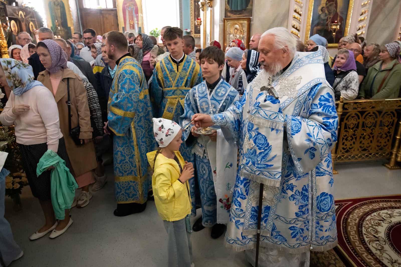 За богослужением архиепископ Стефан помазал прихожан освященным елеем.