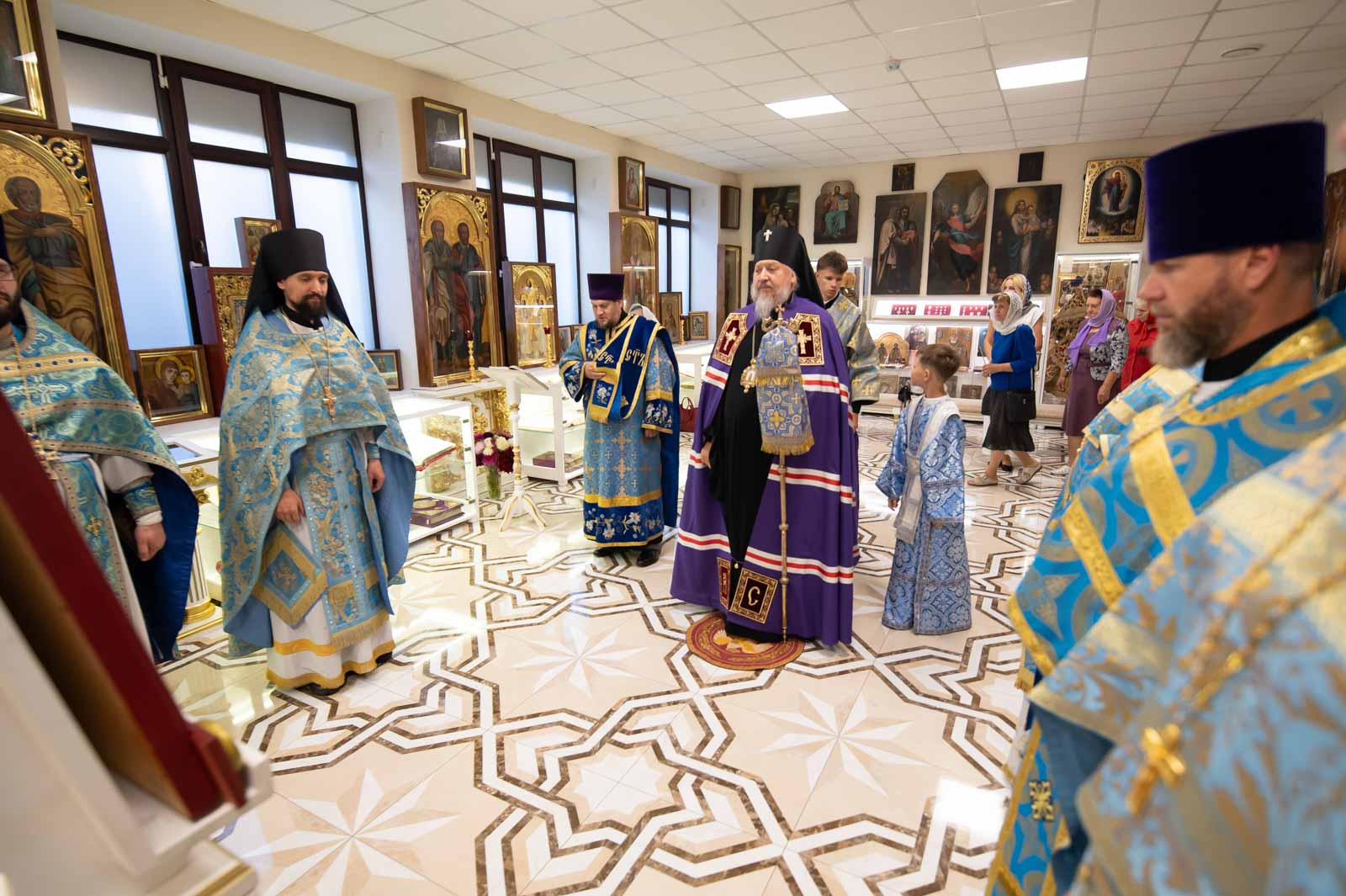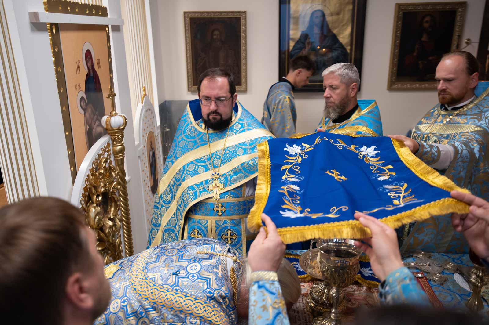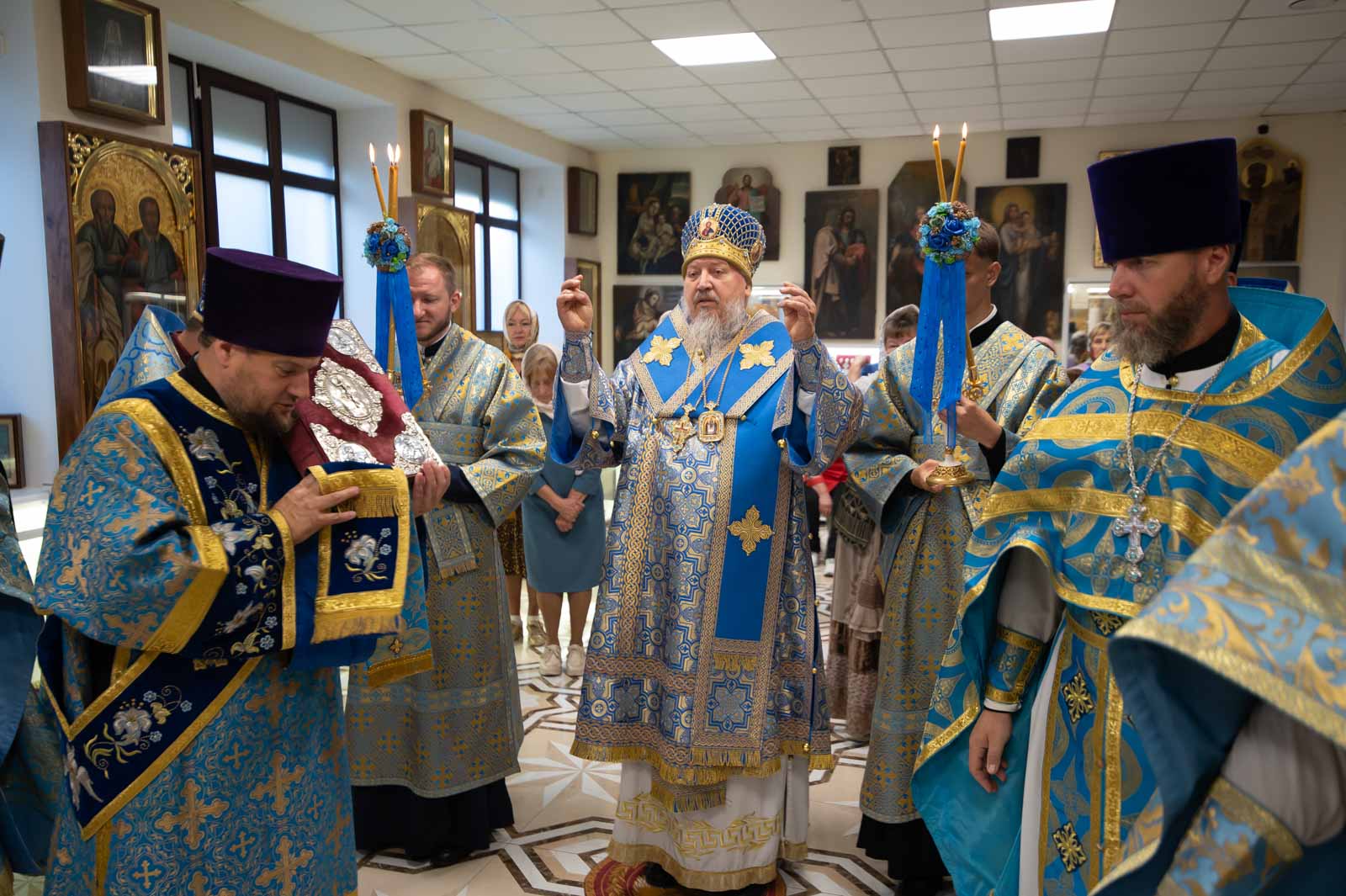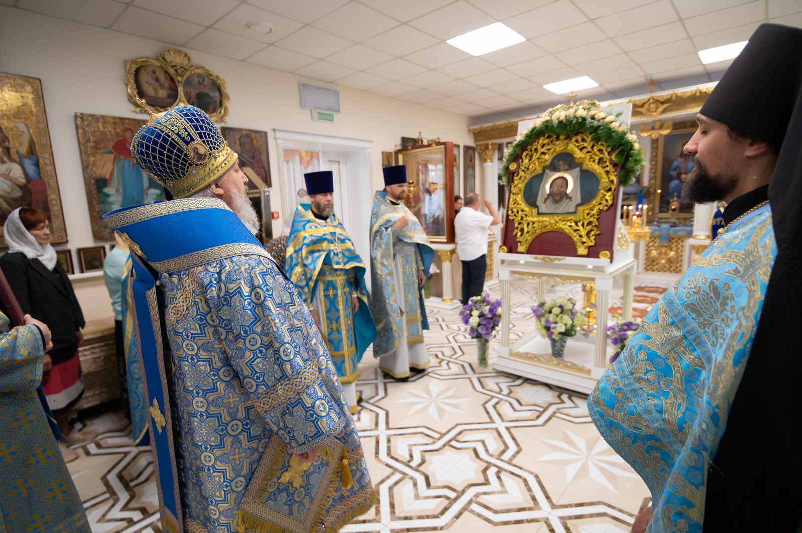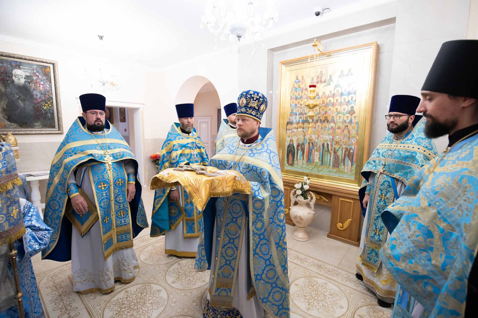 Божественную литургию 29 августа 2025г., в день Попразднство Успения Пресвятой Богородицы и день памяти перенесения из Едессы в Константинополь Нерукотворного Образа (Убруса) Господа Иисуса Христа, Высокопреосвященнейший Стефан, архиепископ Гомельский и Жлобинский, совершил в домовом храме-музее в честь собора Всех Белорусских Святых.