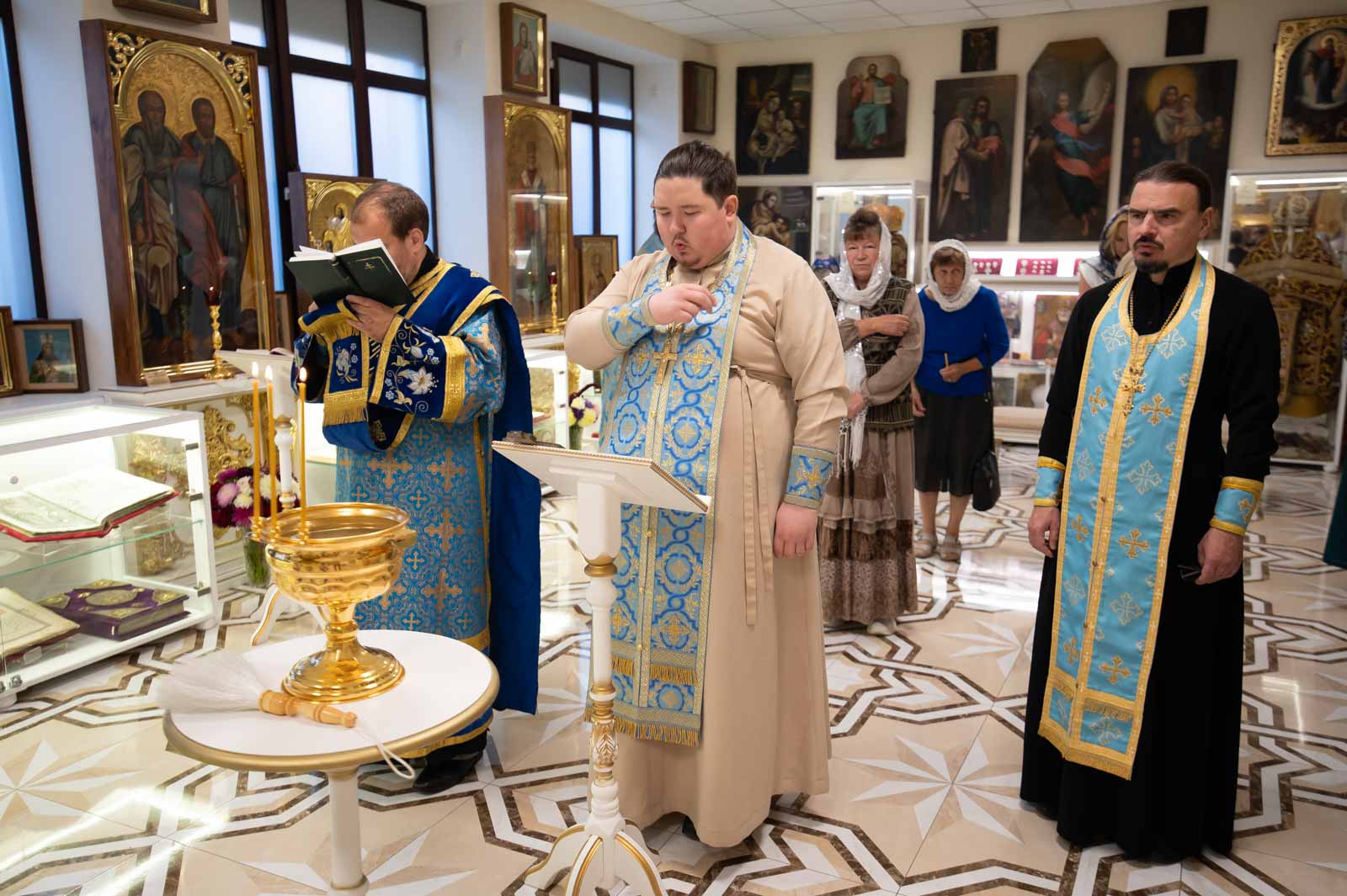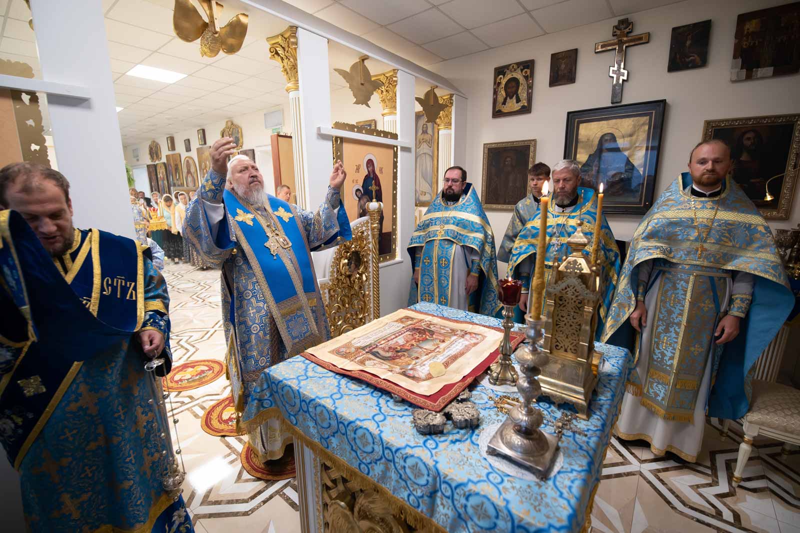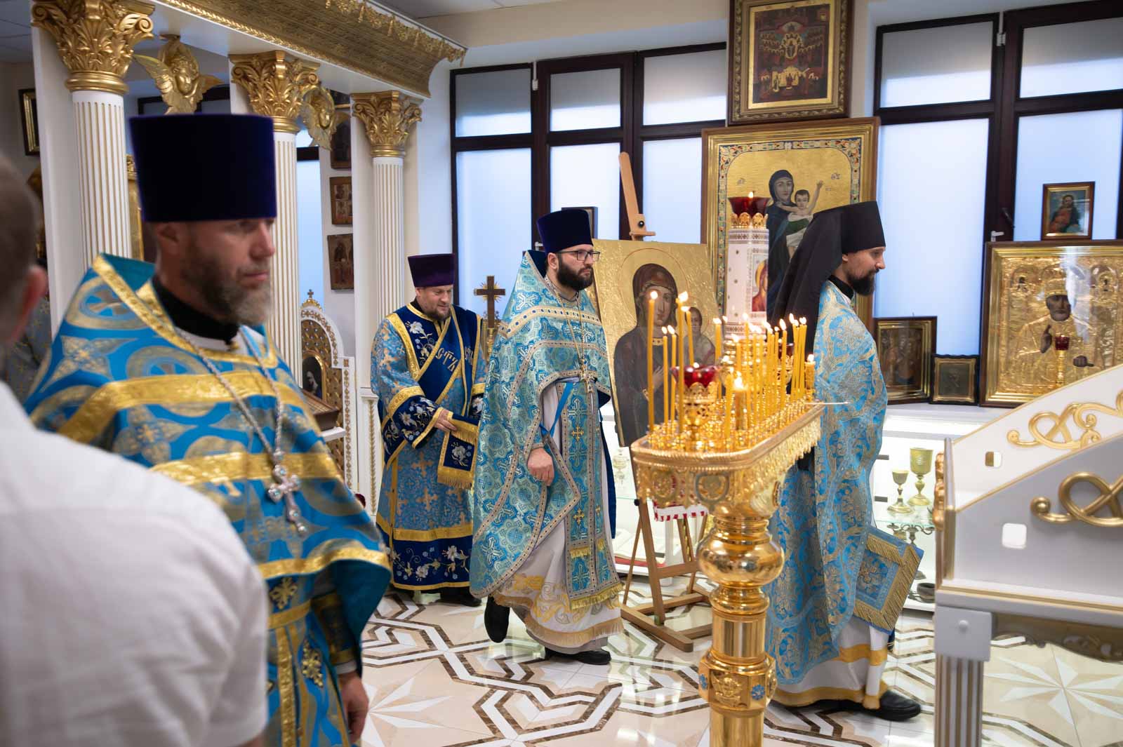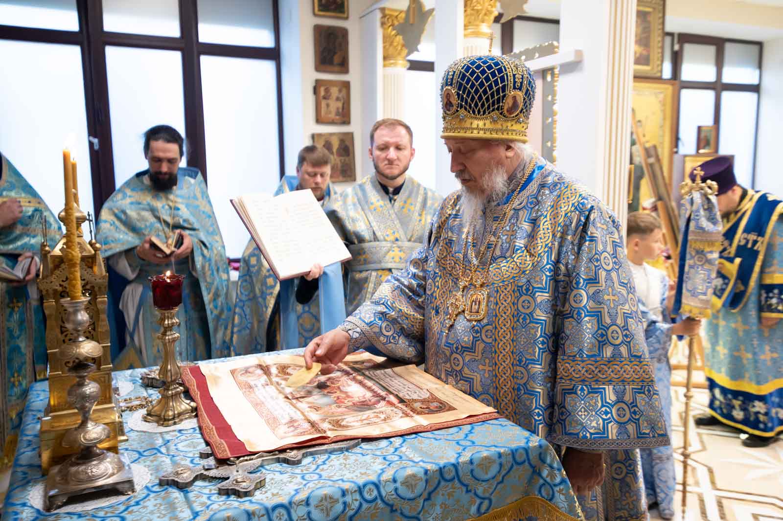 Божественную литургию 29 августа 2025г., в день Попразднство Успения Пресвятой Богородицы и день памяти перенесения из Едессы в Константинополь Нерукотворного Образа (Убруса) Господа Иисуса Христа, Высокопреосвященнейший Стефан, архиепископ Гомельский и Жлобинский, совершил в домовом храме-музее в честь собора Всех Белорусских Святых.
