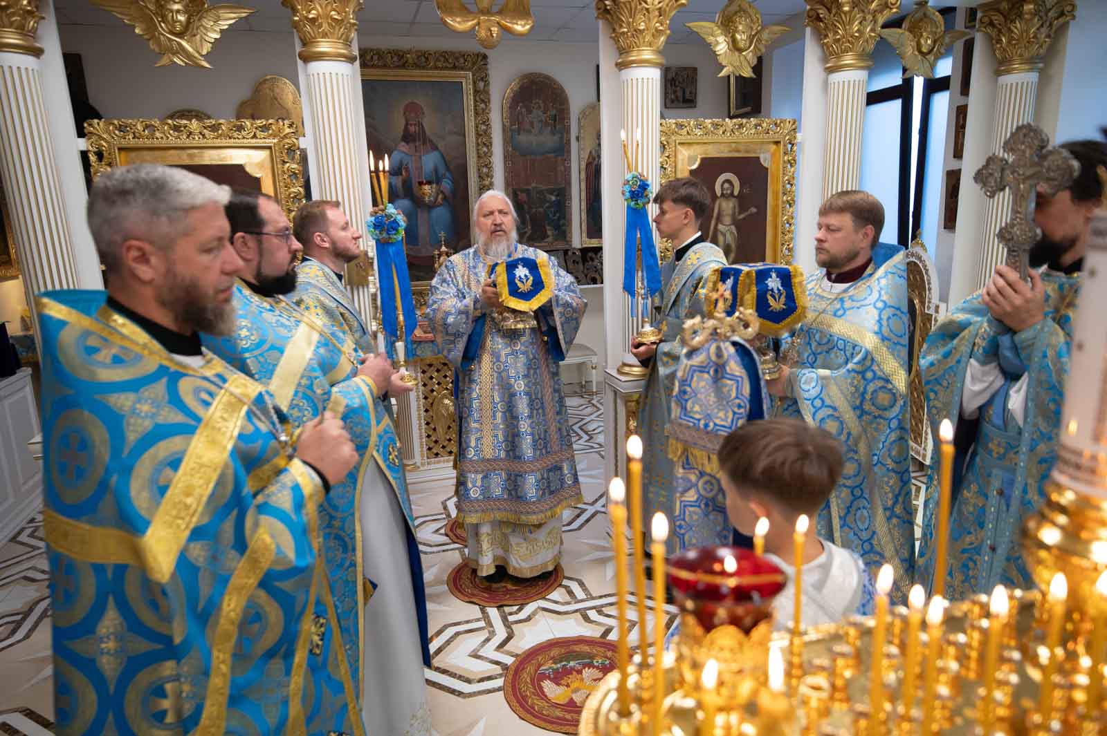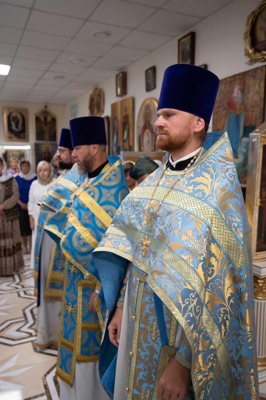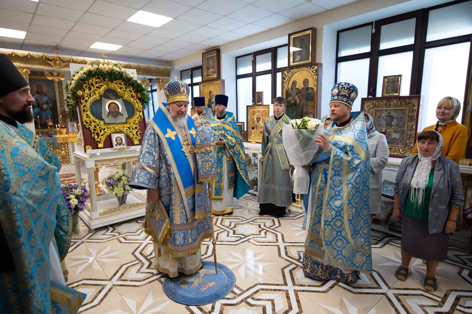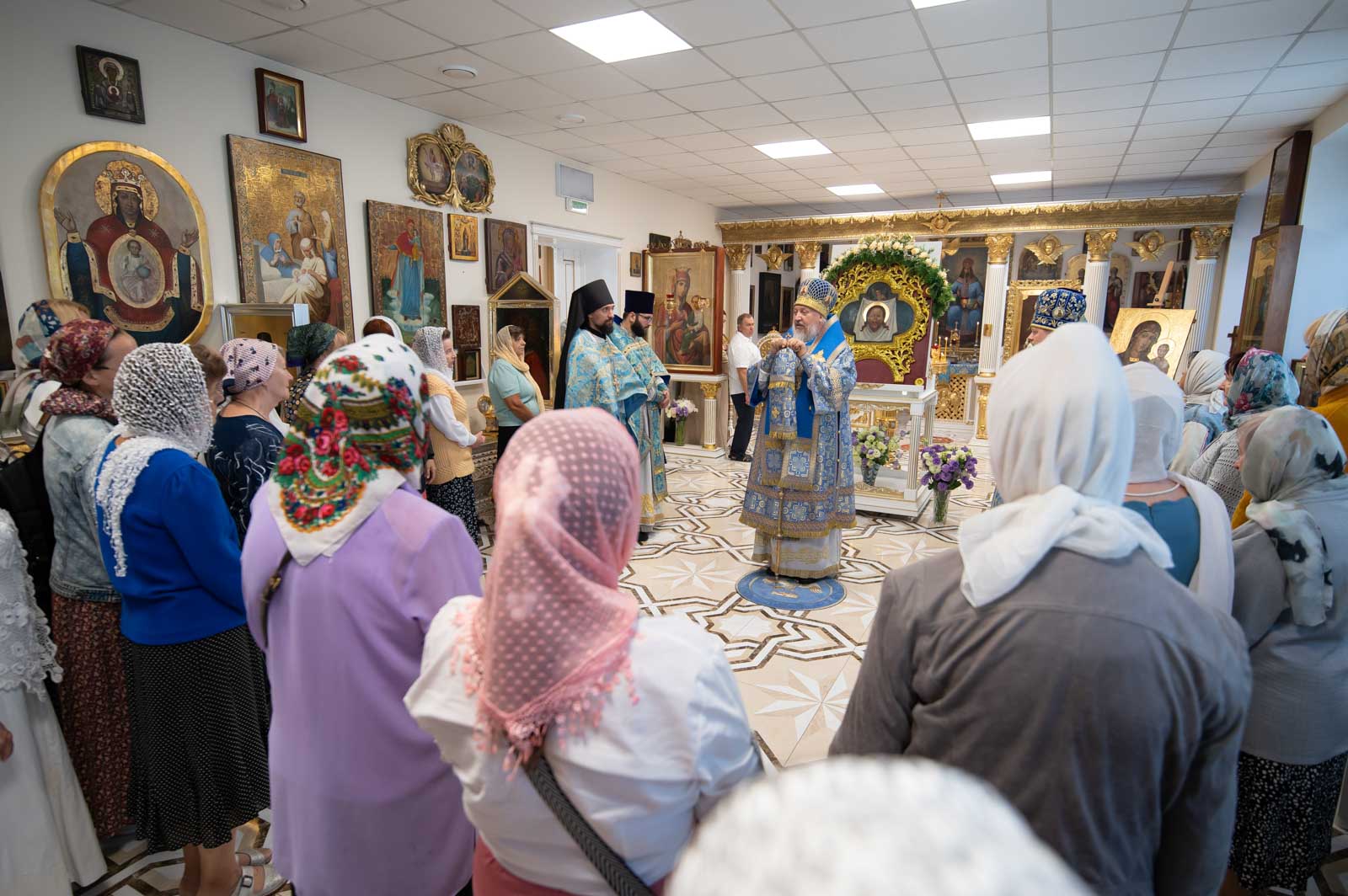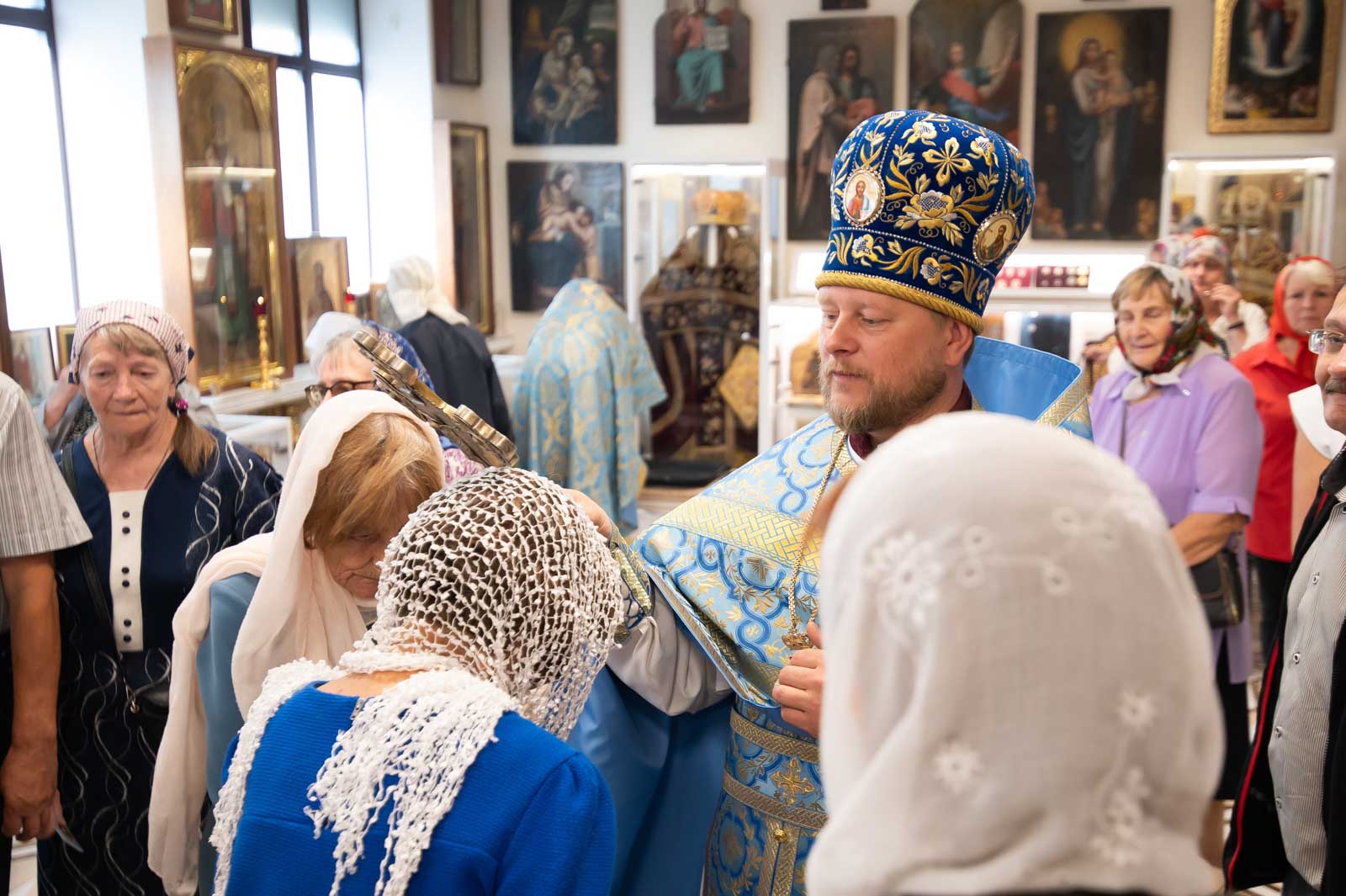 Божественную литургию 29 августа 2025г., в день Попразднство Успения Пресвятой Богородицы и день памяти перенесения из Едессы в Константинополь Нерукотворного Образа (Убруса) Господа Иисуса Христа, Высокопреосвященнейший Стефан, архиепископ Гомельский и Жлобинский, совершил в домовом храме-музее в честь собора Всех Белорусских Святых.