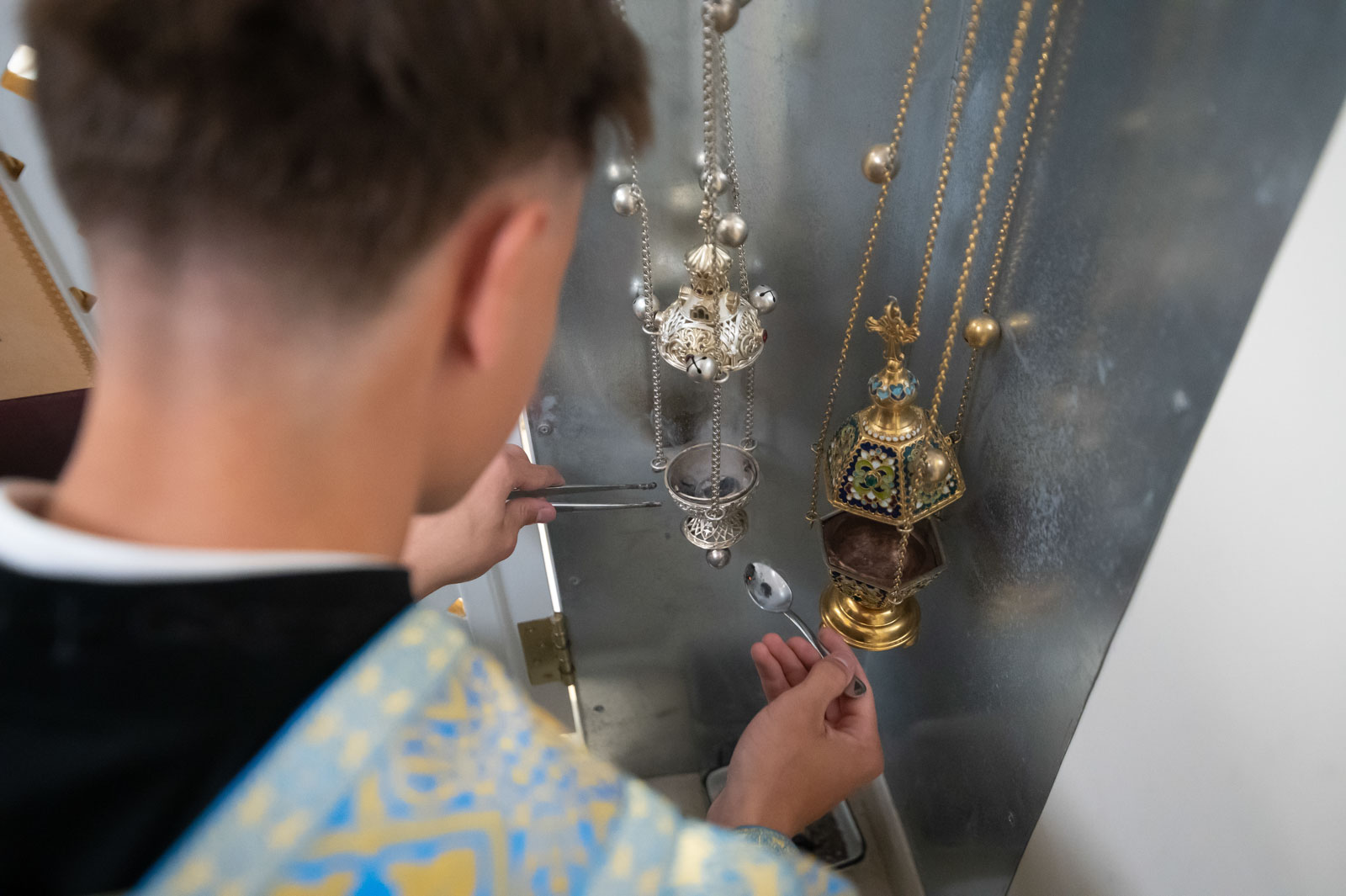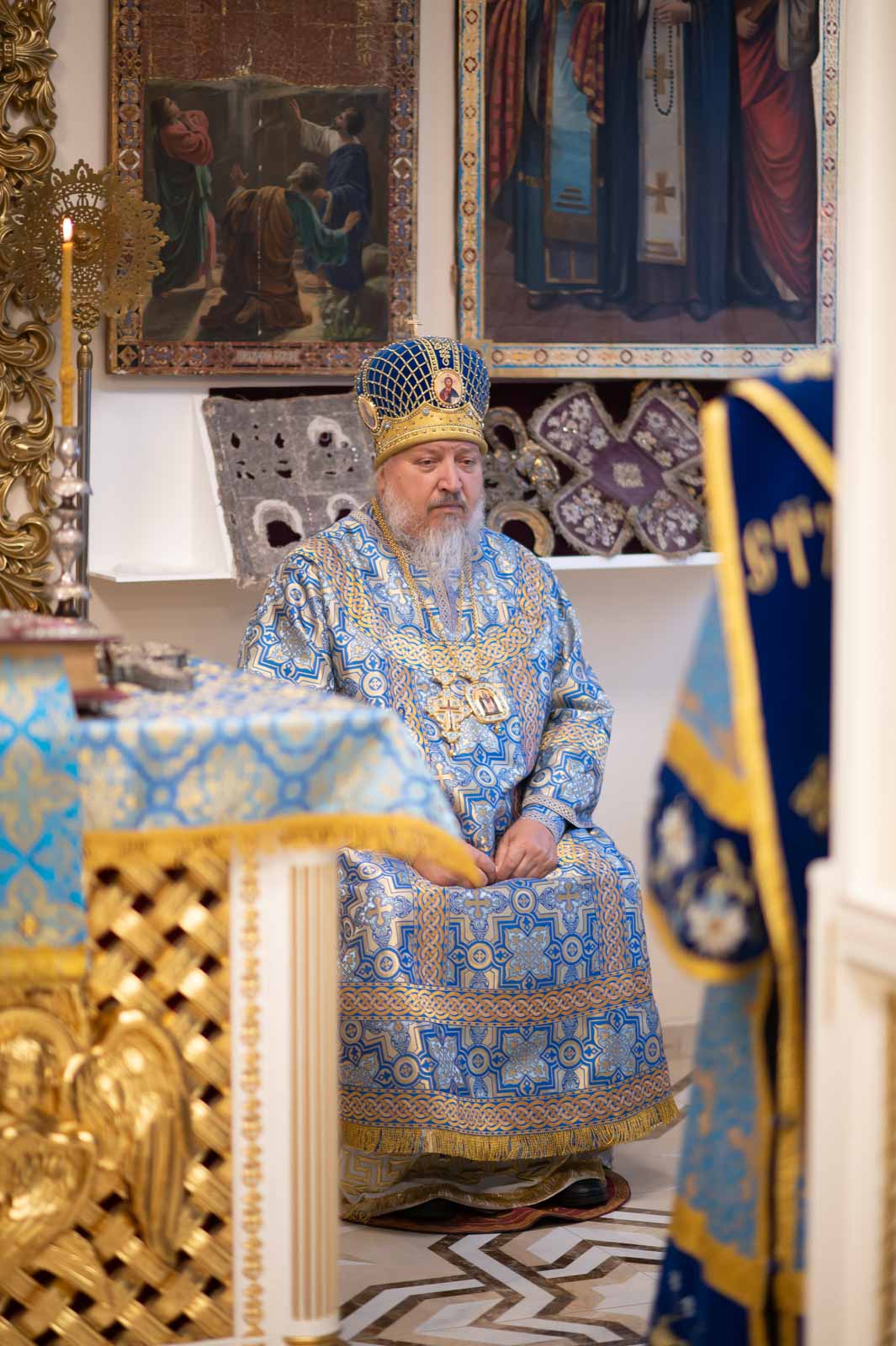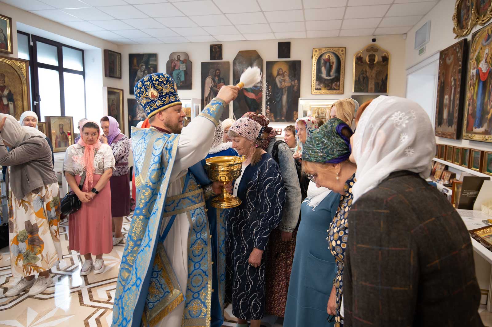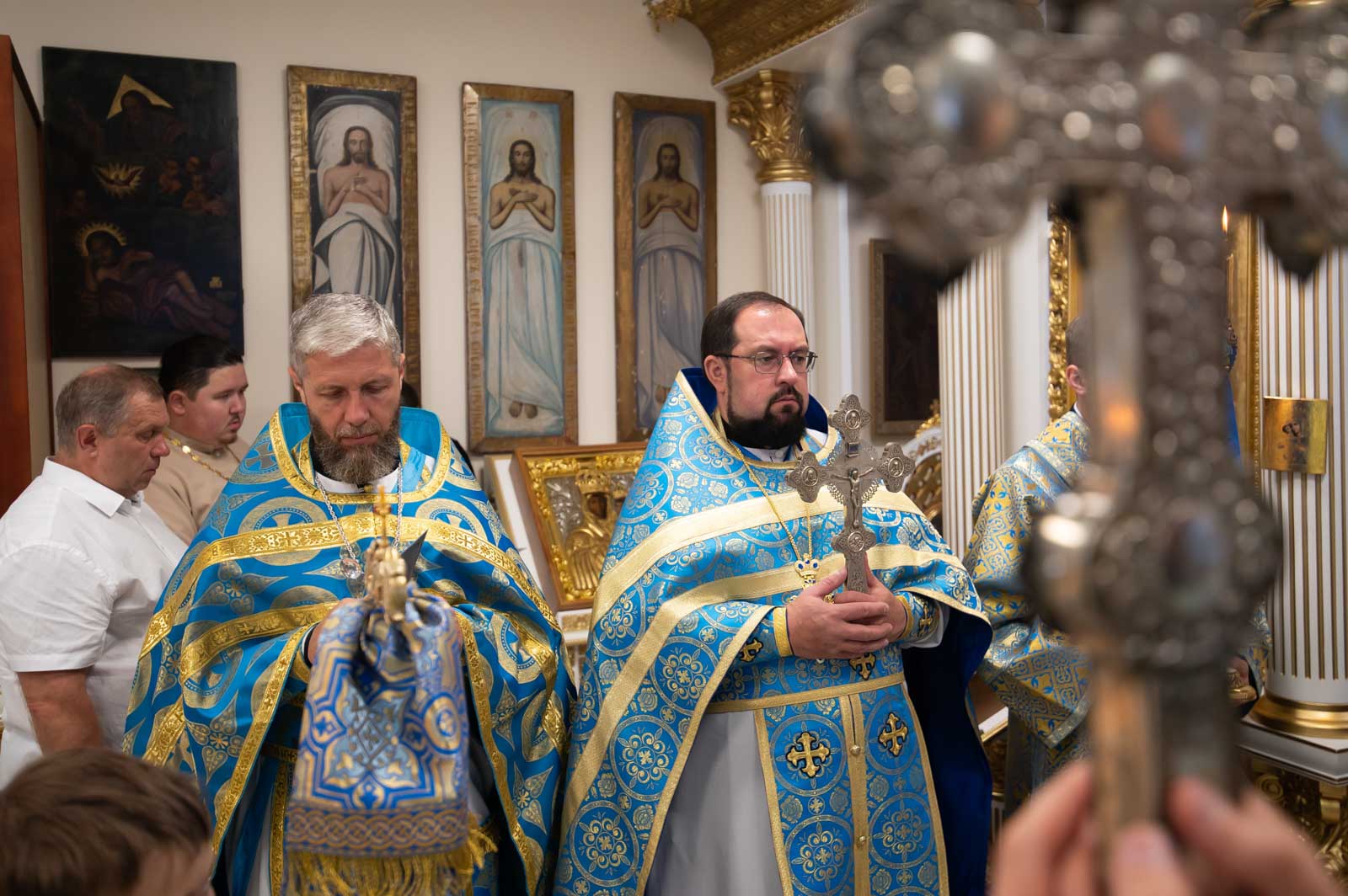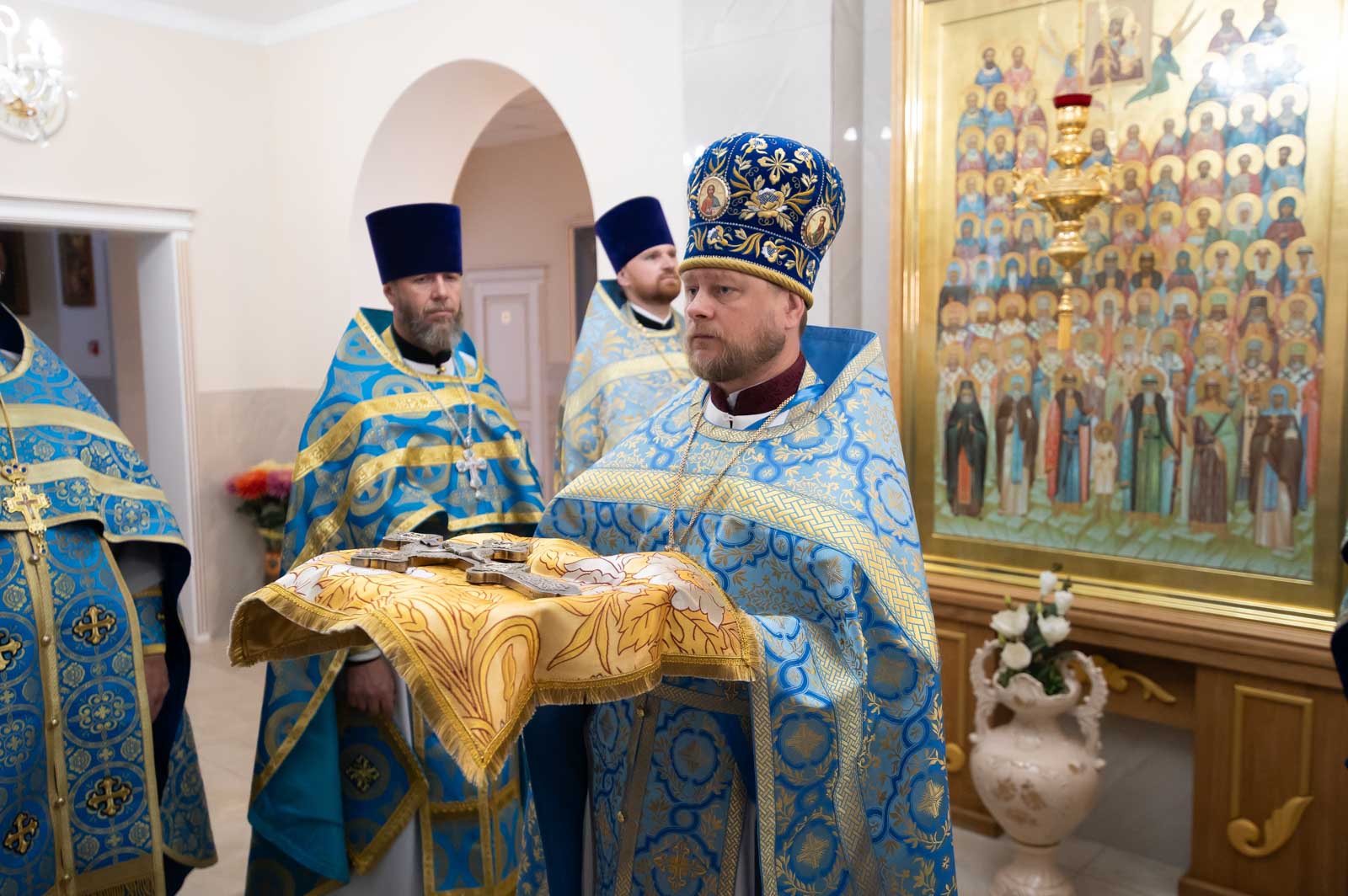 Божественную литургию 29 августа 2025г., в день Попразднство Успения Пресвятой Богородицы и день памяти перенесения из Едессы в Константинополь Нерукотворного Образа (Убруса) Господа Иисуса Христа, Высокопреосвященнейший Стефан, архиепископ Гомельский и Жлобинский, совершил в домовом храме-музее в честь собора Всех Белорусских Святых.