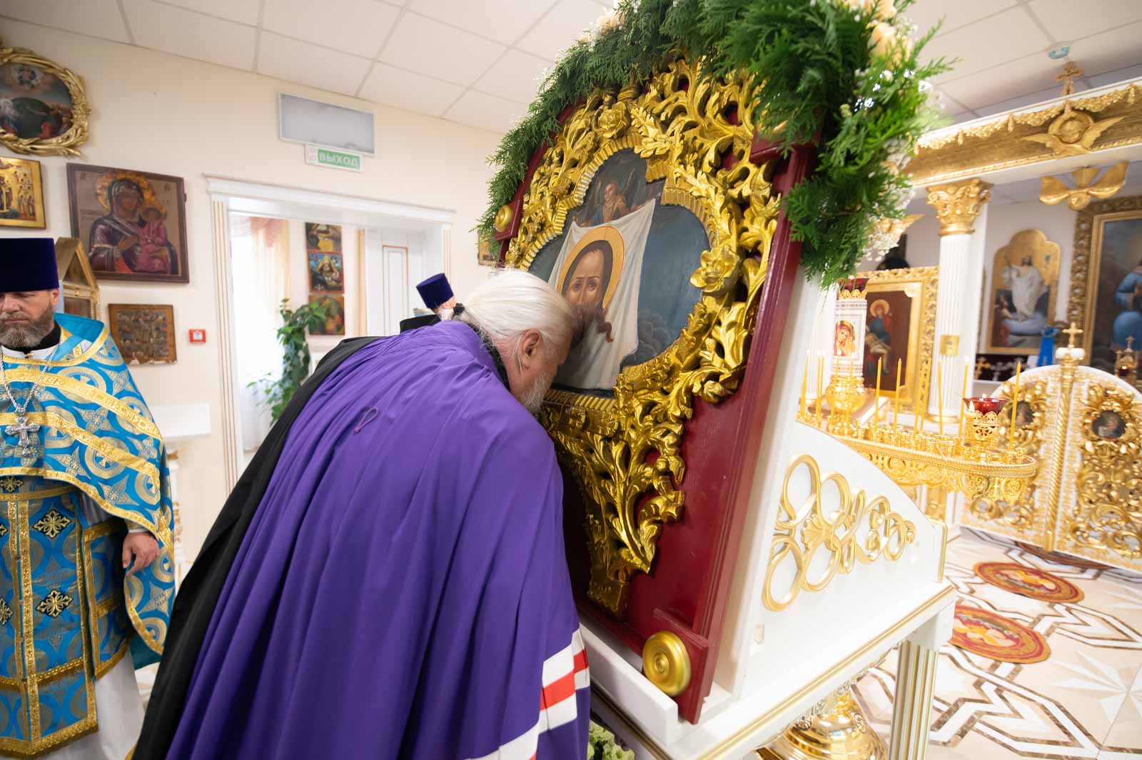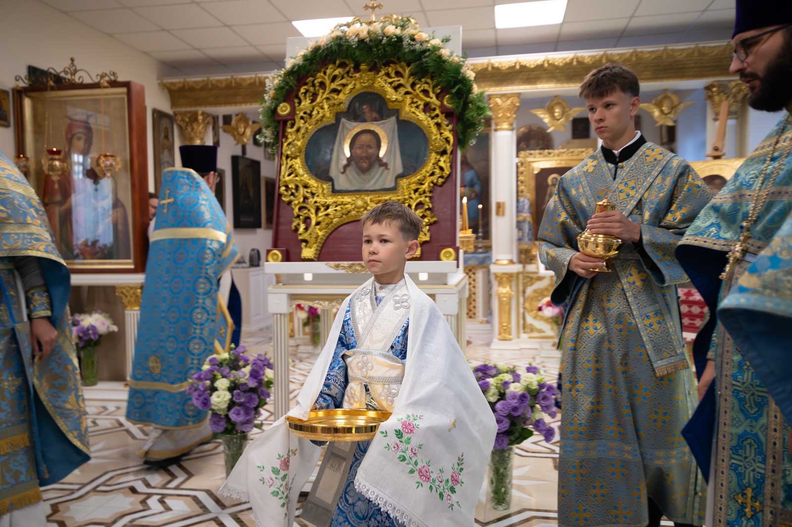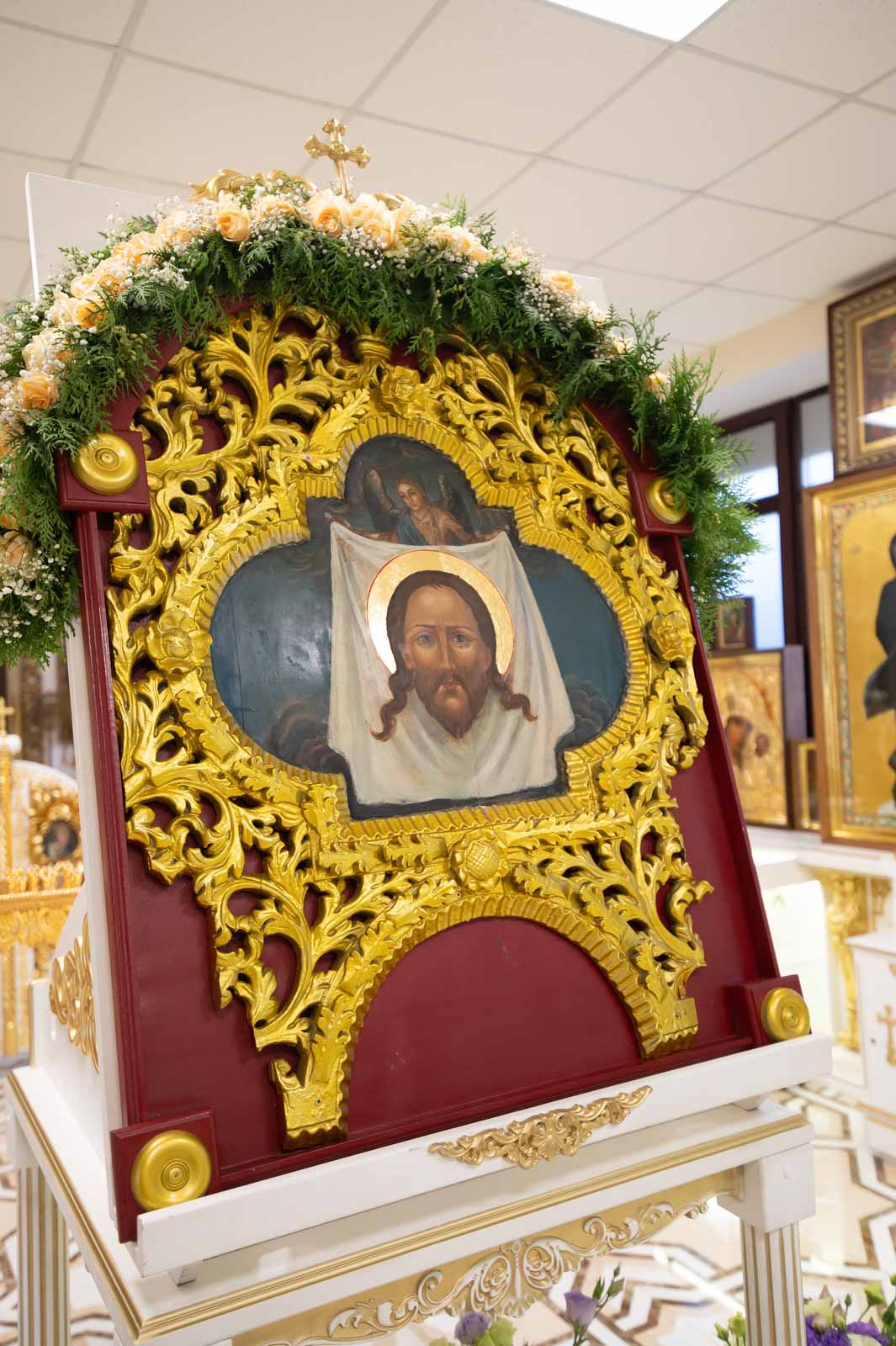 Перед началом богослужения в храм был принесен образ «Спас Нерукотворный».