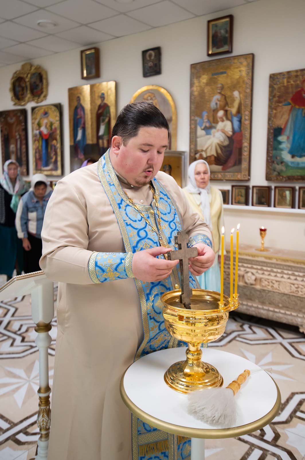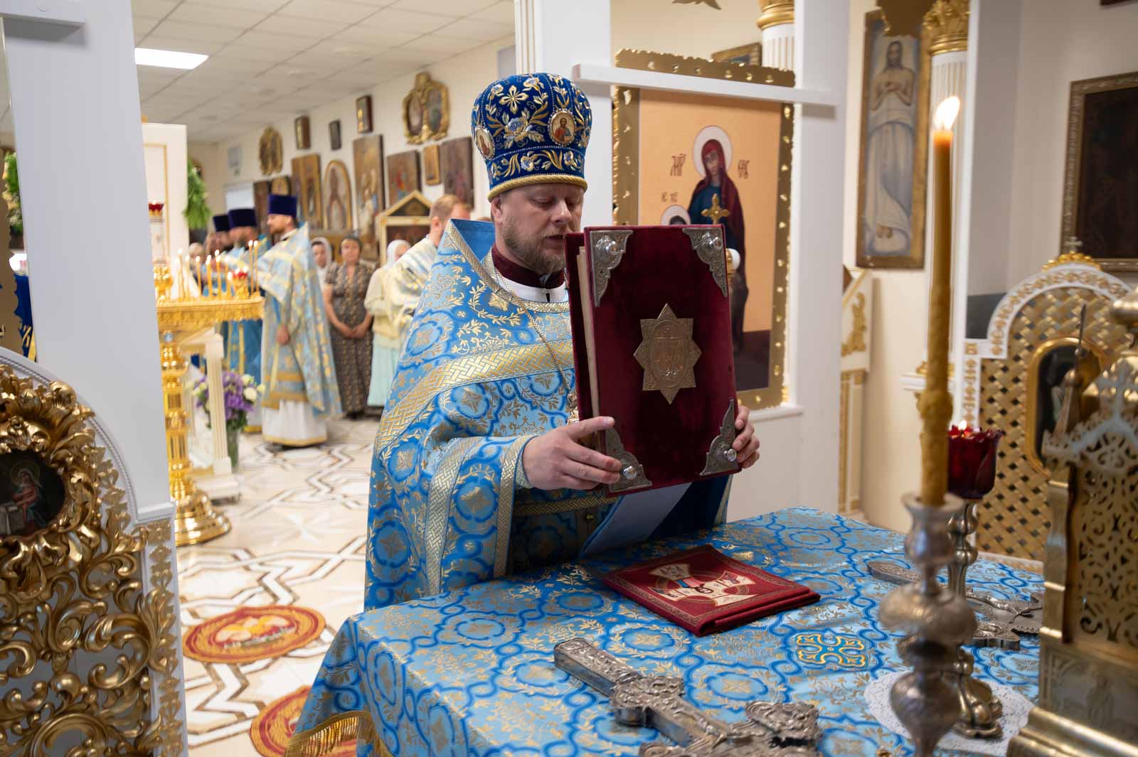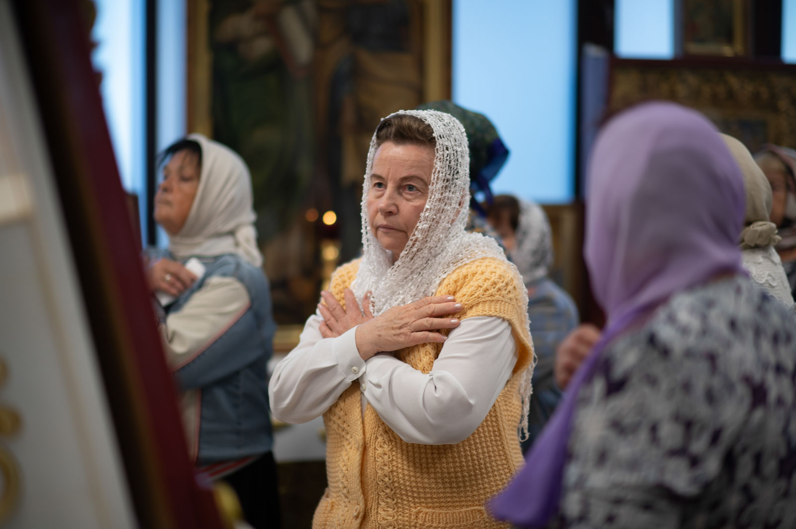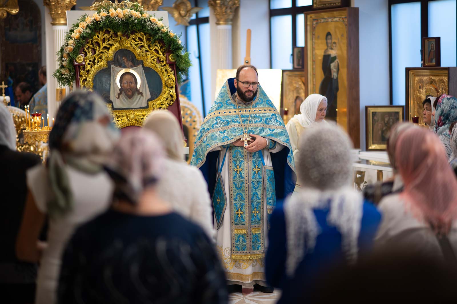 Перед началом богослужения в храм был принесен образ «Спас Нерукотворный».