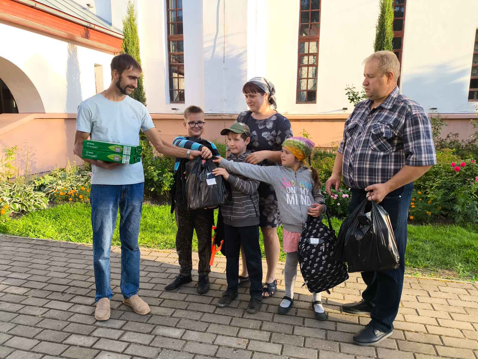 По окончании молебна состоялось вручение рюкзаков с необходимыми канцелярскими товарами и другими школьными принадлежностями.