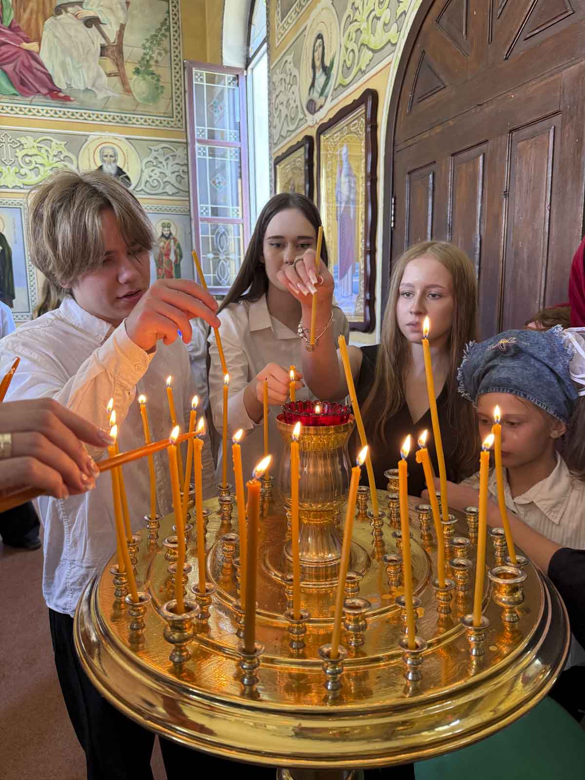 Дети зажгли свечи и вознесли свои молитвы о том, чтобы Господь укреплял их силы, даровал желание учиться и помогал с благодарностью принимать знания.