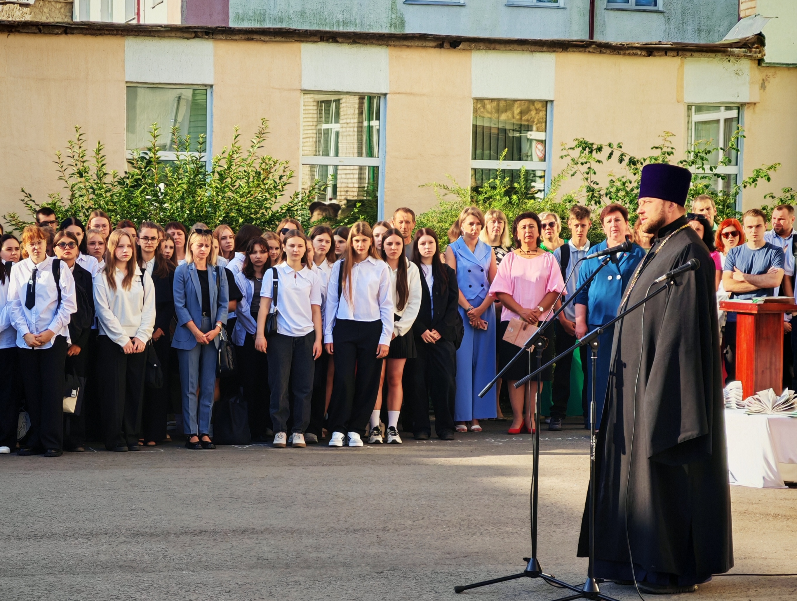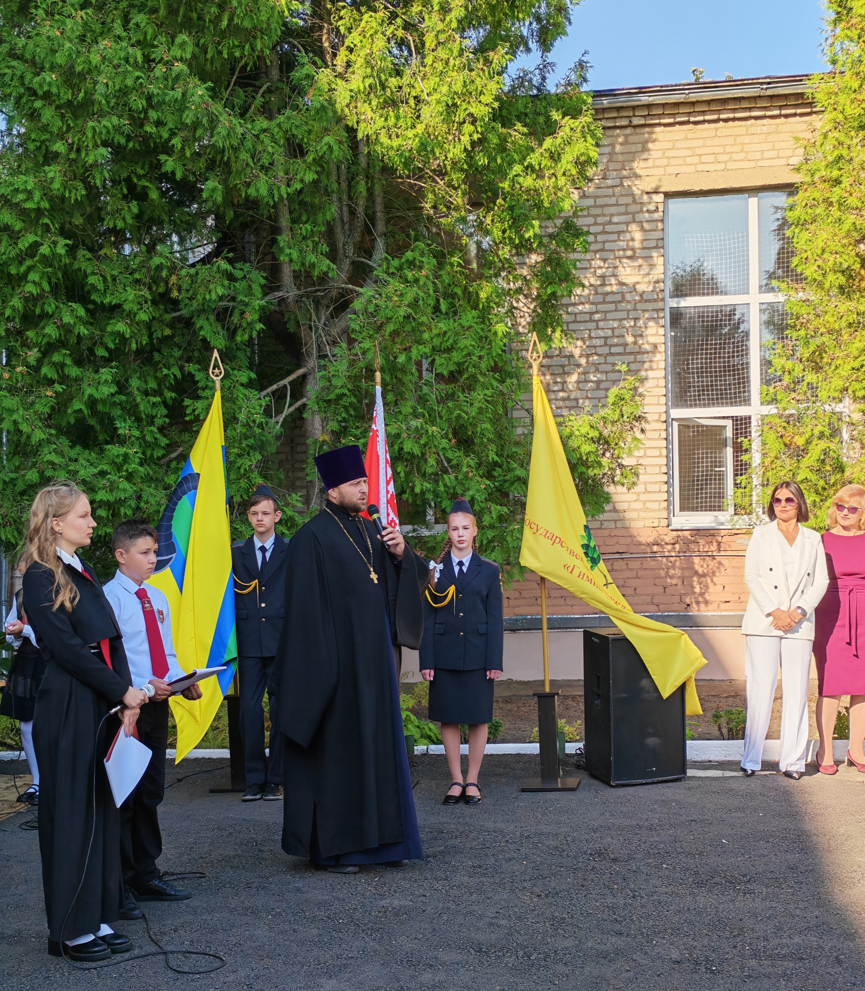 За тем иерей Алексей Сергеев благословил на новый учебный год рогачевских гимназистов. Обращаясь к собравшимся, отец Алексей отметил, что День знаний — это праздник, который объединяет всех, создавая прочную связь между учениками, их наставниками и семьёй.