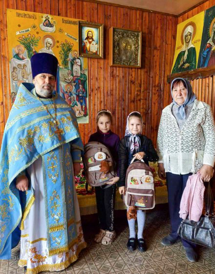 Поддержка пришла и в многодетную семью прихожан Тарасенко из храма Казанской иконы Божией Матери в аг.Лучин. Протоиерей Александр Атрощенко разделил радость семьи первоклассника Сергея и вручил ему школьные принадлежности, пожелал успешной и интересной учёбы.