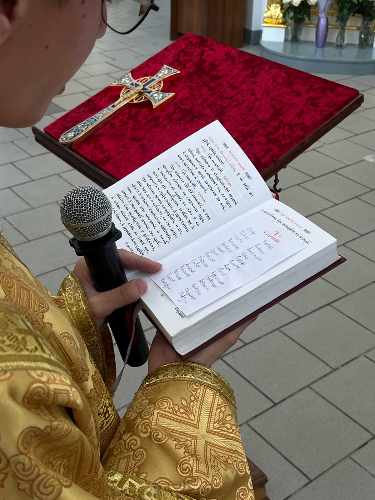 В завершение своего обращения к молящимся священнослужитель кропил святой водой всех собравшихся для молитвы.