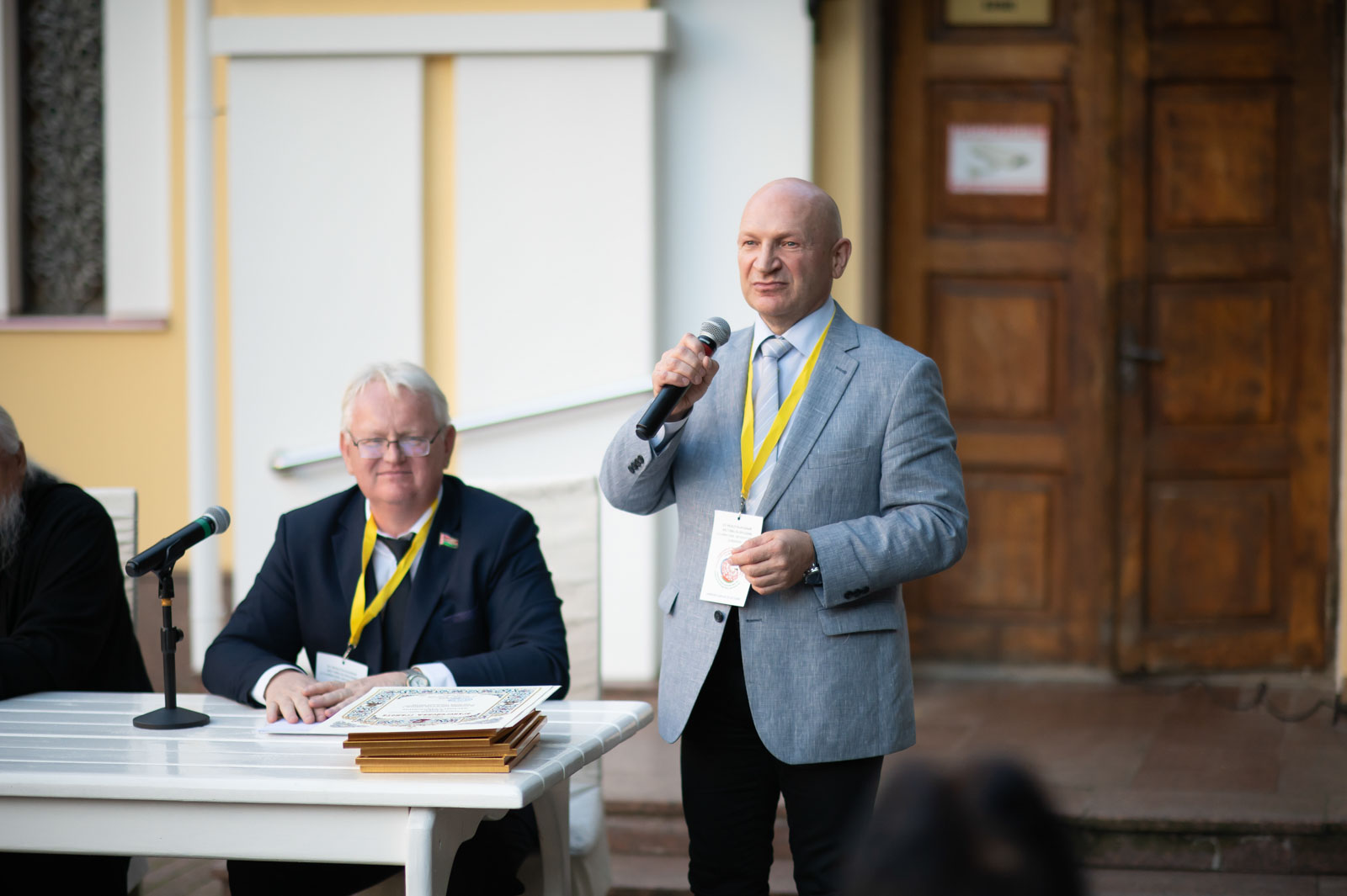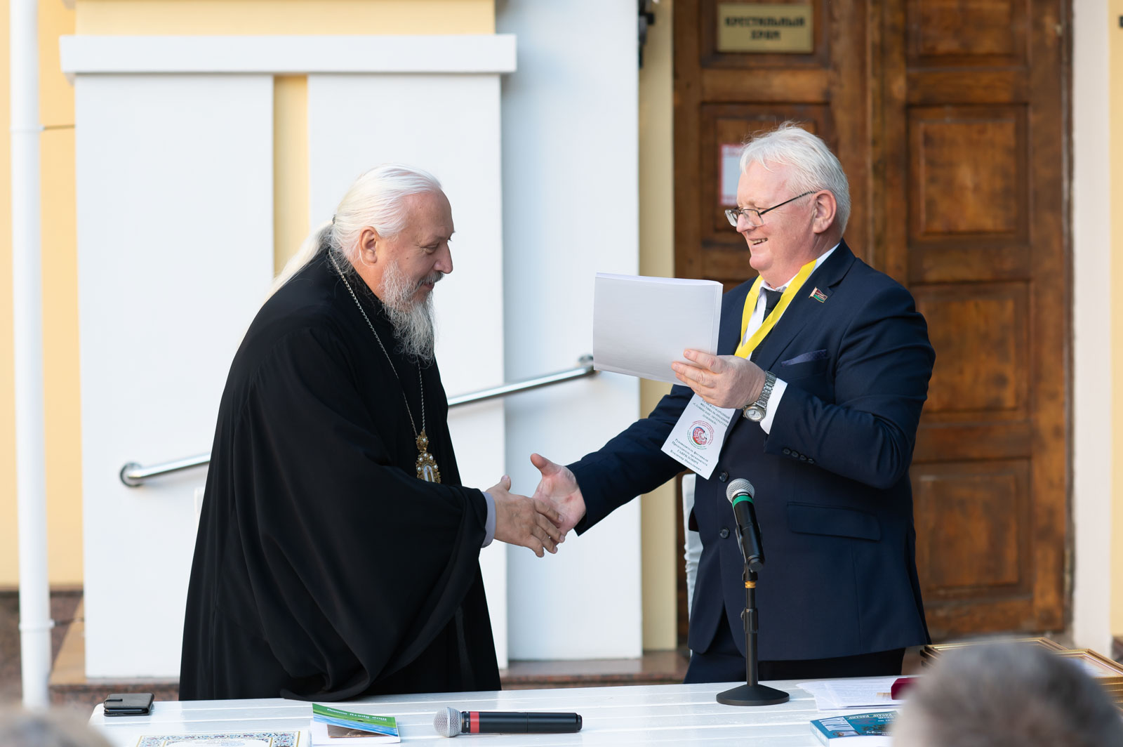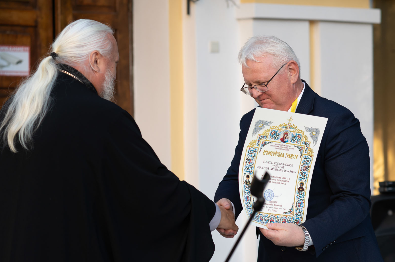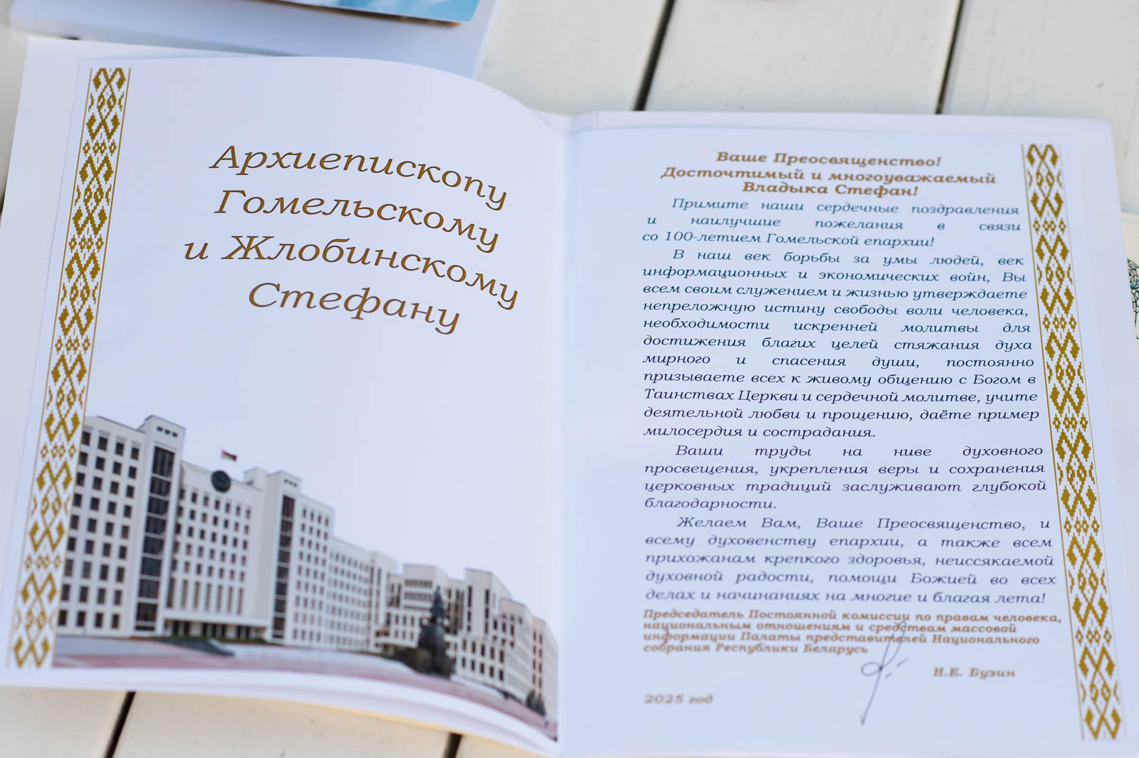 С приветствием к участникам съезда обратился также депутат Палаты представителей Национального собрания Республики Беларусь, председатель Гомельского областного отделения Союза писателей Беларуси Владимир Гаврилович. Он вручил архиепископу Стефану памятную медаль «Иван Мележ. За верность Слову», учреждённую к 20-летию «Славянских литературных Дожинок», а также передал новый номер международного альманаха «Литера».