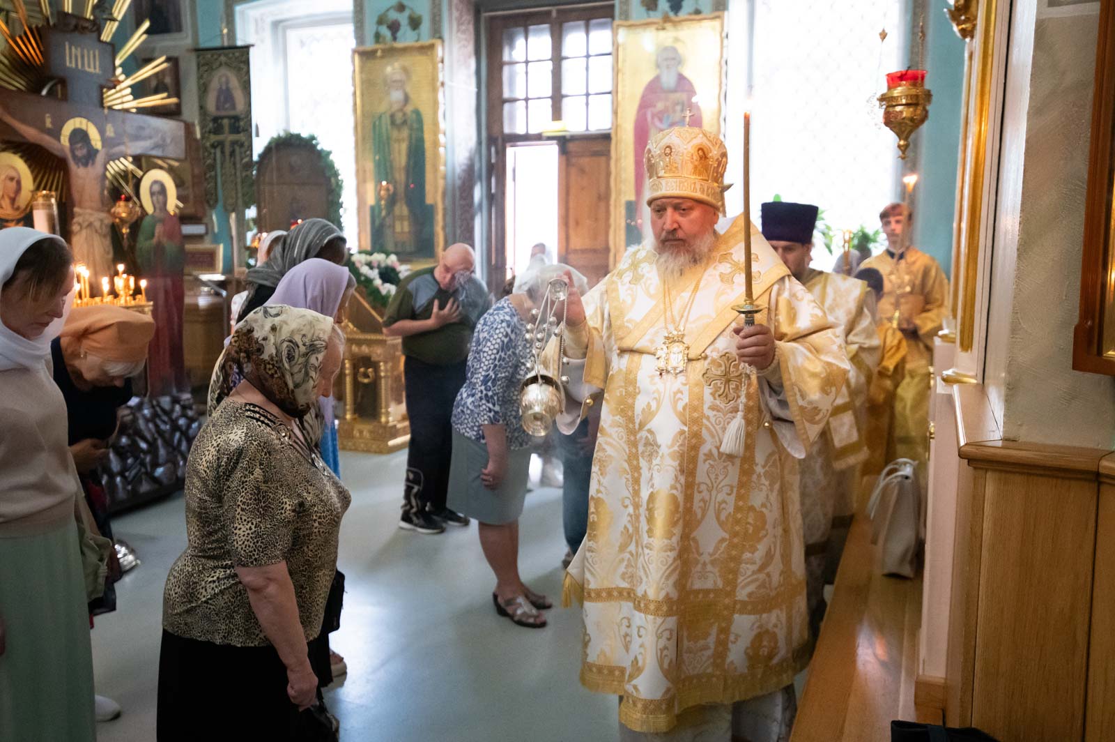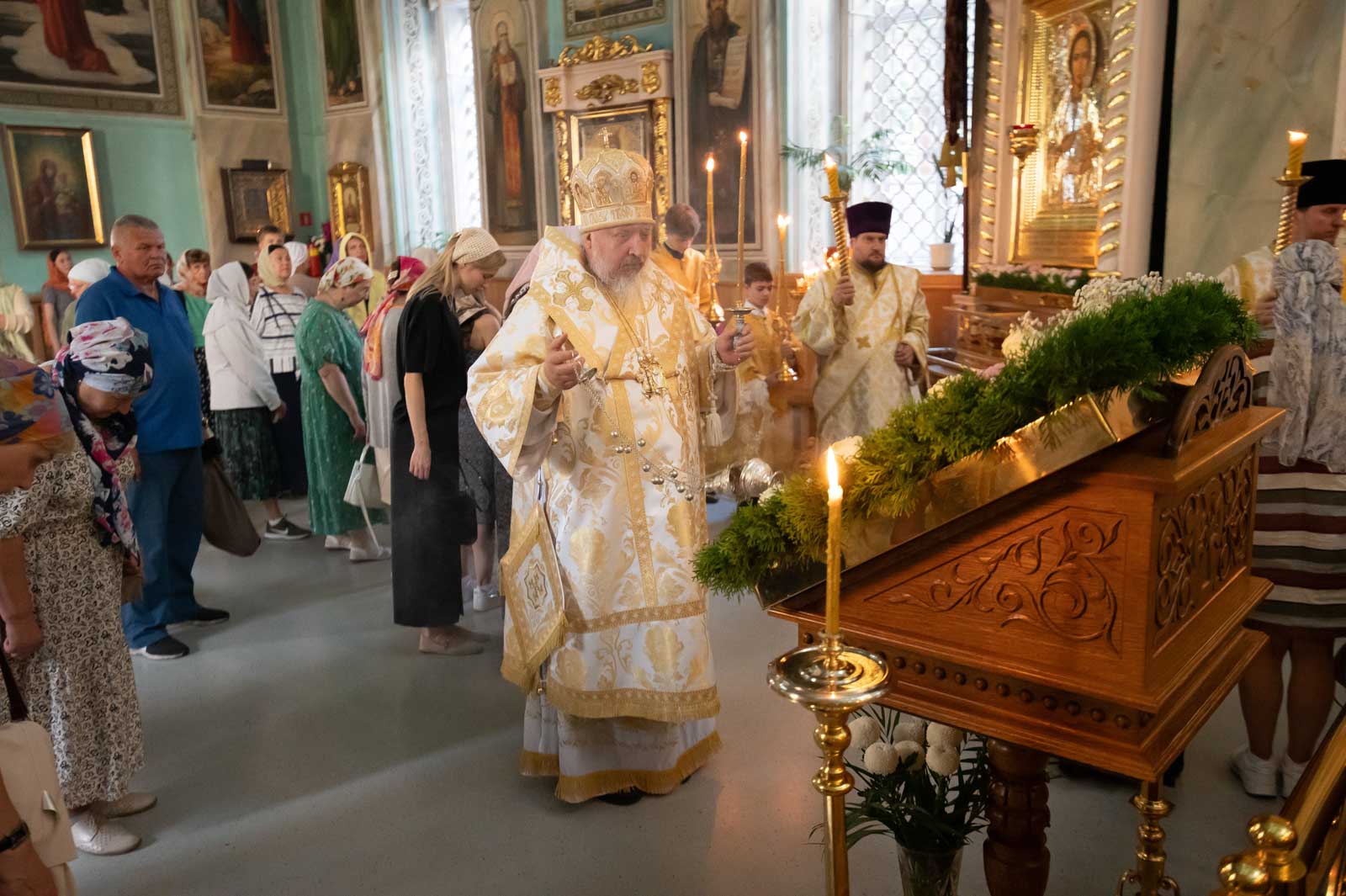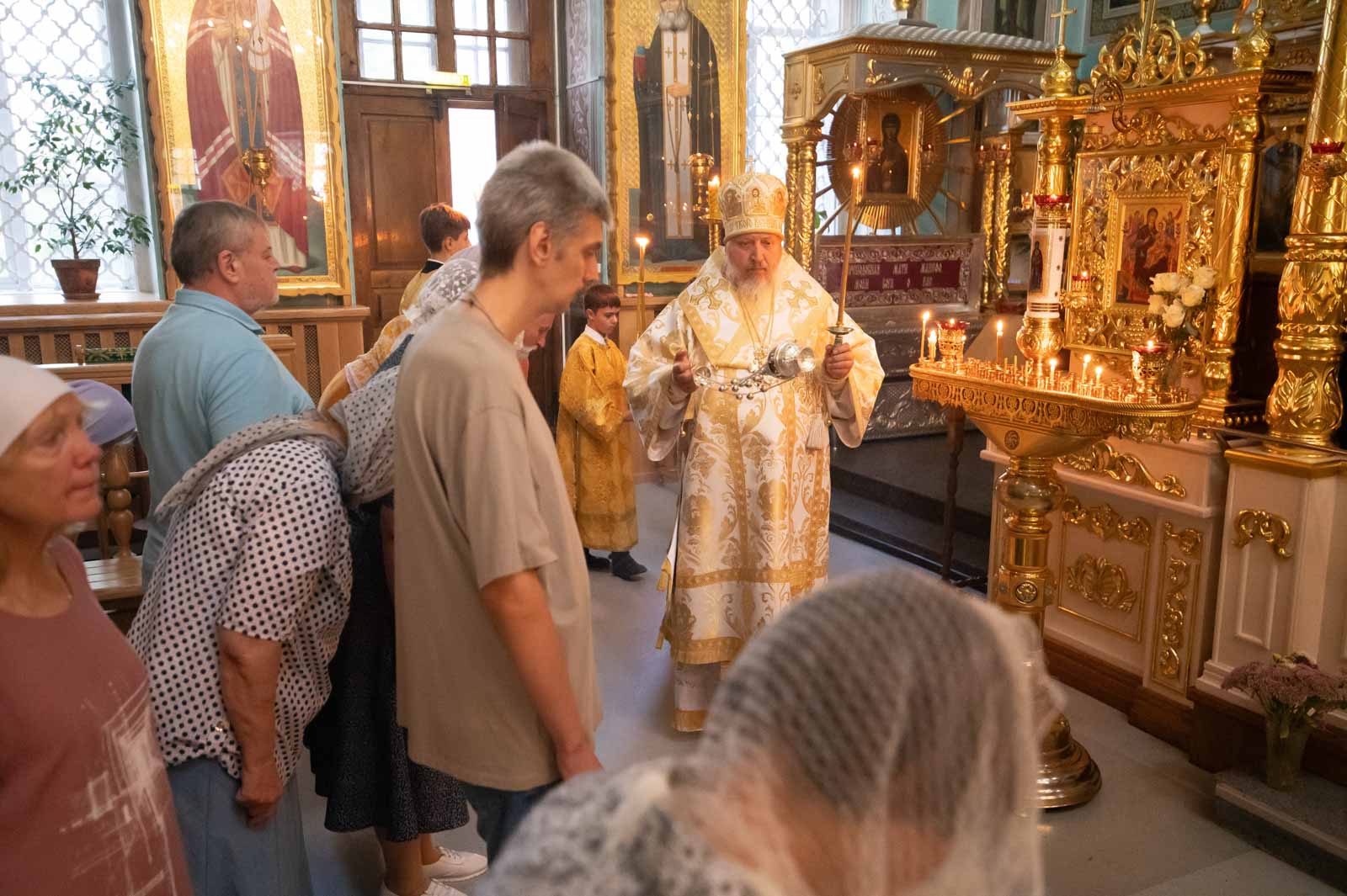 За богослужением архипастырю сослужили клирики кафедрального собора. Владыка Стефан помазал верующих освящённым елеем и преподал всем архипастырское благословение.