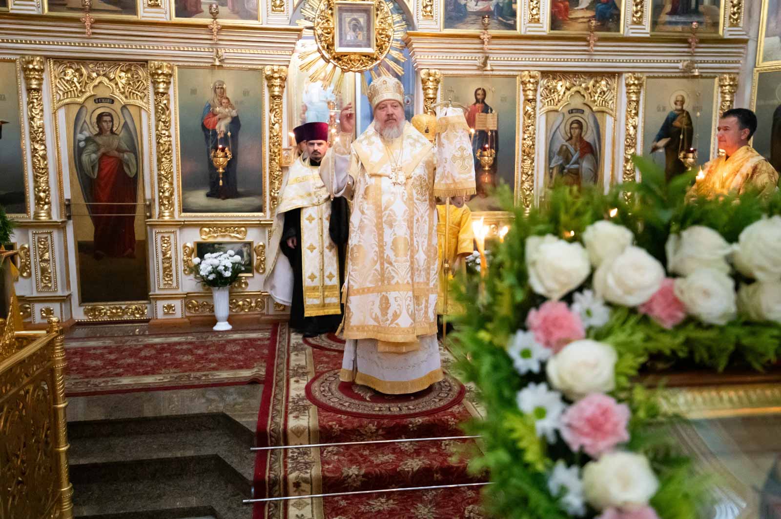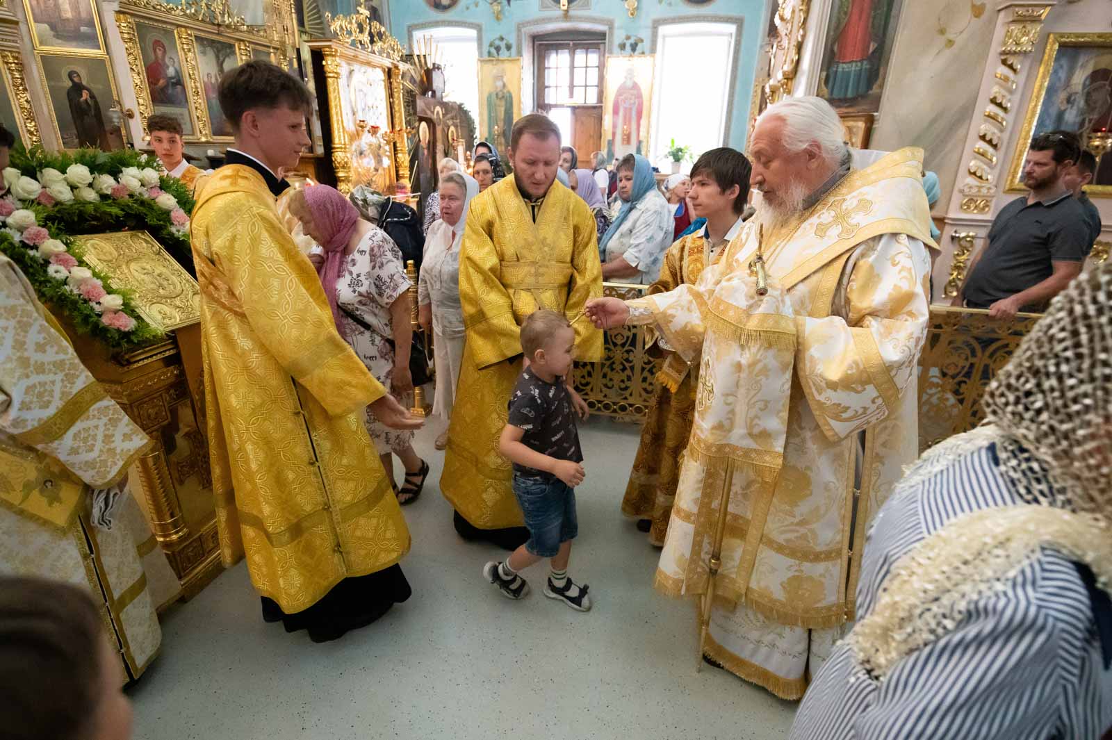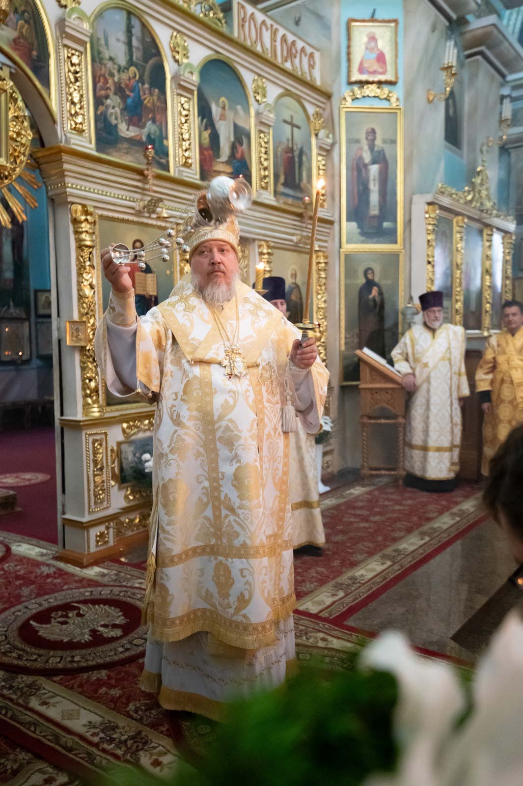 За богослужением архипастырю сослужили клирики кафедрального собора. Владыка Стефан помазал верующих освящённым елеем и преподал всем архипастырское благословение.