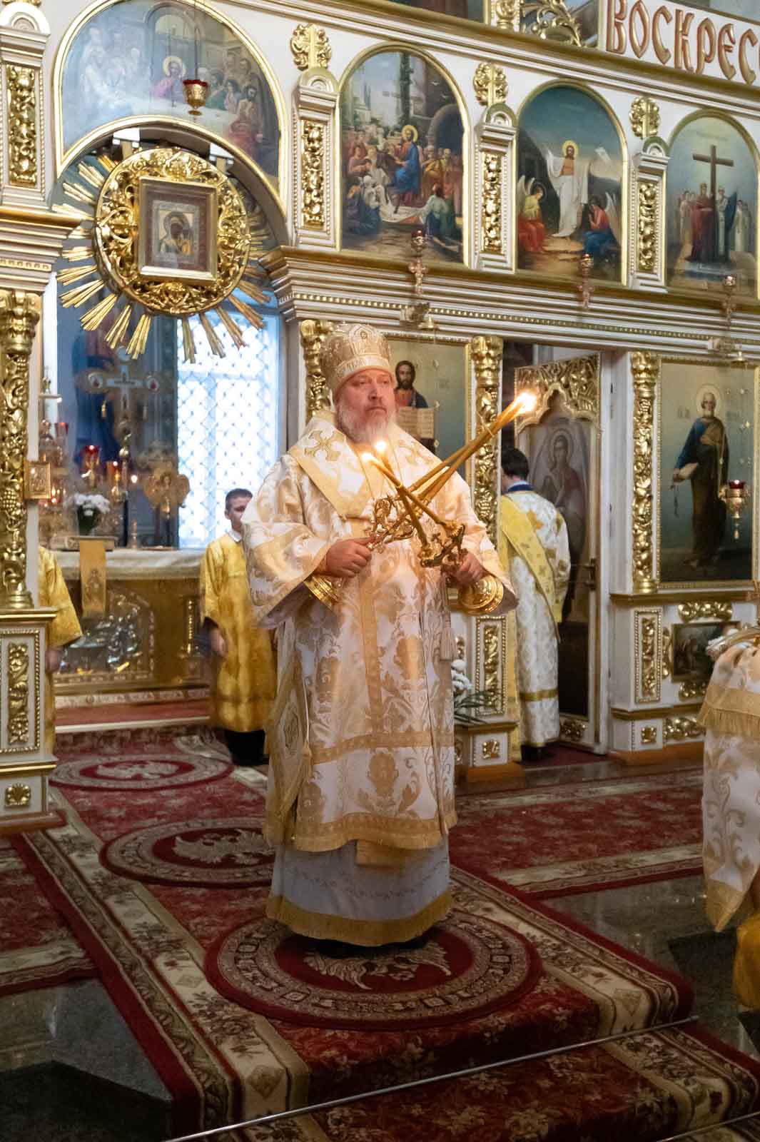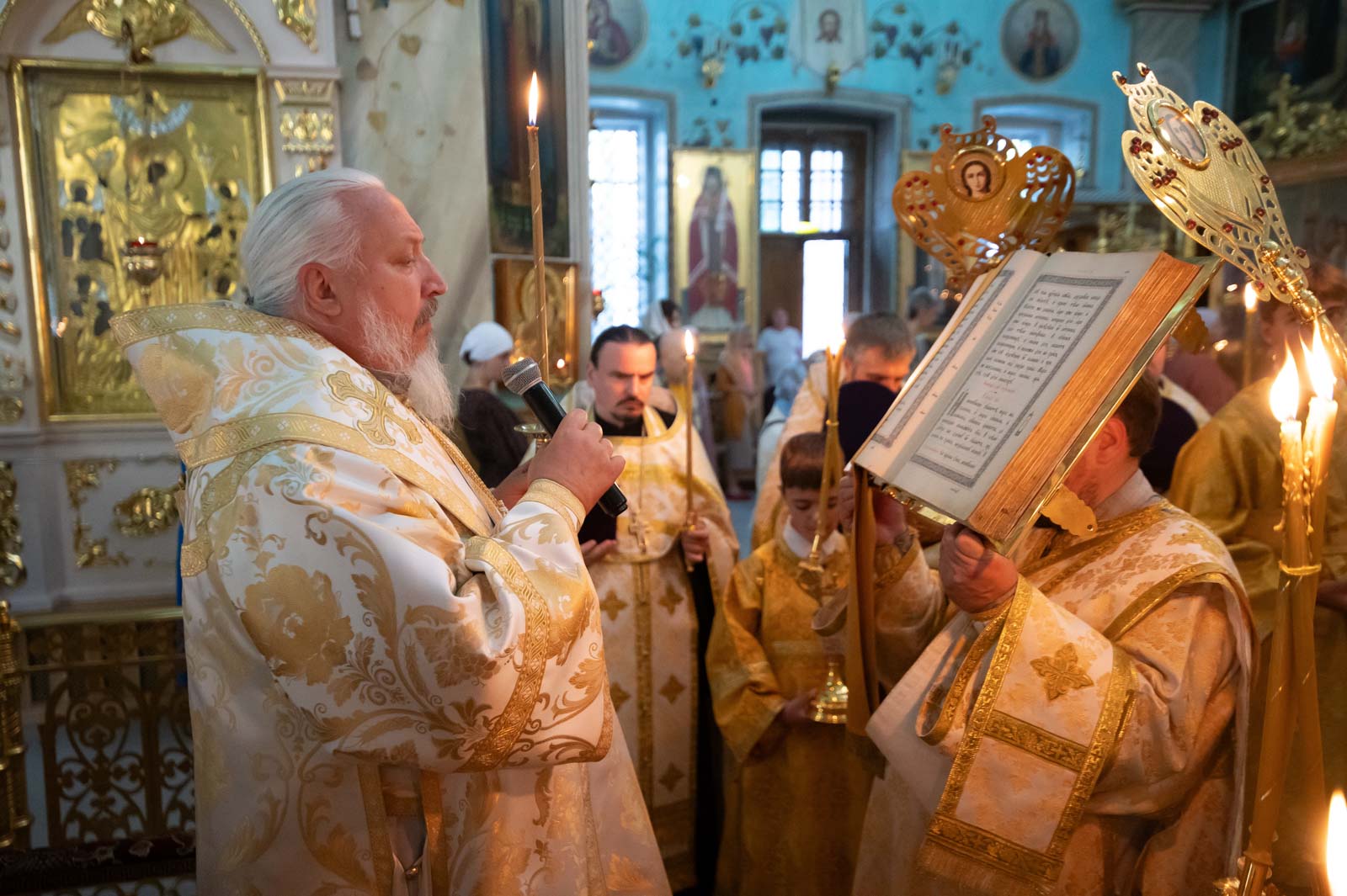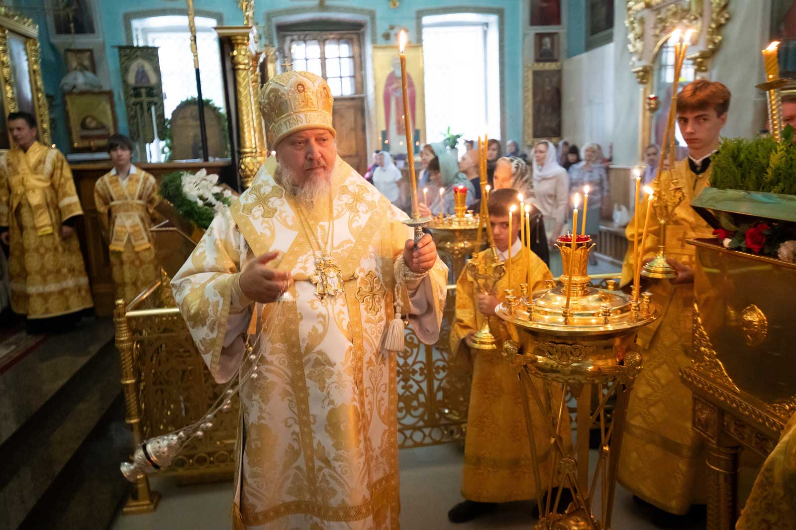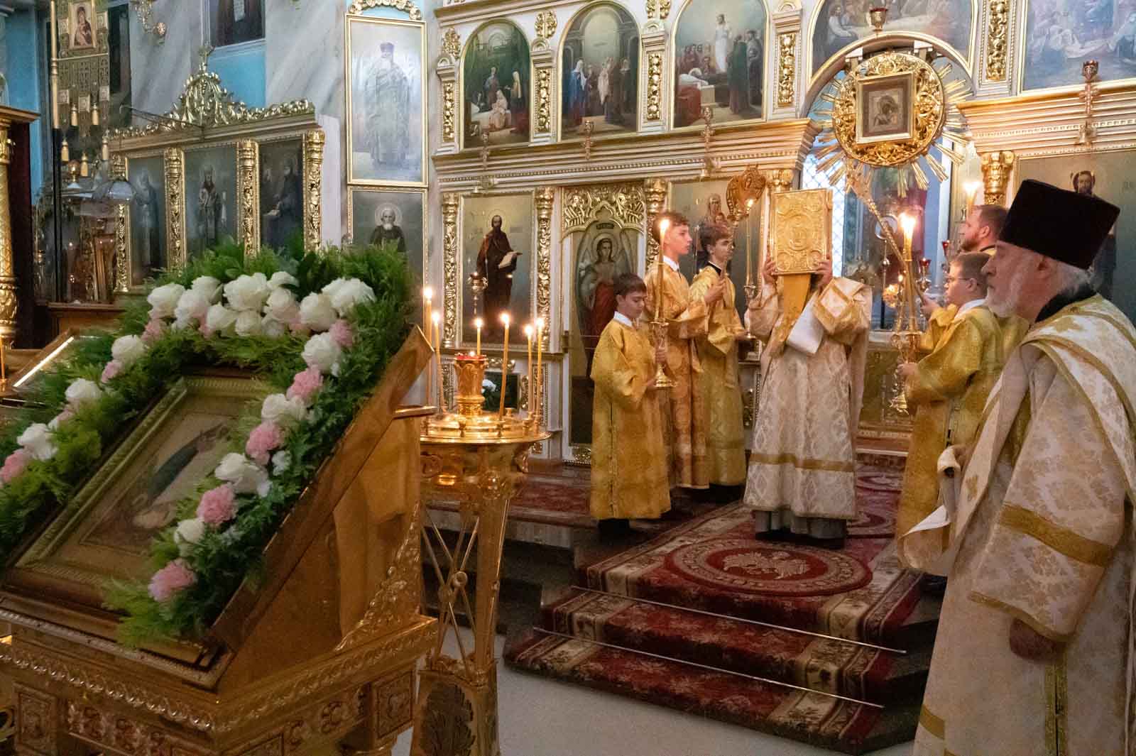 Всенощное бдение 6 сентября 2025 года, в канун Недели 13-й по Пятидесятнице, Высокопреосвященнейший Стефан, архиепископ Гомельский и Жлобинский, совершил в Петро-Павловском кафедральном соборе города Гомеля.