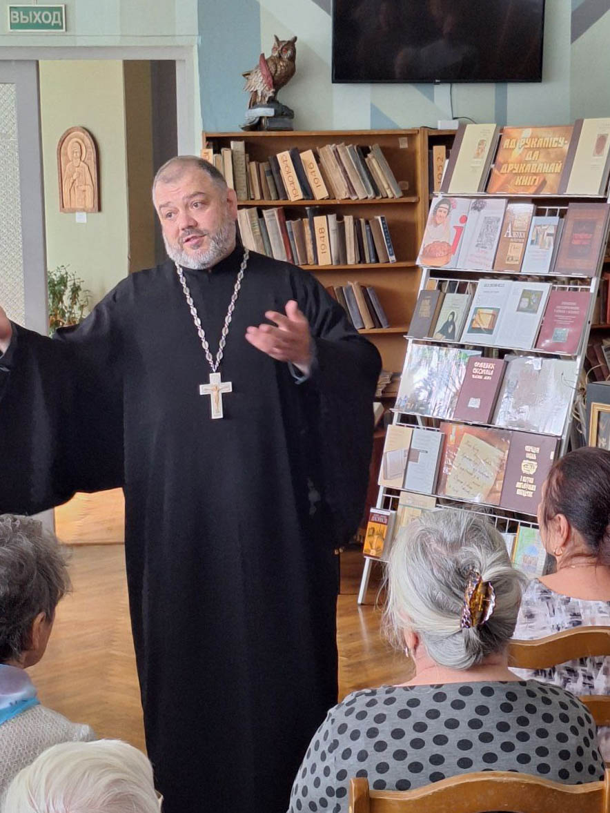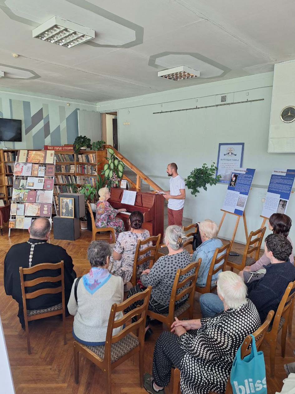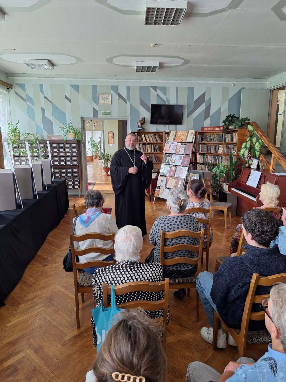 7 сентября 2025 года в Гомельской городской библиотеке-филиале №8 имени святителя Кирилла Туровского состоялось открытие двух тематических фотовыставок. В мероприятии принял участие настоятель прихода храма Скитской иконы Божией Матери в Гомеле протоиерей Максим Калеватов.