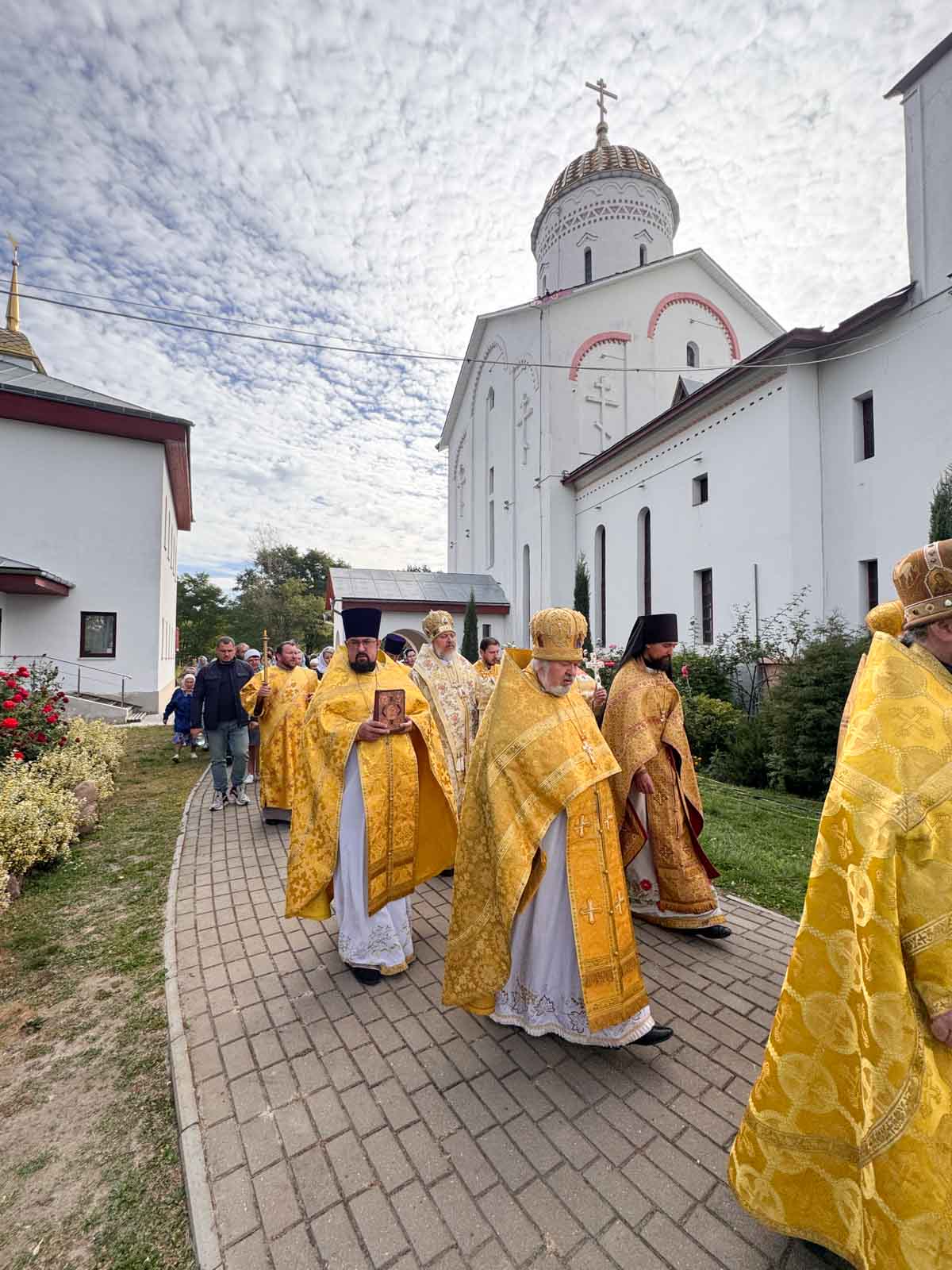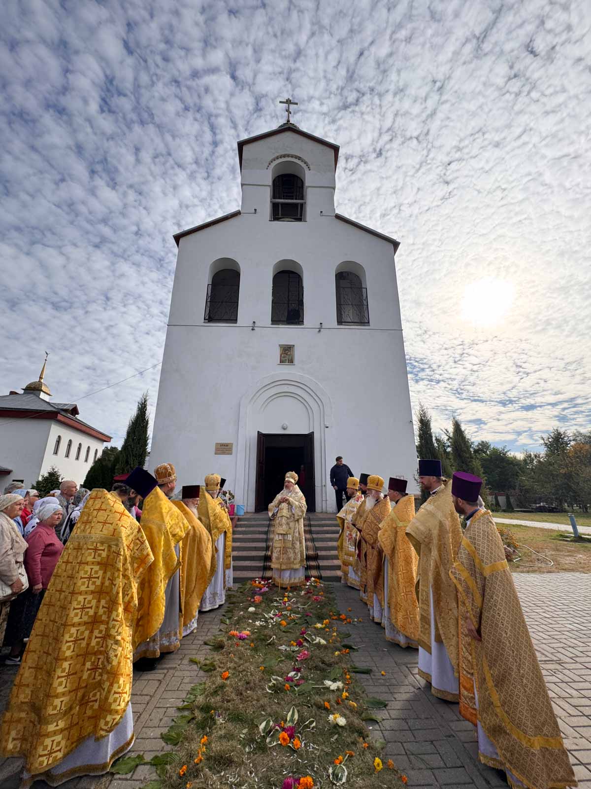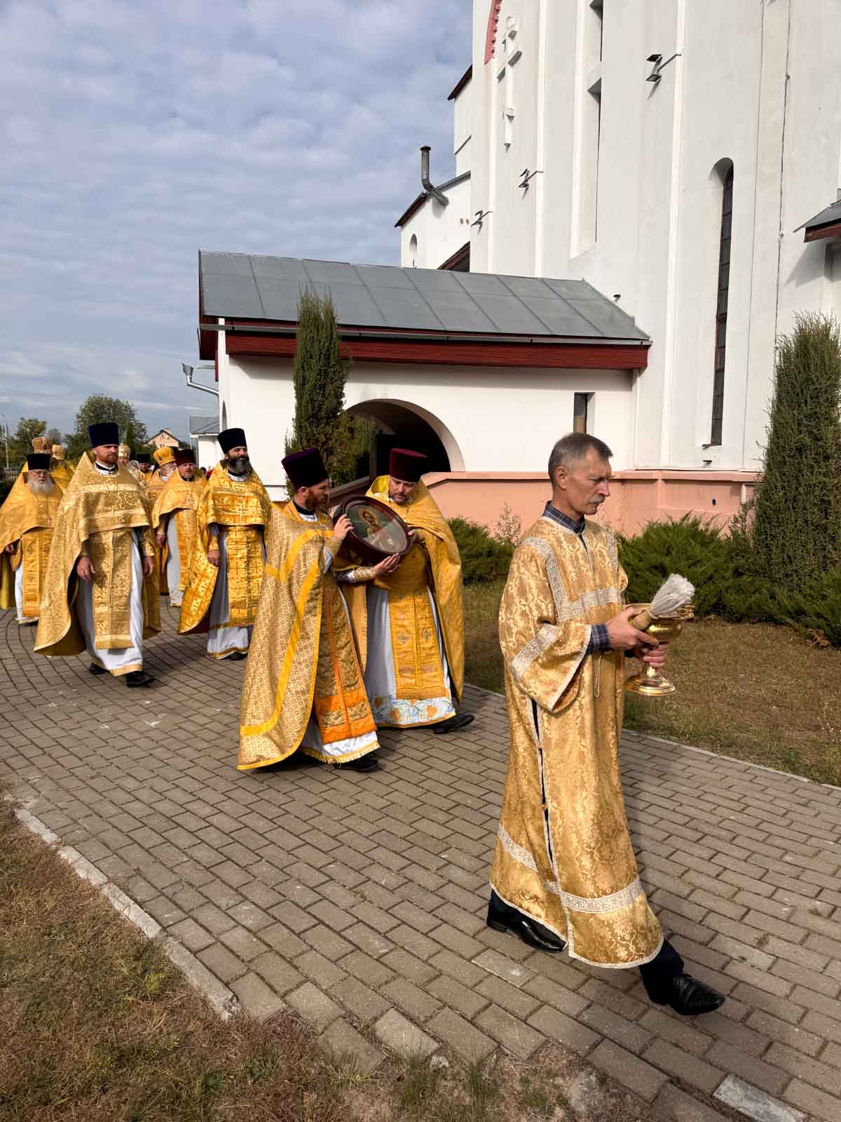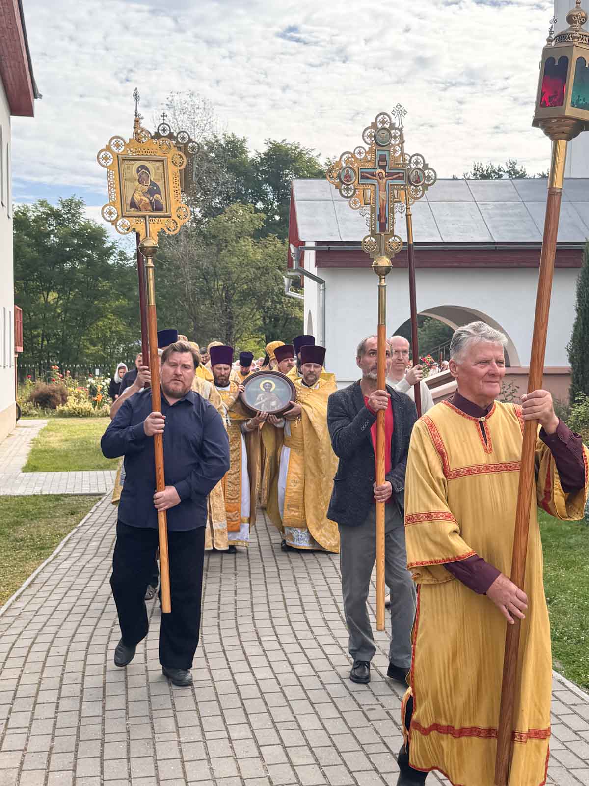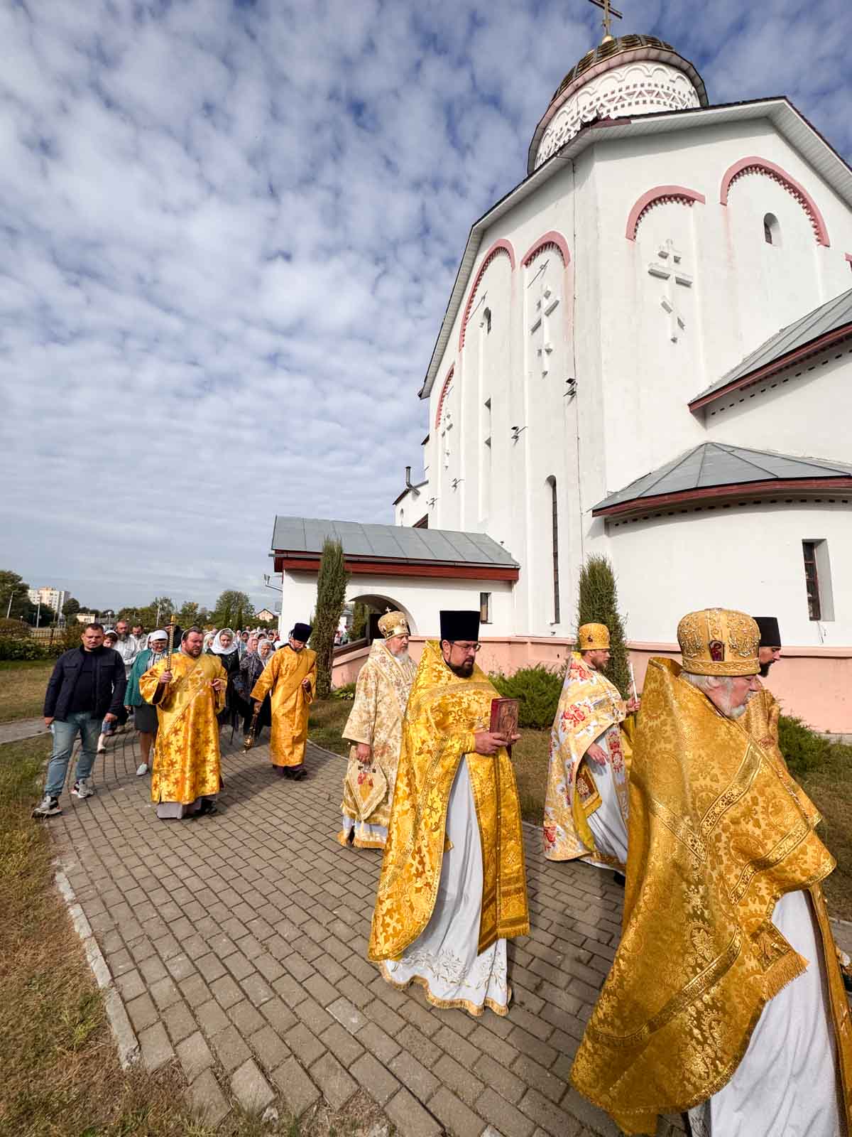 После завершения Божественной литургии состоялся крестный ход. Прихожане с иконами и хоругвями, под молитвенные песнопения обошли вокруг храма.