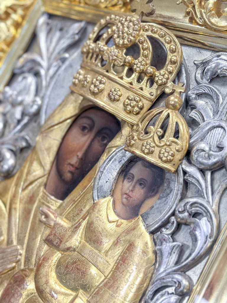 Икона эта изначально была католической святыней. Во второй половине XVII века представители католического ордена иезуитов выстроили в этих местах храмовый комплекс, в котором и поместили икону Божией Матери, написанную, как полагают искусствоведы, в начале века в украинской или белорусской части Речи Посполитой.