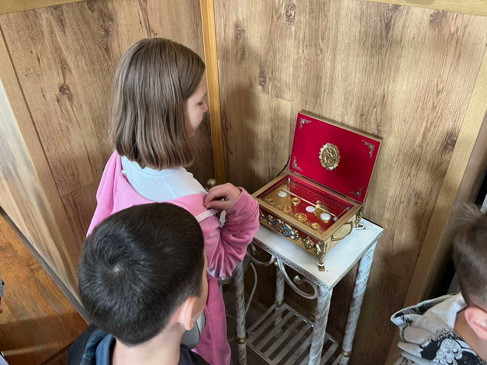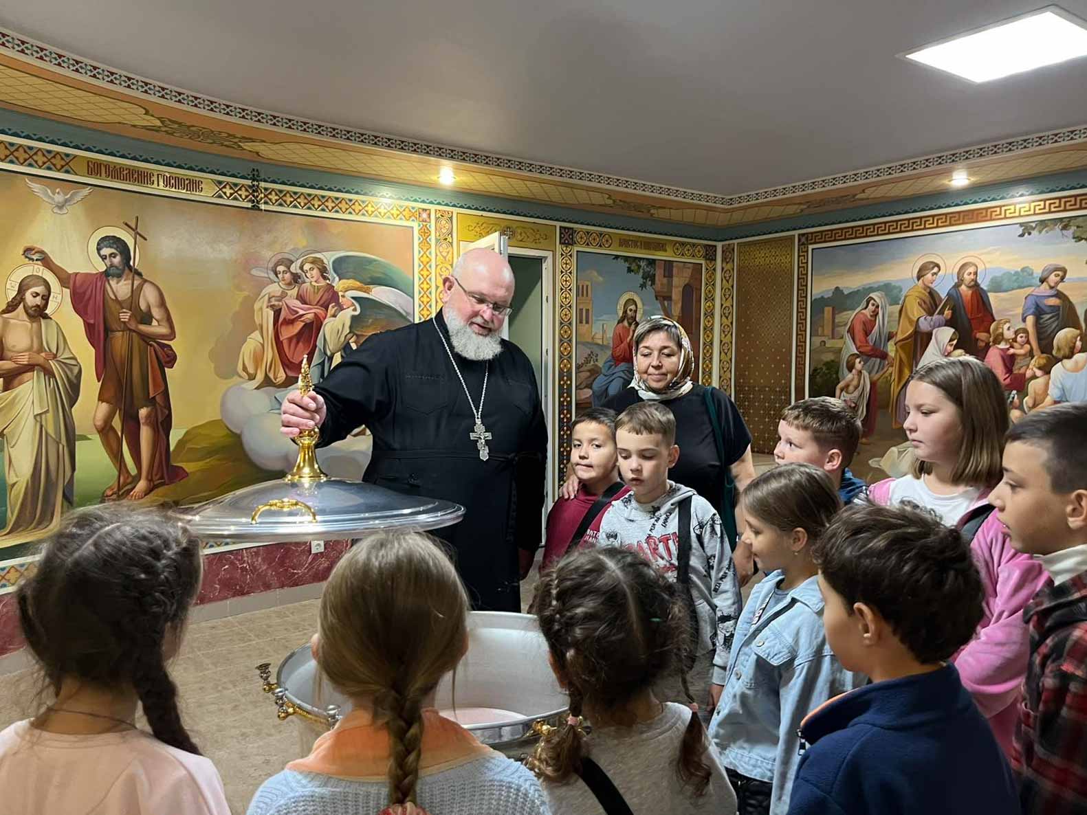 В субботу, накануне праздника памяти святых благоверных князей Петра и Февронии Муромских, Свято-Успенский собор г. Речицы посетили учащиеся 3-го класса средней школы №11. Священнослужители провели для школьников экскурсию по храму, рассказали об истории собора, жизни и подвиге святых покровителей семьи и брака Петра и Февронии. Дети приложились к хранящимся в соборе частицам их святых мощей, посетили алтарную часть храма, поднялись на клирос и побывали в крестильне, где совершается Таинство Крещения.