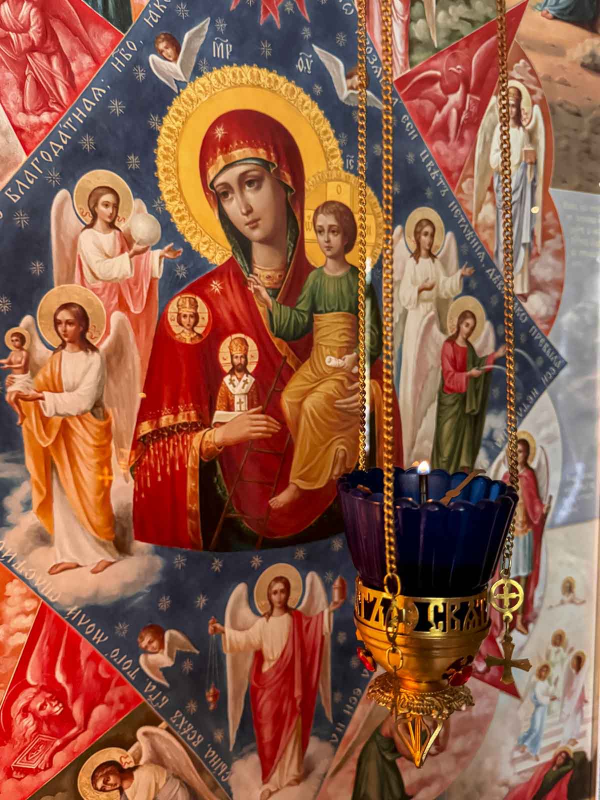 Когда мы взираем на икону «Неопалимая Купина», пред очами нашими предстаёт ветхозаветное чудо — явление Бога Моисею в пламени, охватившем терновый куст, но не опалившем его. И как куст, охваченный огнём, остался невредим, так и Пречистая Дева, приняв в Себя огонь Божества, родила Спасителя мира, не претерпев тления.