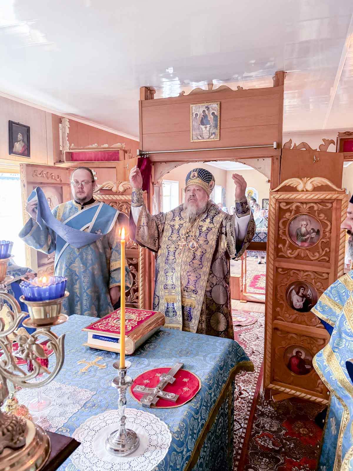 Божественную литургию 17 сентября 2025г., в праздник иконы Божией Матери «Неопалимая Купина», в одноименном храме в д.Ведрич совершил Высокопреосвященнейший Стефан, архиепископ Гомельский и Жлобинский.