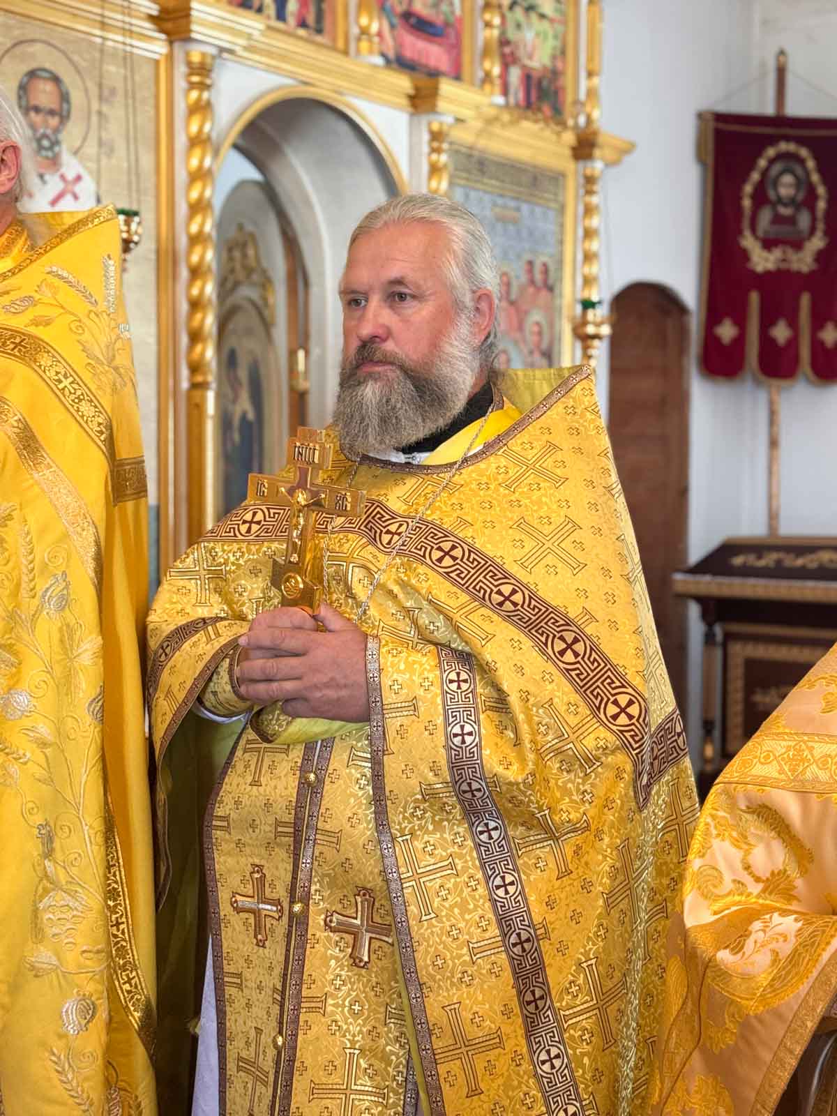 Его Высокопреосвященству сослужили: благочинный Жлобинского округа протоиерей Алексей Смотрицкий, настоятель прихода протоиерей Андрей Москаленко, духовенство благочиния и епархии.
