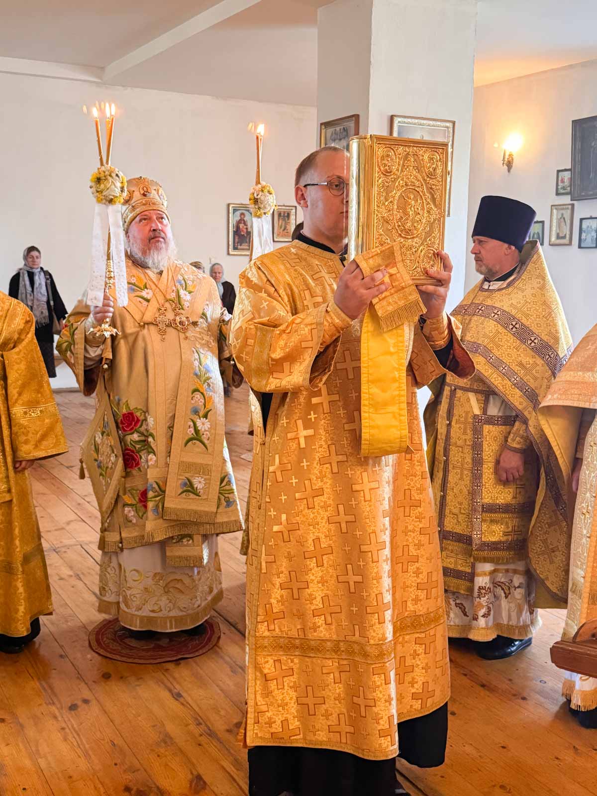 Божественную литургию 20 сентября 2025 года, в предпразднство Рождества Пресвятой Богородицы, день памяти преподобномученика Макария, игумена Пинского (+1678) Высокопреосвященнейший Стефан, архиепископ Гомельский и Жлобинский, совершил в приходе храма Святого Архангела Михаила в д.Папоротное.