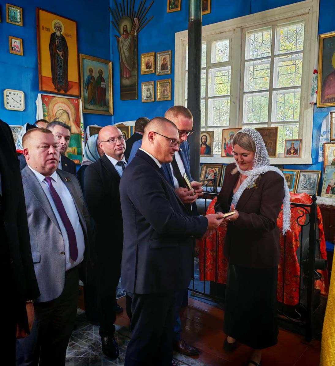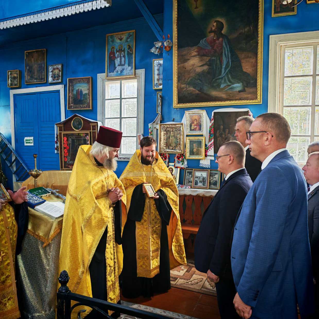 Для гостей протоиерей Владимир Янчесов провел экскурсию по храму, познакомил с его историей и духовными традициями. В завершение встречи священнослужители вручили почётным гостям иконы в благословение за их труды.