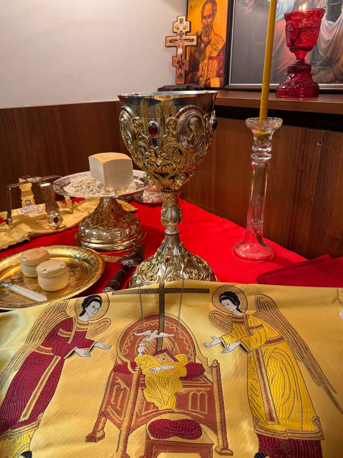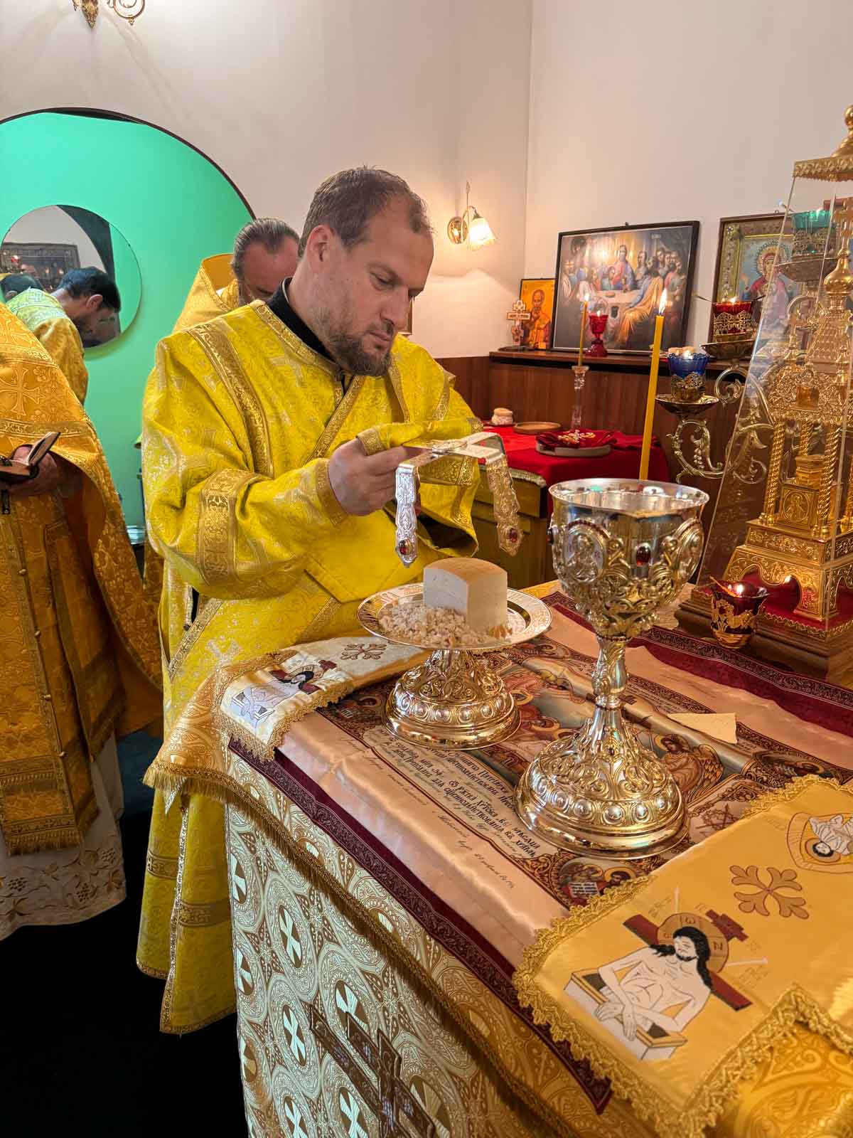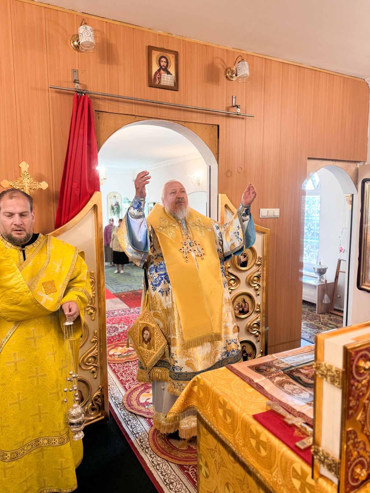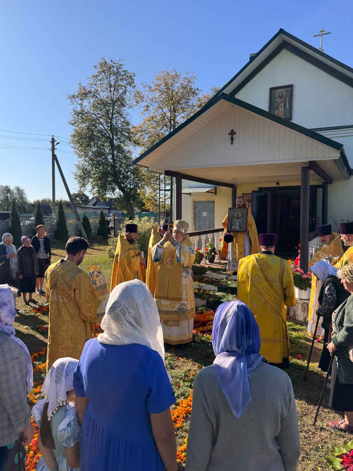 Божественную литургию 22 сентября 2025 года, в попразднество Рождества Пресвятой Богородицы, день памяти святых праведных Богоотец Иоакима и Анны, святителя Феодосия Черниговского, Высокопреосвященнейший Стефан, архиепископ Гомельский и Жлобинский, совершил в приходе храма святителя Феодосия Черниговского в д.Новая Буда.