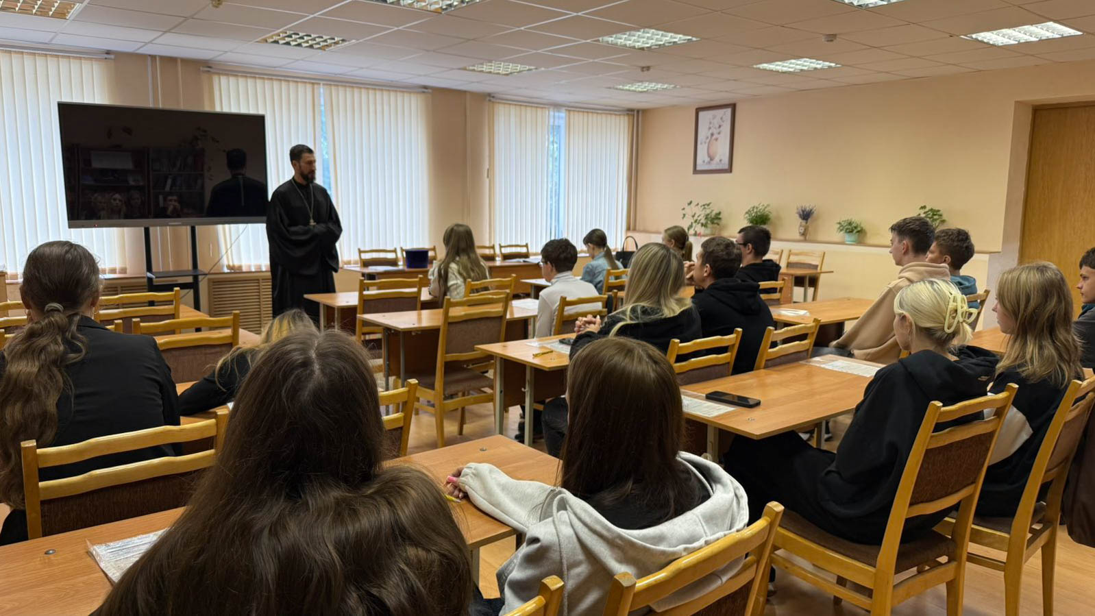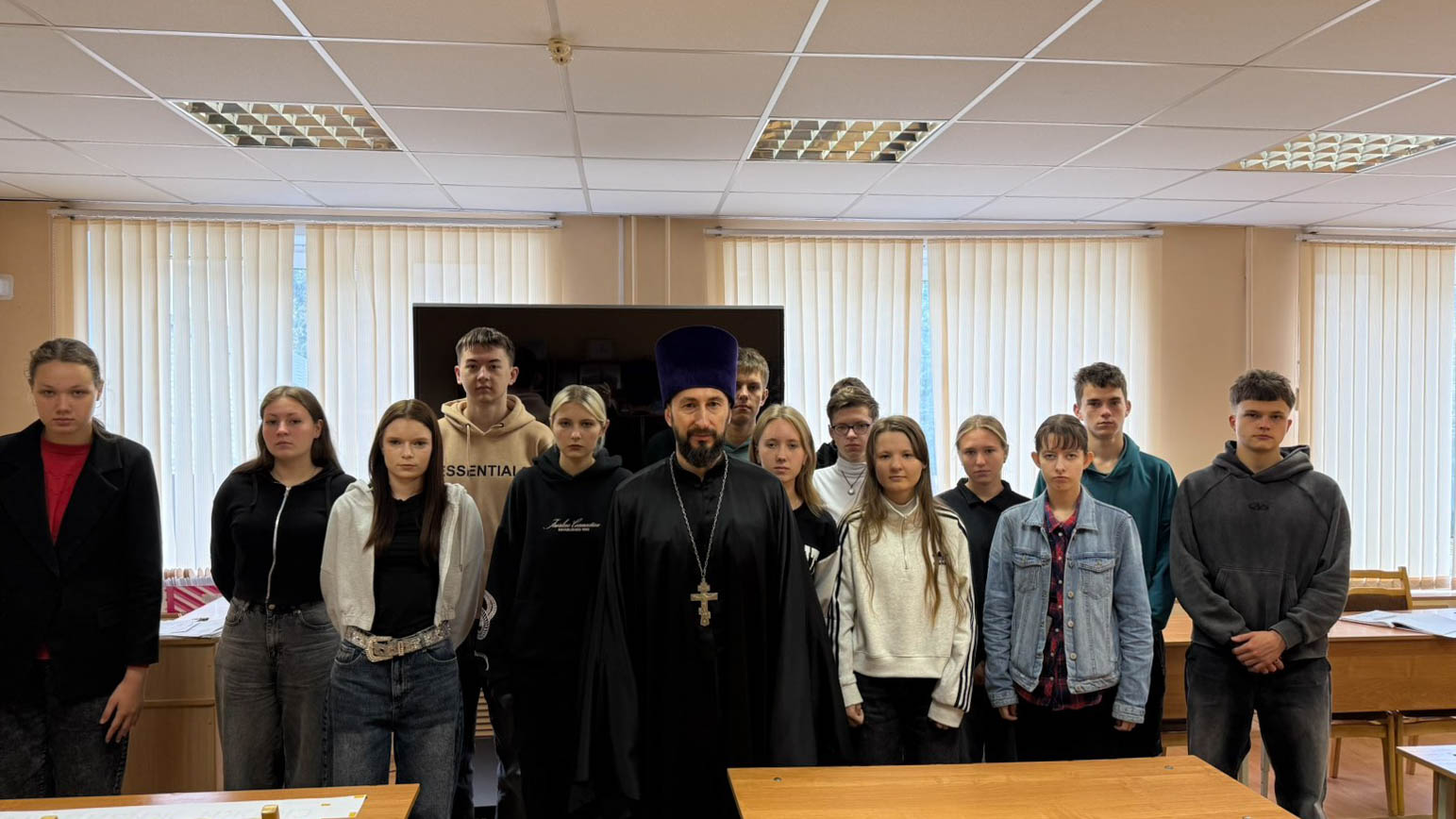 19 сентября состоялась встреча учащихся Жлобинского государственного технологического колледжа с клириком прихода храма святого мученика Иоанна Воина иереем Сергием Плетежовым. В рамках месячника профилактики суицидального поведения обсуждали фундаментальные вопросы смысла жизни, разрушительного воздействия страстей на нашу жизнь и способы преодоления кризисных ситуаций.