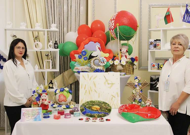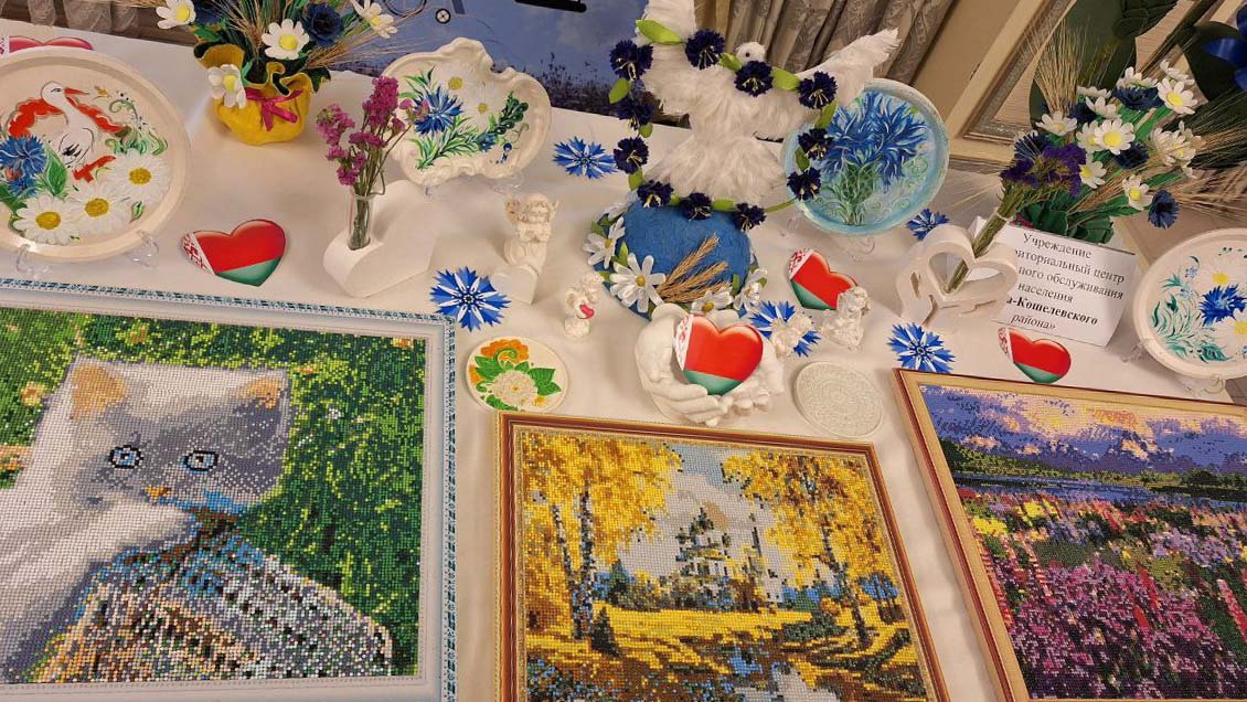 Сопровождала творческое мероприятие выставка «Шануйце дзіва на планеце – святую нашу Беларусь». Каждое произведение: яркие панно, оригинальные украшения, неповторимые предметы декора – хранит в себе частичку душевного тепла и надежды своего мастера.