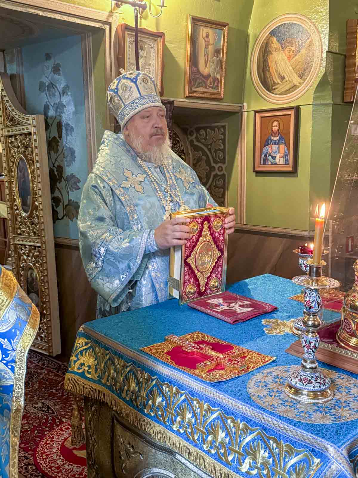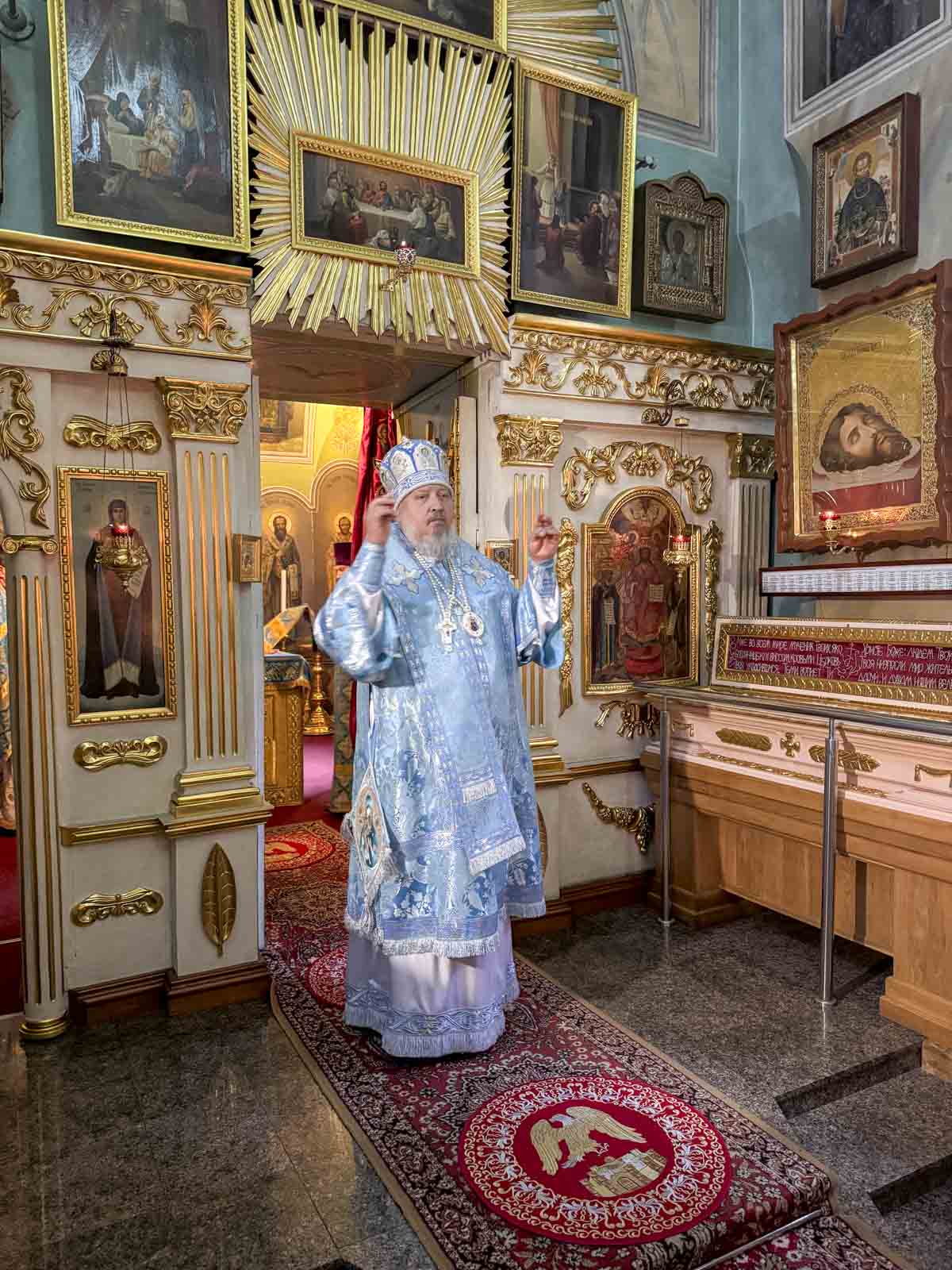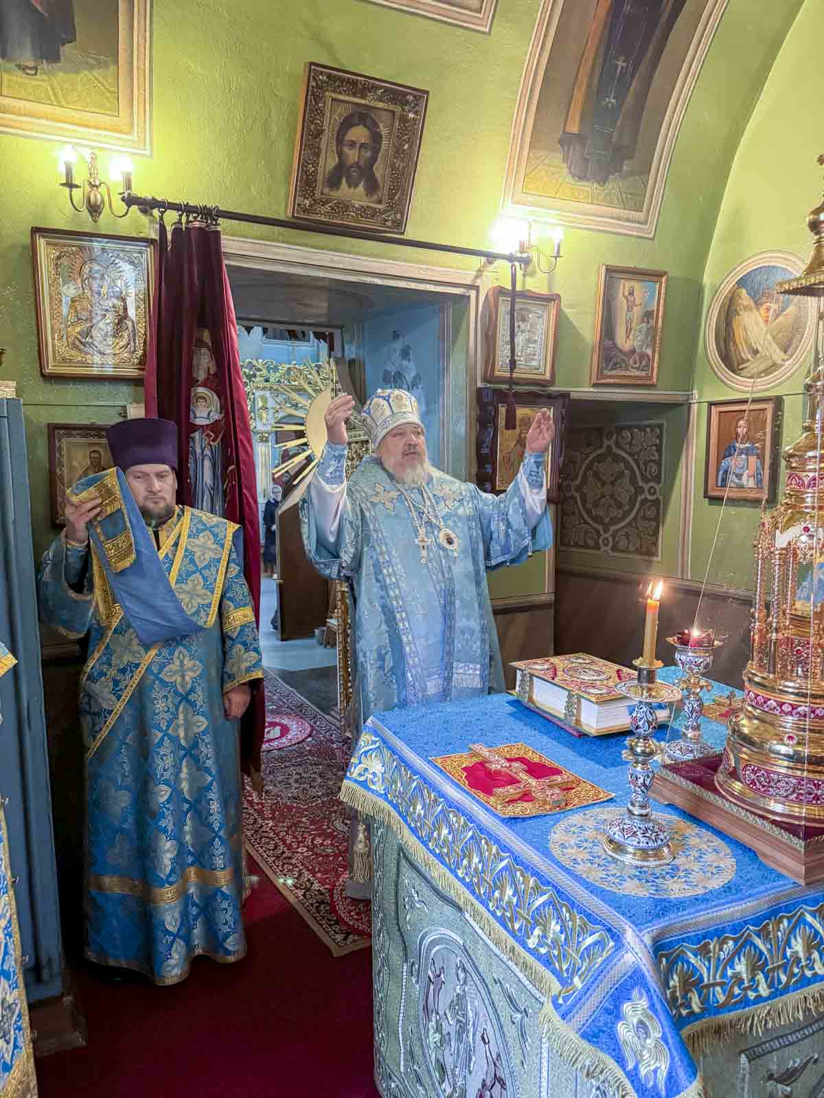Божественную литургию 24 сентября 2025 года, в среду седмицы 16-ой по Пятидесятнице, попразднство Рождества Пресвятой Богородицы, Высокопреосвященнейший Стефан, архиепископ Гомельской и Жлобинский, совершил в Казанском приделе Петро-Павловского кафедрального собора г.Гомеля.