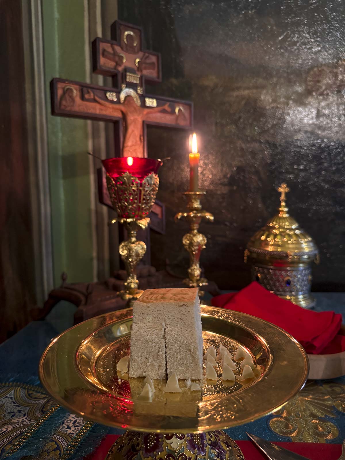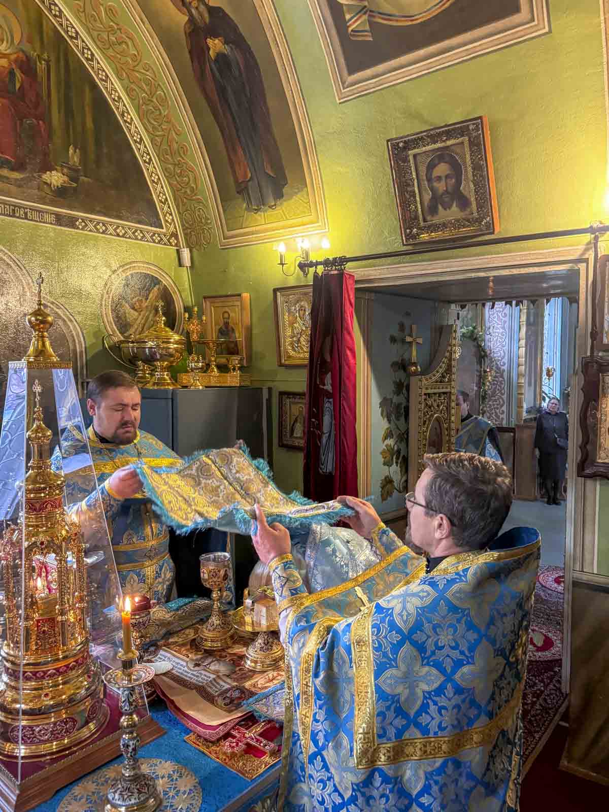 За богослужением были вознесены сугубые молитвенные прошения о восстановлении мира.