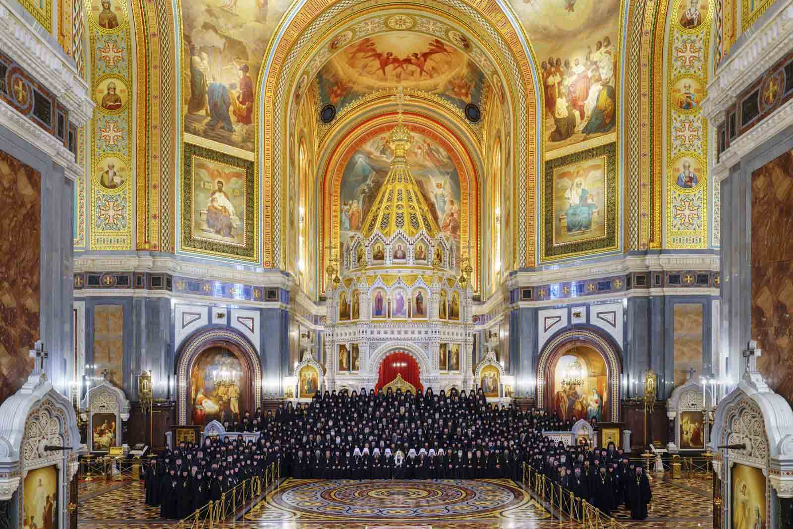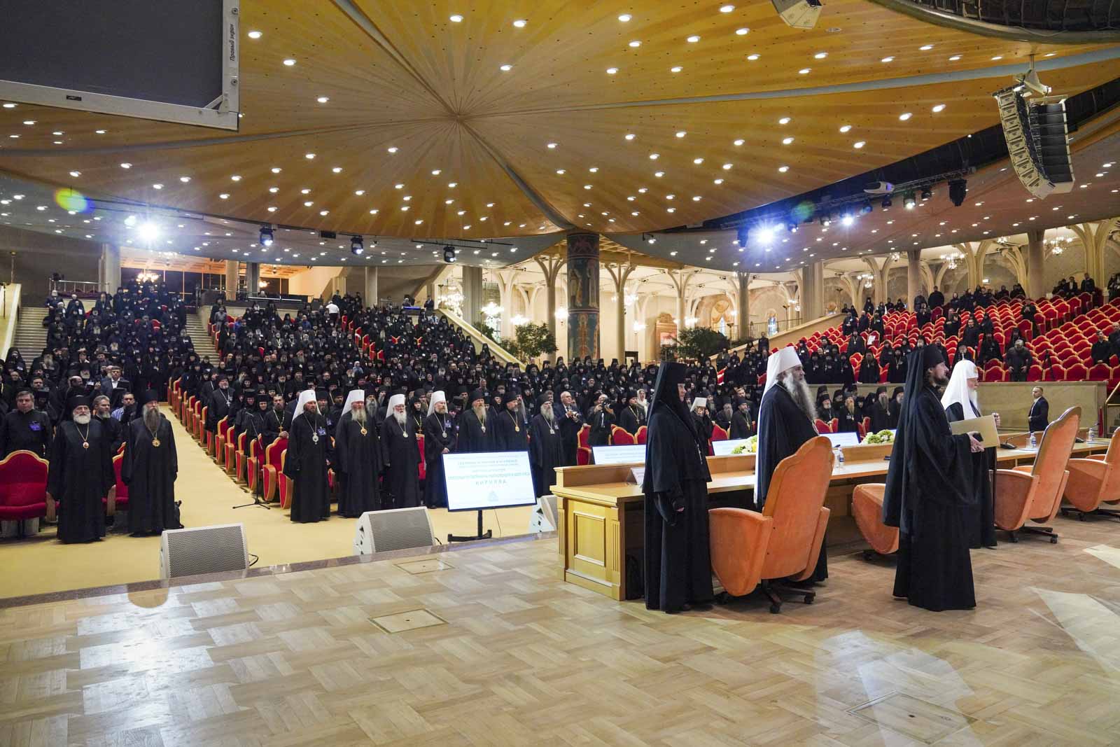 Перед началом заседания в нижней Преображенской церкви Храма Христа Спасителя была совершена Божественная литургия.