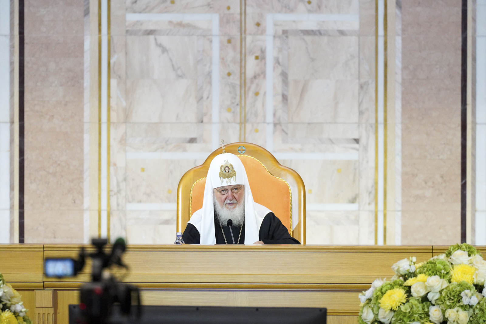 Предстоятель Русской Православной Церкви выступил с основным докладом.