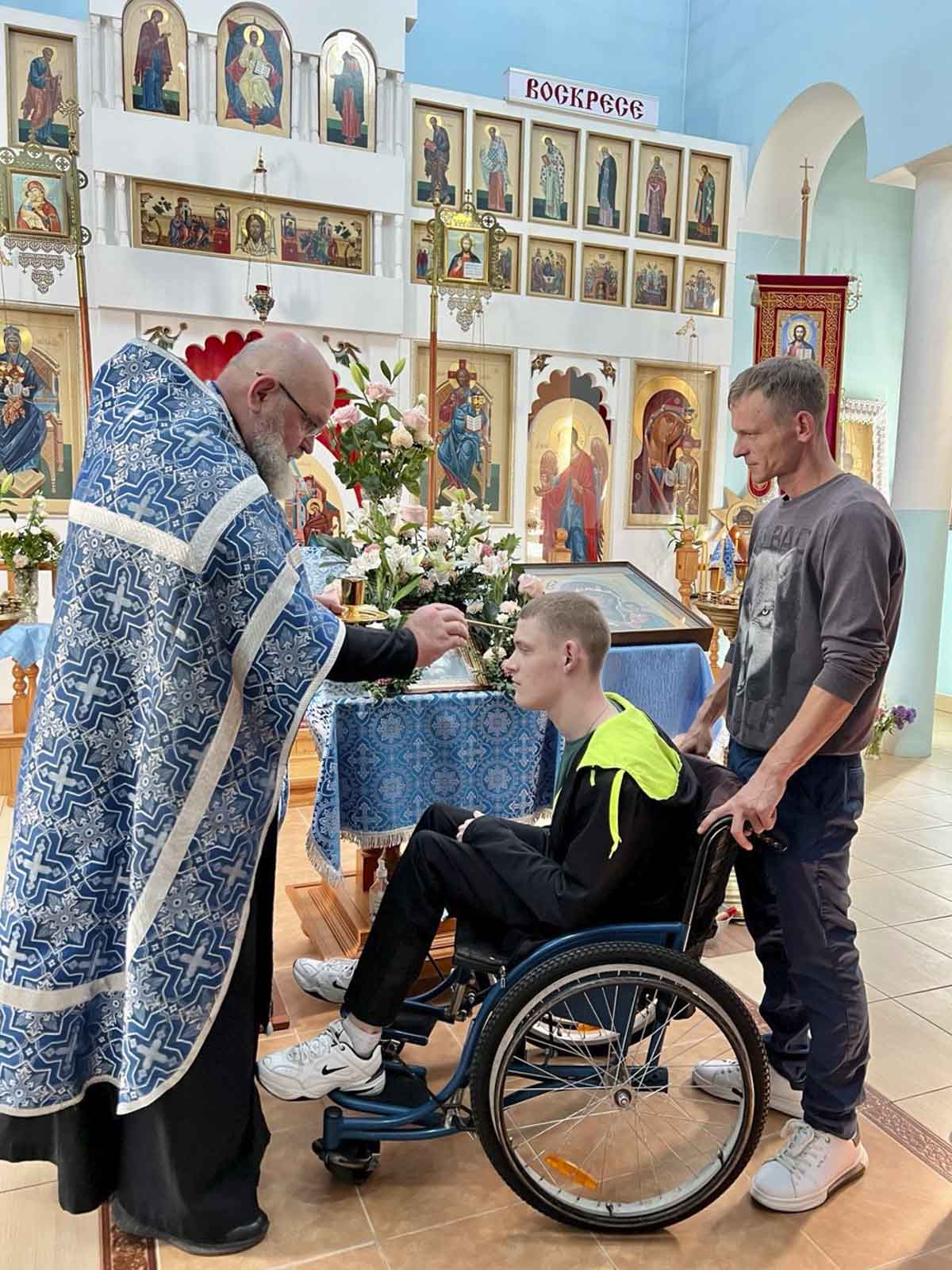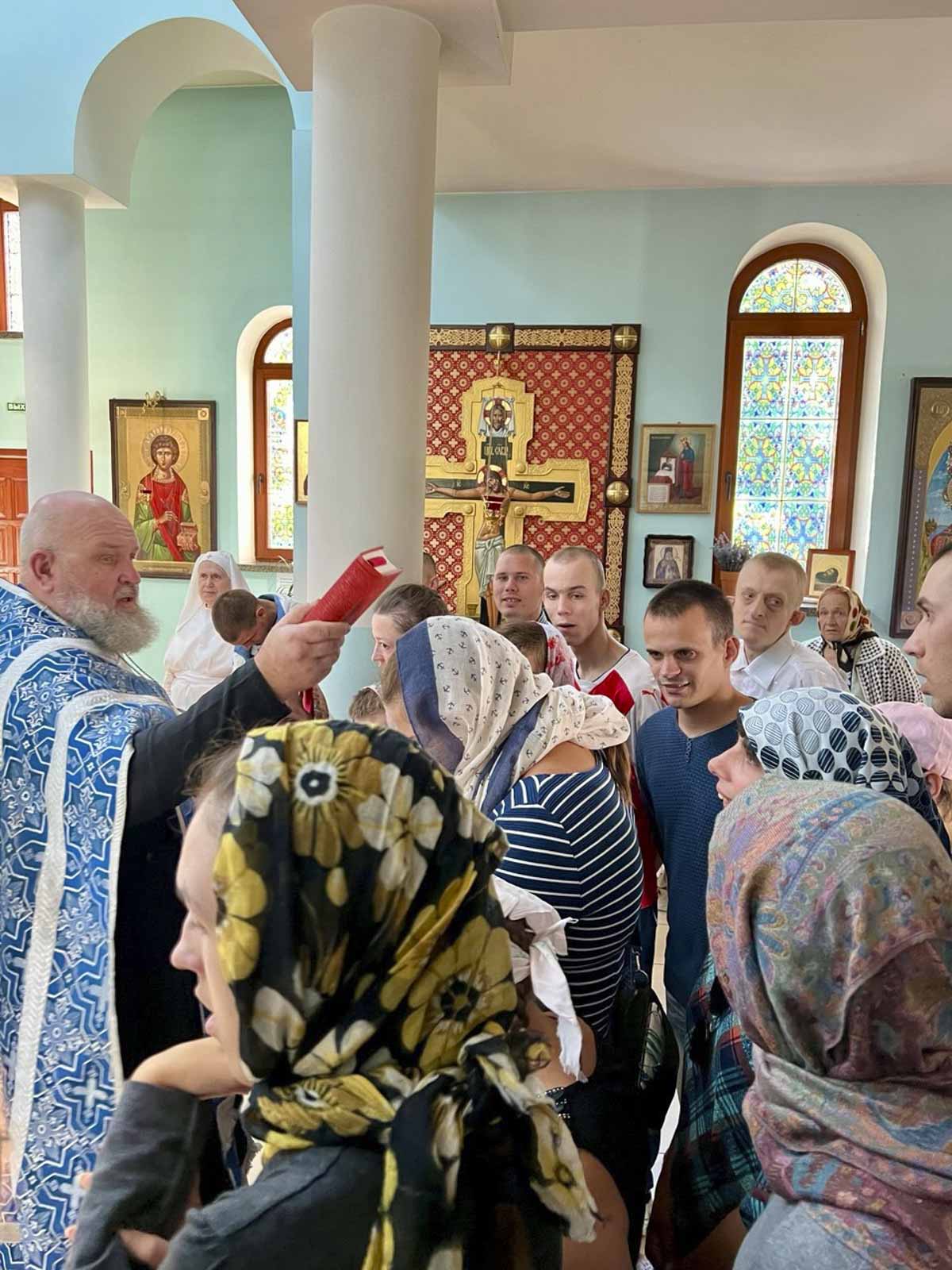 Настоятель прихода иерей Эдуард Бондарь совершил благодарственный молебен, после чего рассказал детям о празднике Рождества Пресвятой Богородицы и помазал всех освящённым елеем.