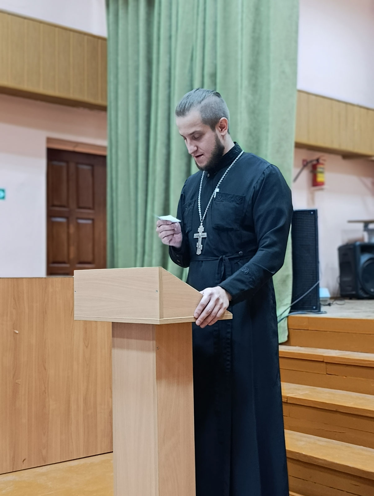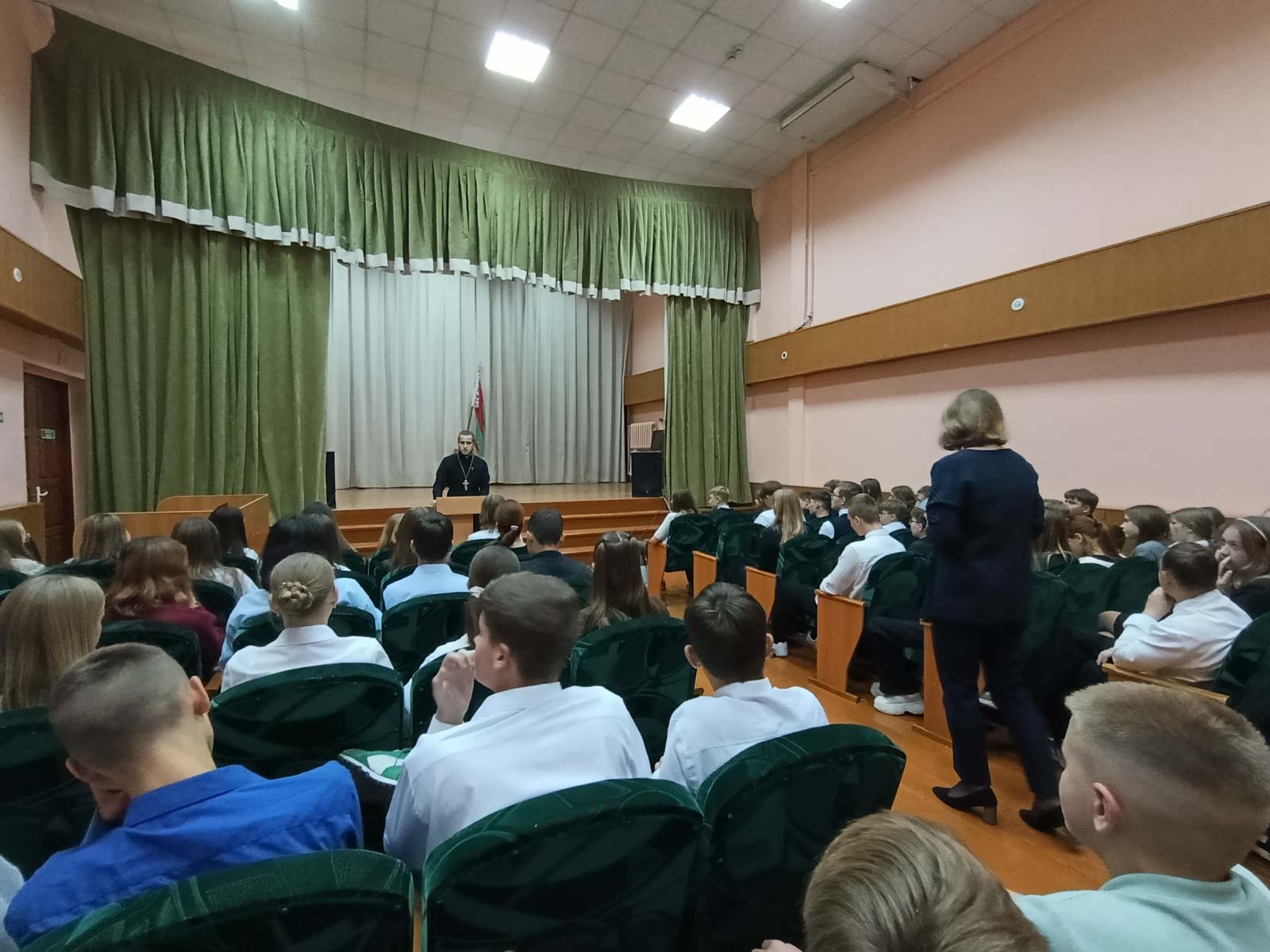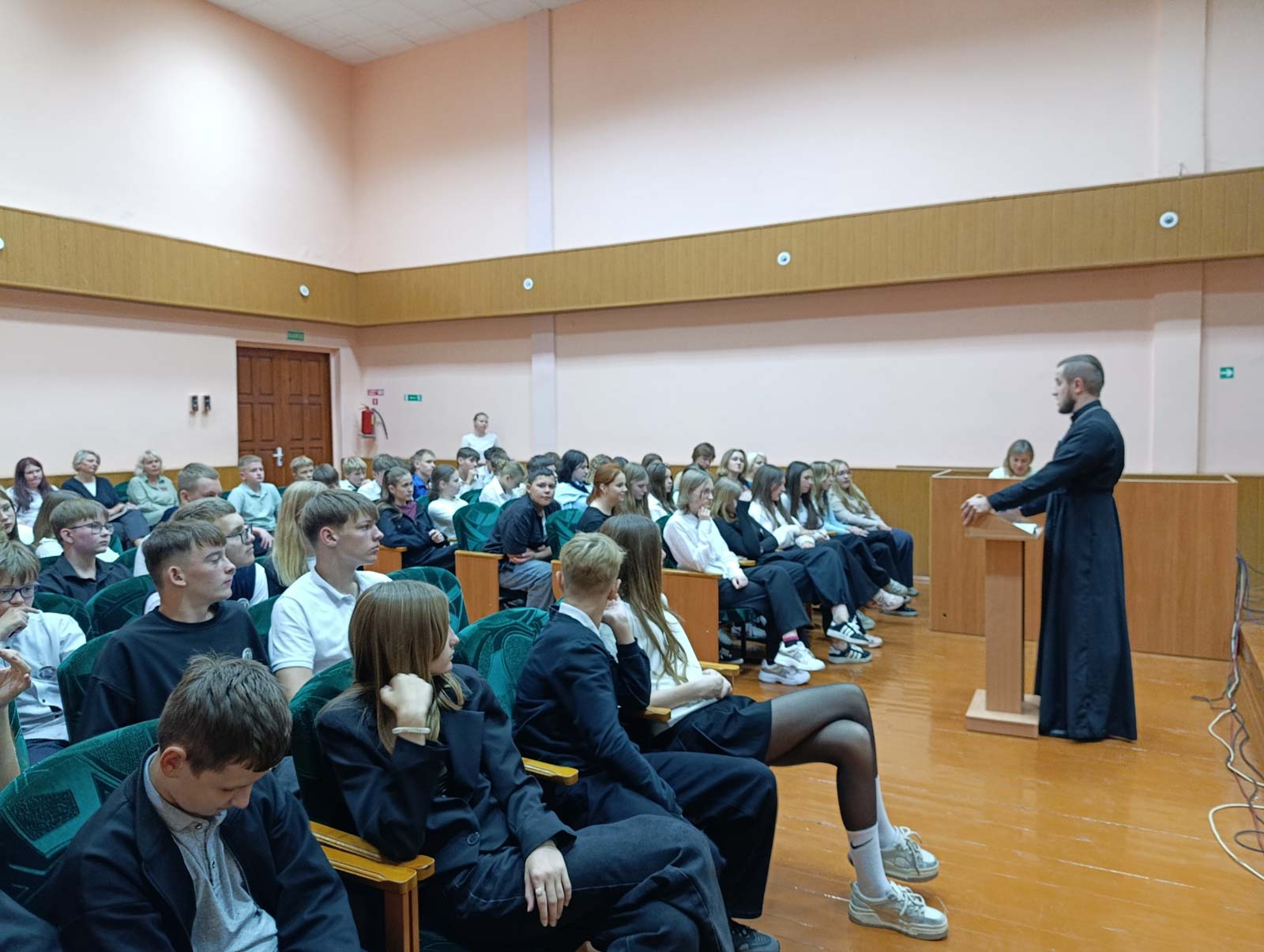 24 сентября 2025 года состоялось духовно-нравственное мероприятие для старшеклассников ГУО «Гимназия г. Добруша». Беседу «О смысле человеческой жизни» провёл помощник благочинного по религиозному образованию и катехизации иерей Никита Кулиткин.