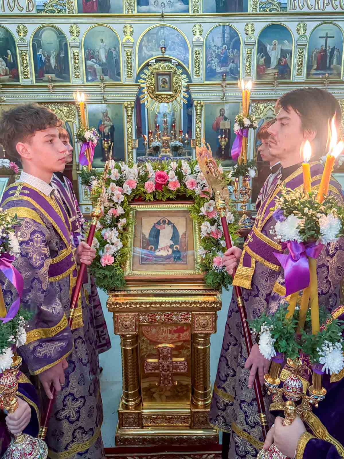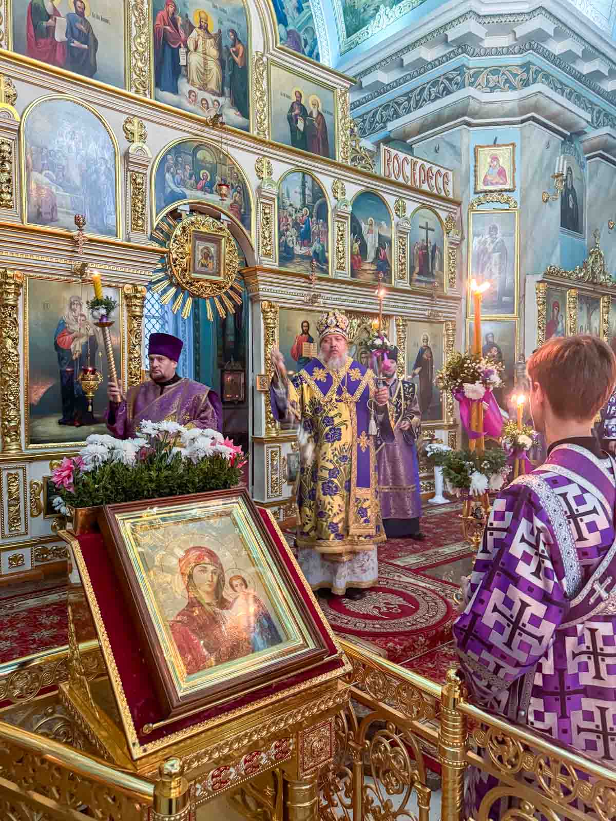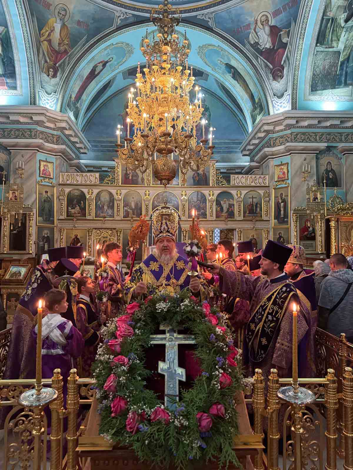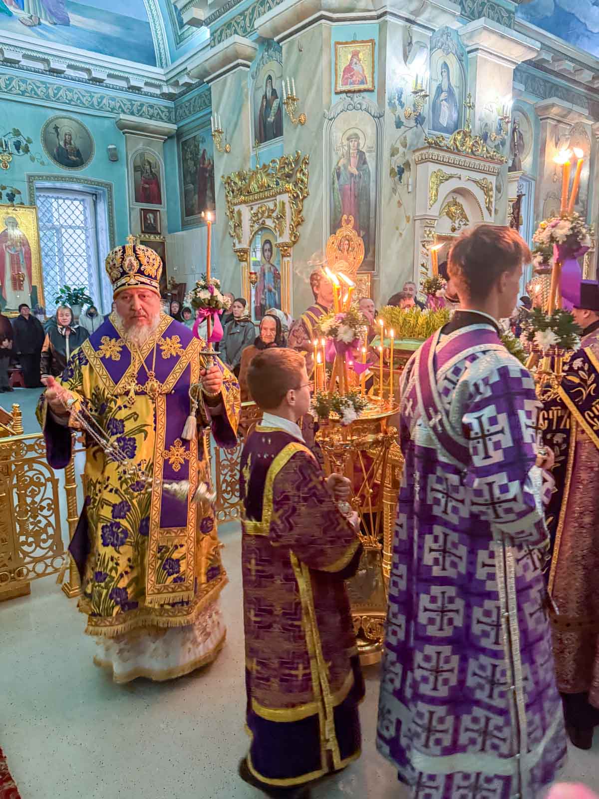 За богослужением архипастырю сослужили секретарь Гомельской епархии протоиерей Георгий Алампиев и клирики кафедрального собора.