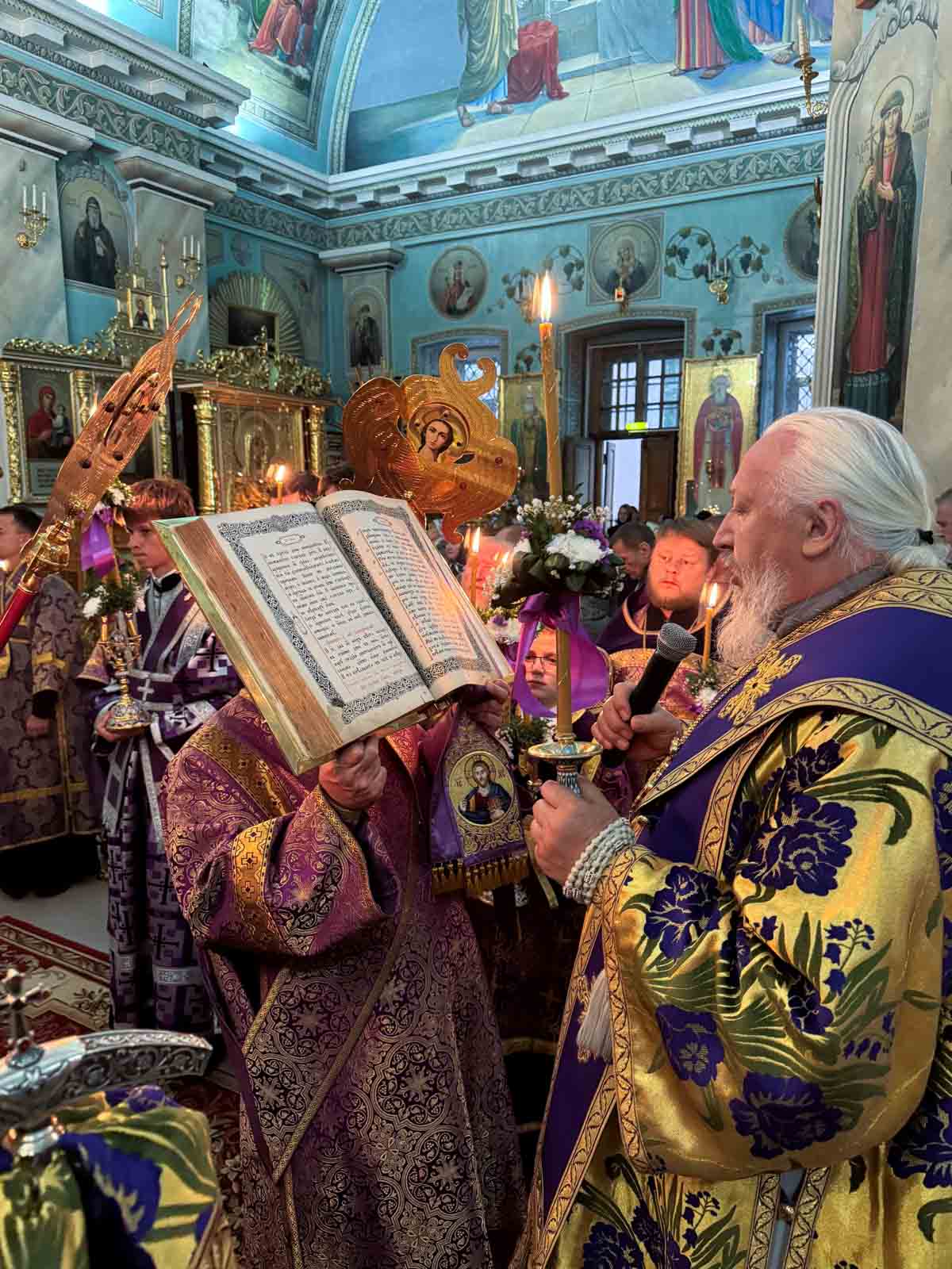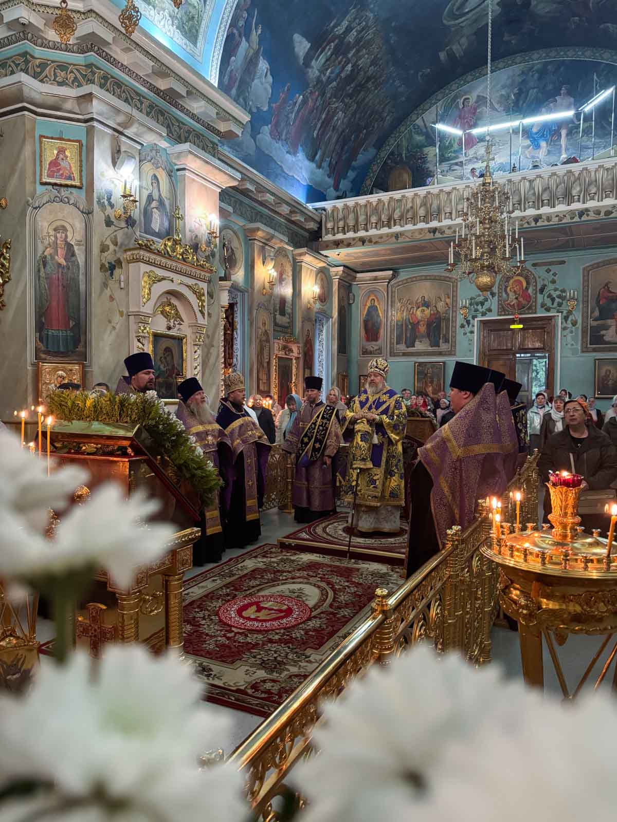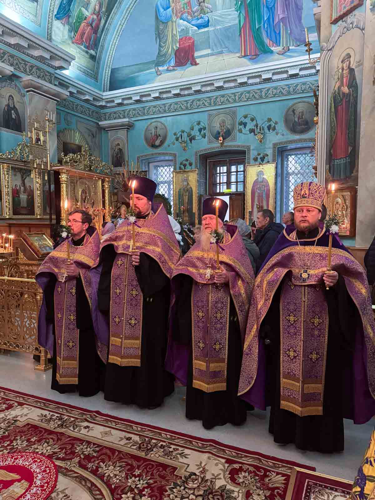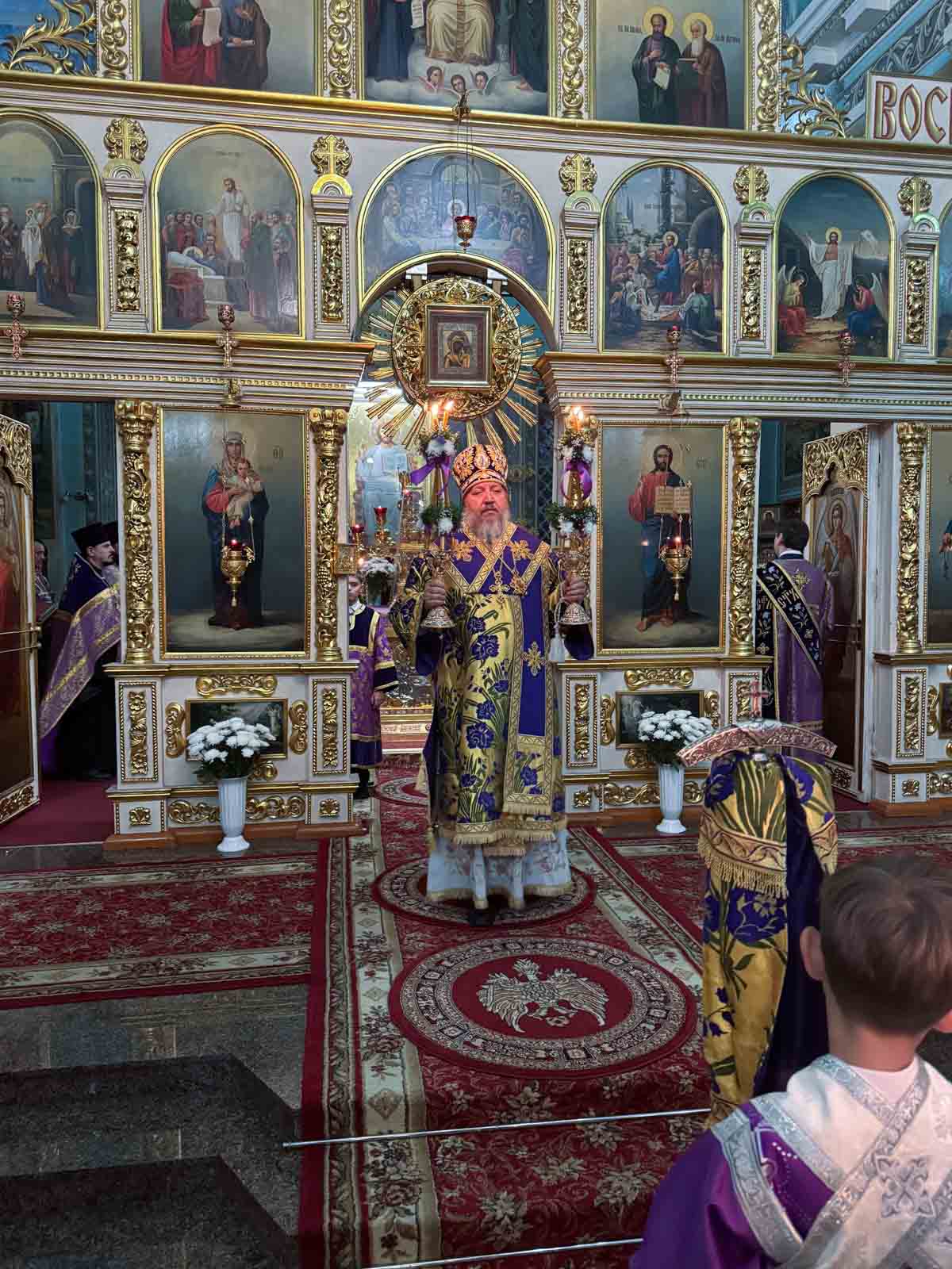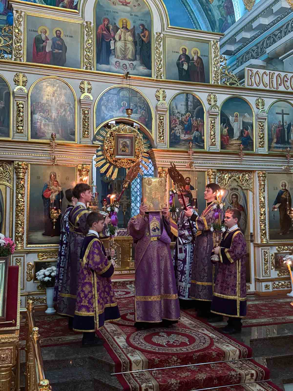 Всенощное бдение 27 сентября 2025 года, в канун Недели 16-й по Пятидесятнице, Высокопреосвященнейший Стефан, архиепископ Гомельский и Жлобинский, совершил в Петро-Павловском кафедральном соборе города Гомеля.