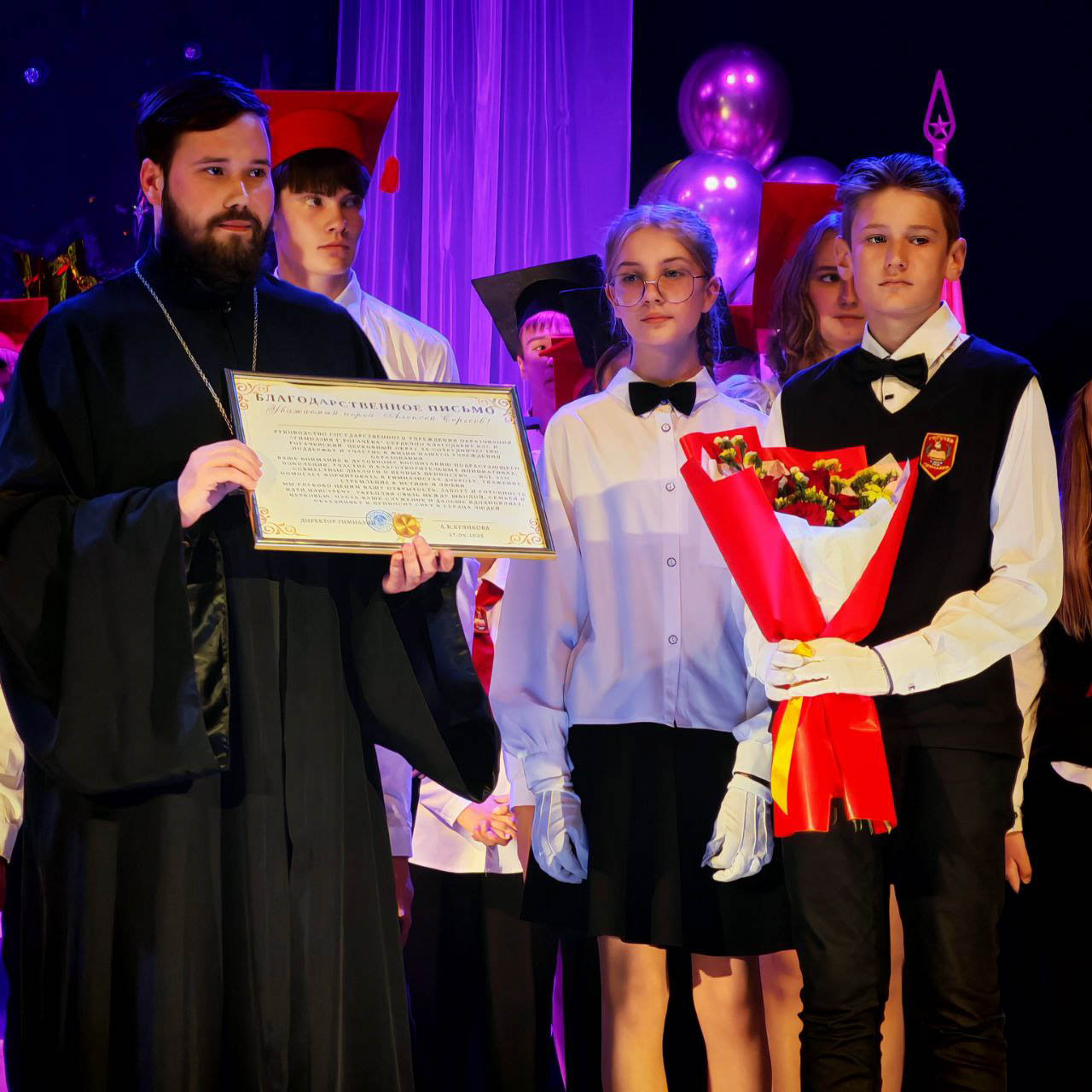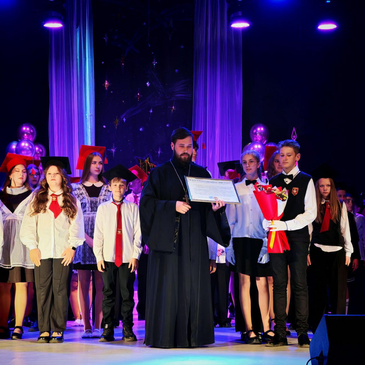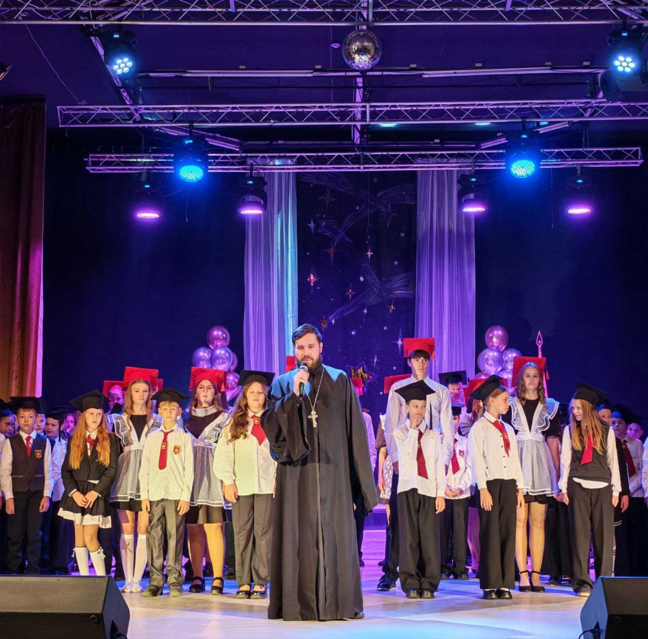 Почётное право напутствовать молодое поколение было предоставлено клирику прихода храма святого благоверного князя Александра Невского в г. Рогачёве иерею Александру Ткаченко. Обращаясь к собравшимся, отец Александр подчеркнул глубокую связь между образованием и духовным становлением личности, пожелав учащимся, чтобы их путь к знаниям был озарён светом истины и мудрости.