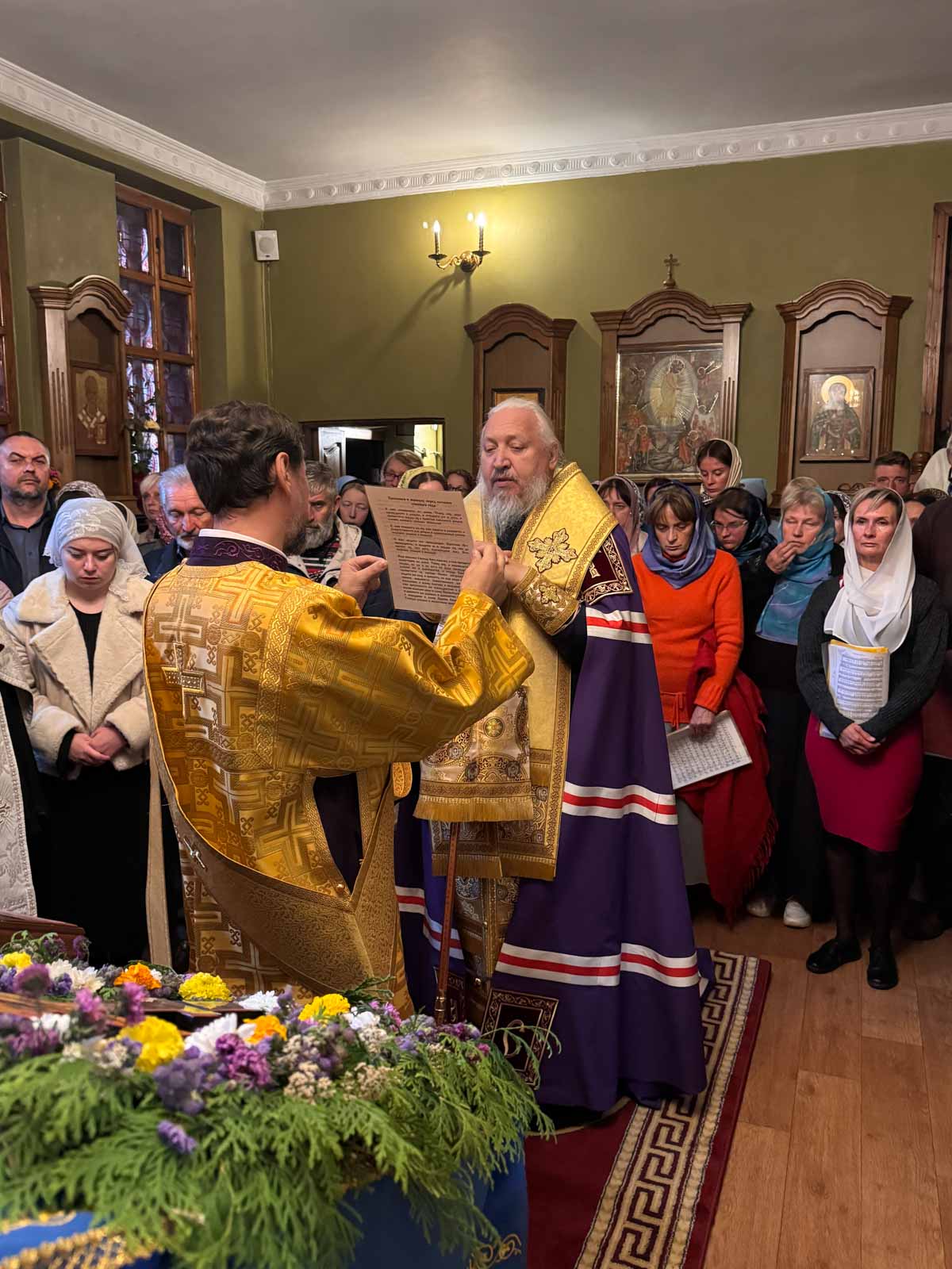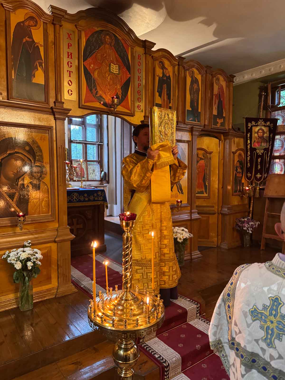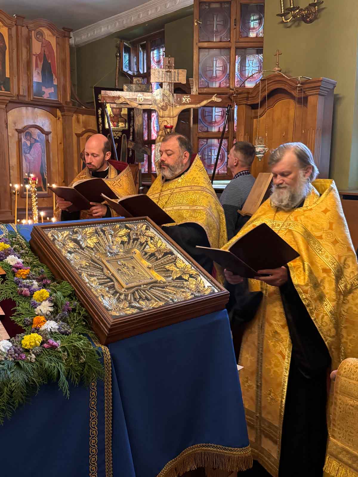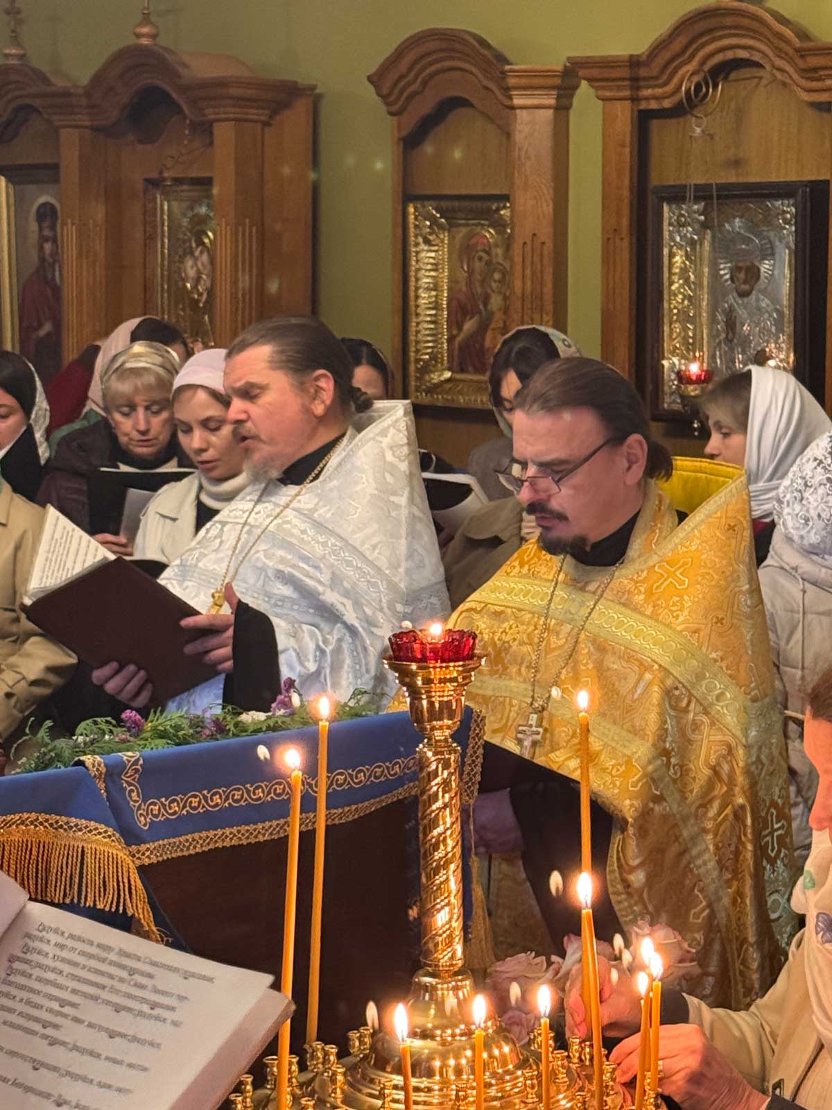 Праздничное вечернее богослужение с чтением акафиста Пресвятой Богородице возглавил Высокопреосвященнейший Стефан, архиепископ Гомельский и Жлобинский. Его Высокопреосвященству сослужили благочинный Гомельского районного округа протоиерей Артемий Кривицкий, настоятель прихода и ректор курсов протоиерей Вадим Качан, а также преподаватели курсов в священном сане.