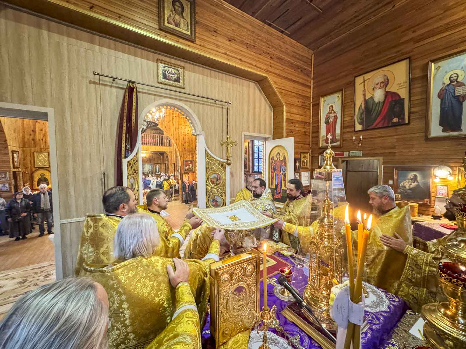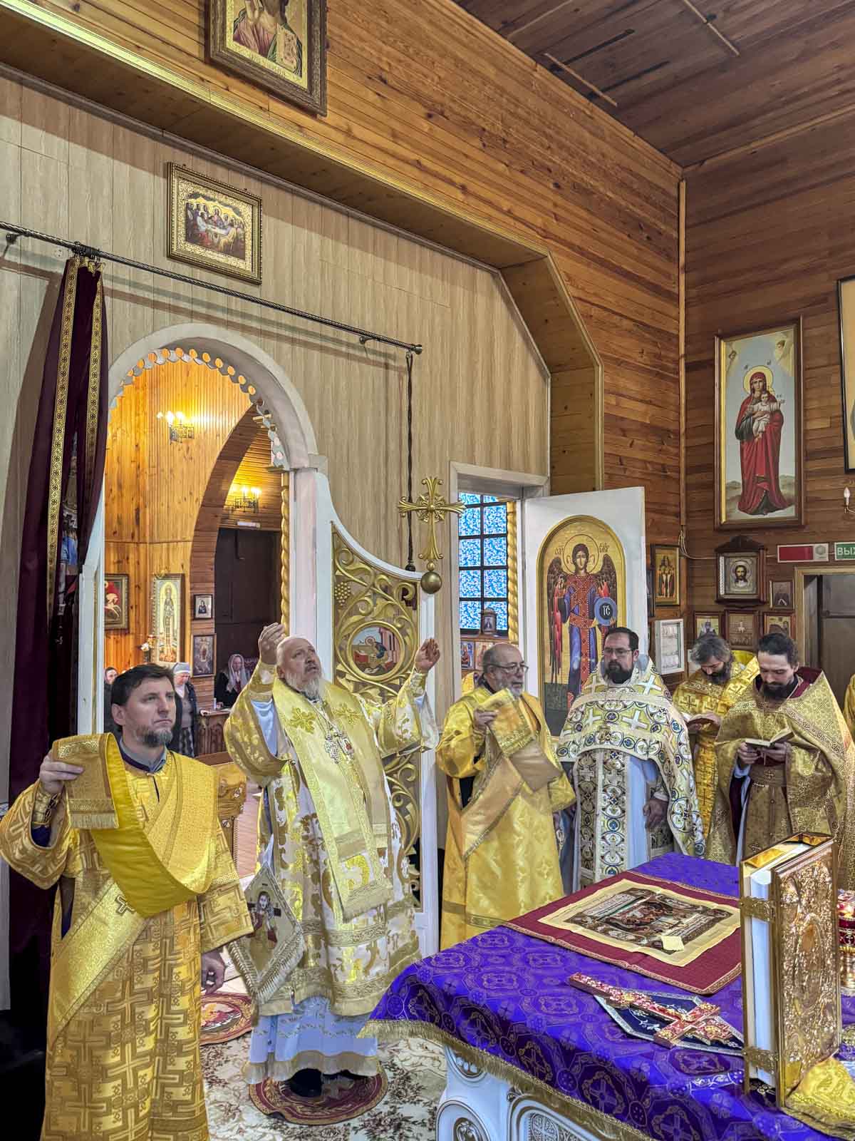 Во время Литургии были вознесены сугубые молитвенные прошения о восстановлении мира.
