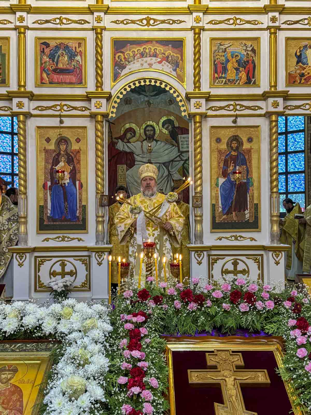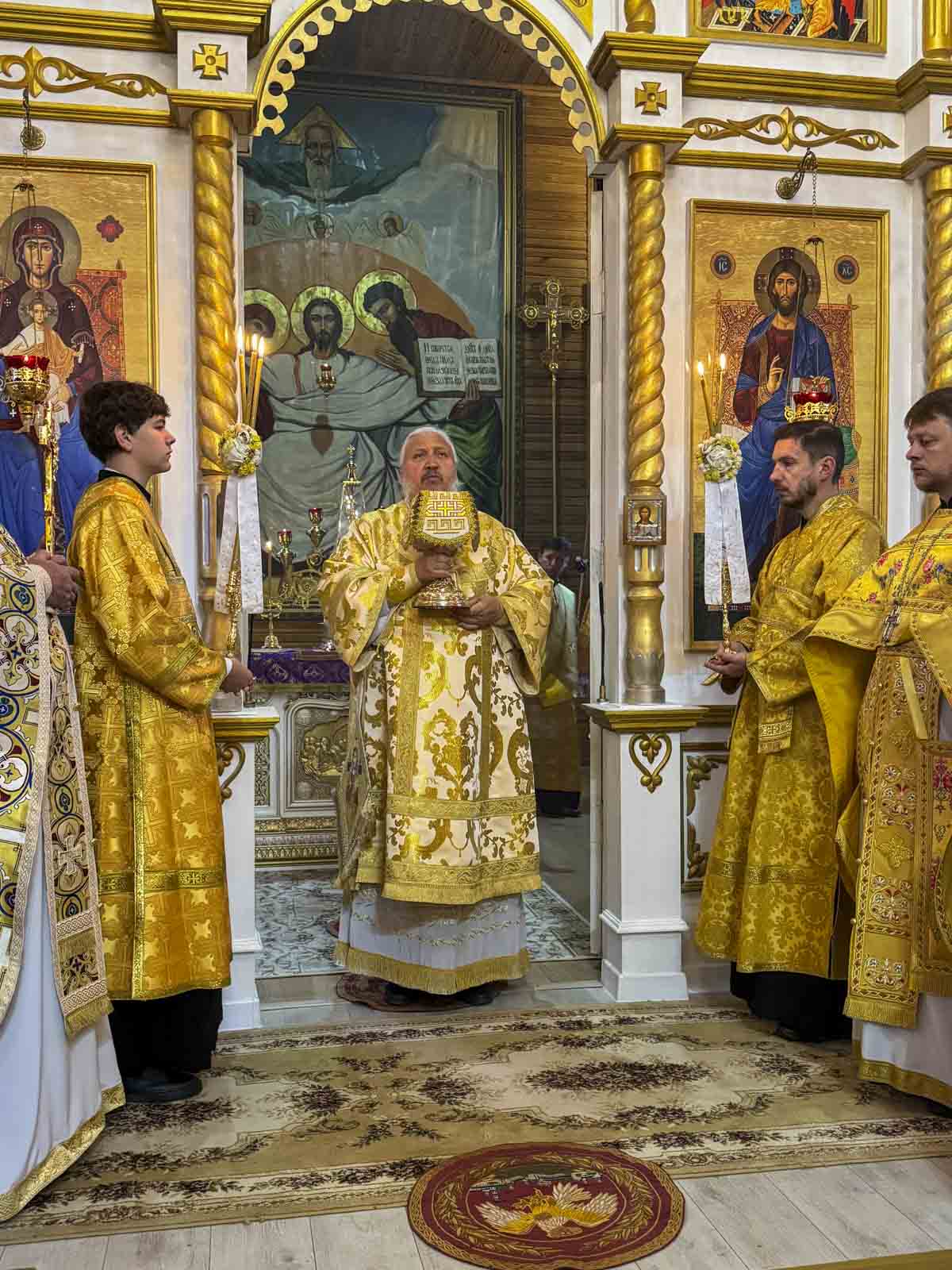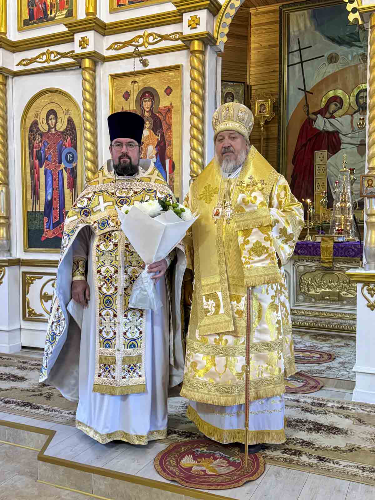 По окончании богослужения архипастырь обратился с тёплыми словами к настоятелю прихода протоиерею Игорю Ольшанову, поздравив его с днём тезоименитства.