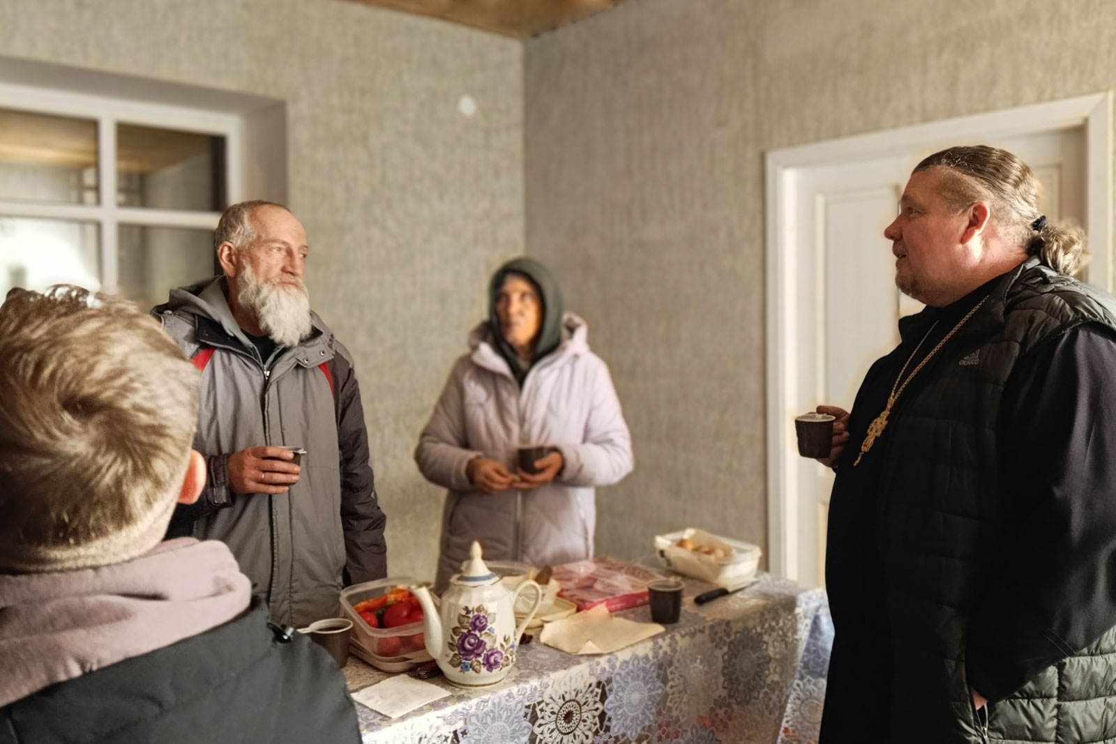 После экскурсии паломники были приглашены на трапезу. За горячим чаем в атмосфере братской любви и доверия, продолжился разговор. Коснулись таинств Церкви. Настоятель, с присущей ему мудростью и глубиной, говорил о целительной силе Елеоосвящения, о покаянии как пути к очищению души и совершенству в Боге, о Причастии как средоточии духовной жизни. Он объяснял, что таинства – это непосредственное и живое общение со Спасителем, возможность обрести Его благодать.