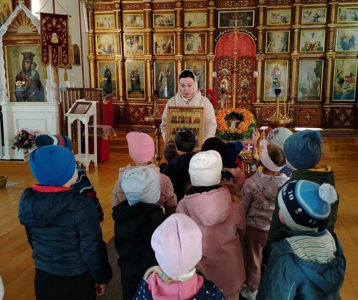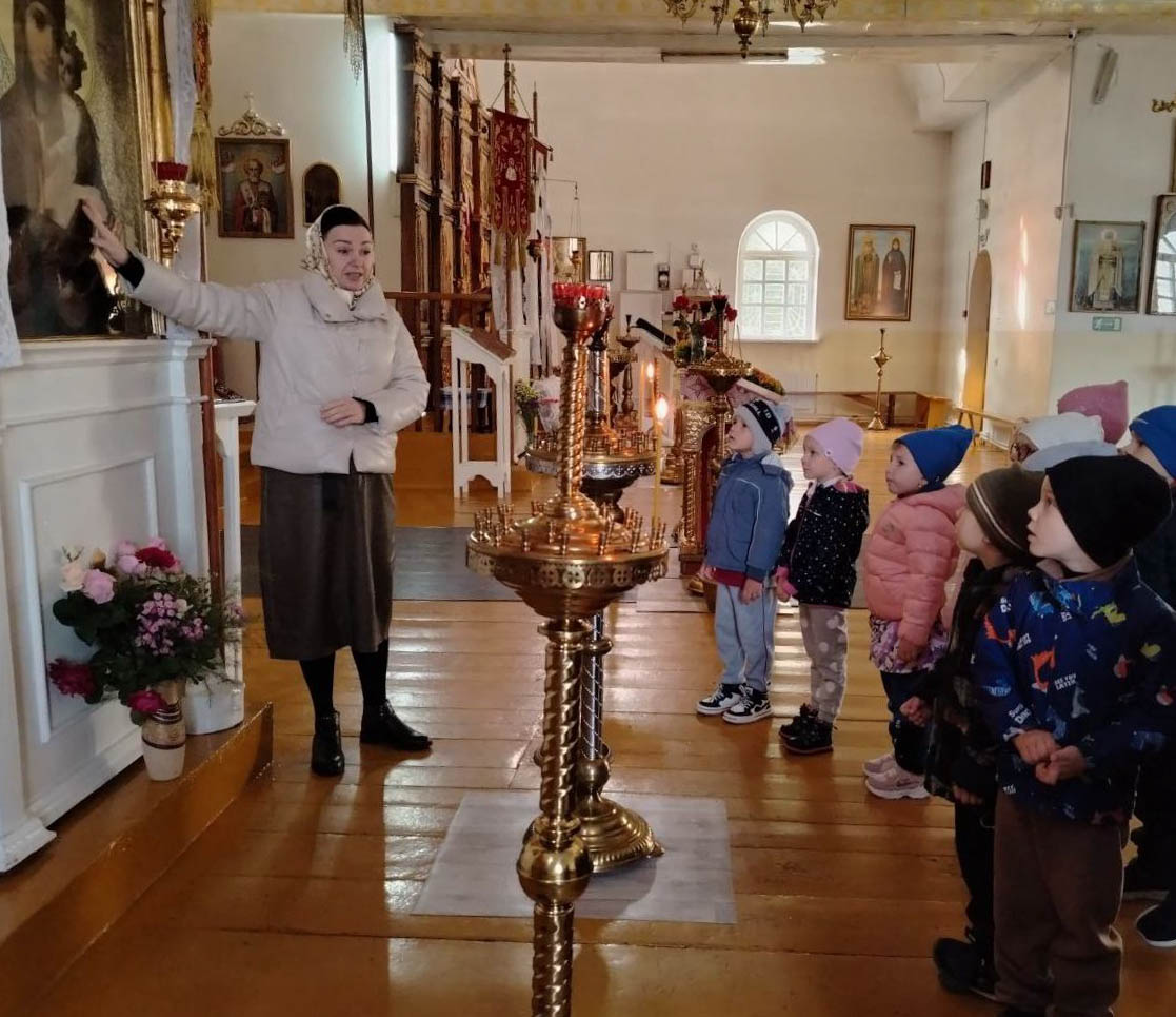 А воспитанники старшей группы ГУО «Детский сад №1 г.п.Лоев», занимающиеся по программе проекта «Основы православной культуры», сделали свои первые шаги в православном Храме. Ребята вместе с воспитателями побывали на экскурсии в Храме Святой Живоначальной Троицы г.п.Лоев, где специалист по приходскому просвещению Людмила Карпенко рассказала ребятам об устроении Храма, познакомила с понятием «икона». Ребята узнали о Господе нашем Иисусе Христе, и его Матери Пресвятой Владычице Богородице Деве Марии. Также дошколята услышали рассказ, повествующий о «святых угодниках».