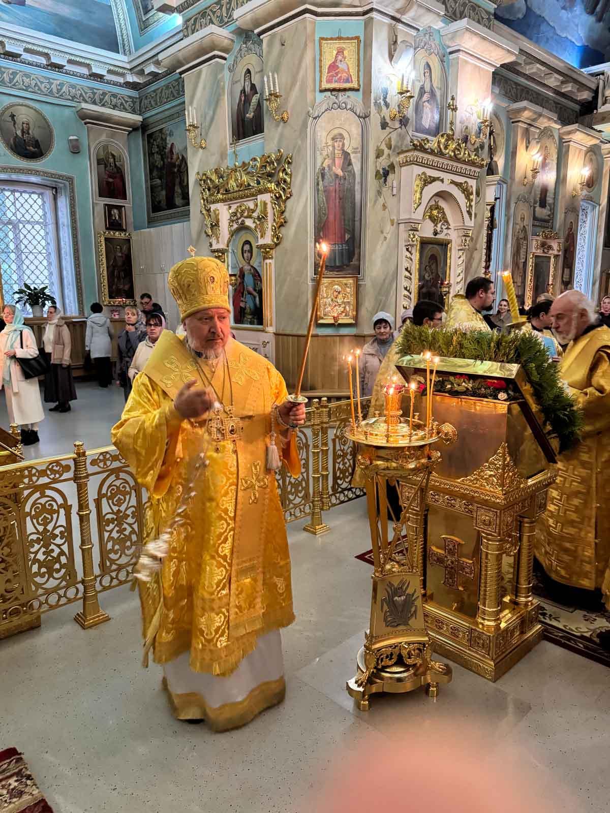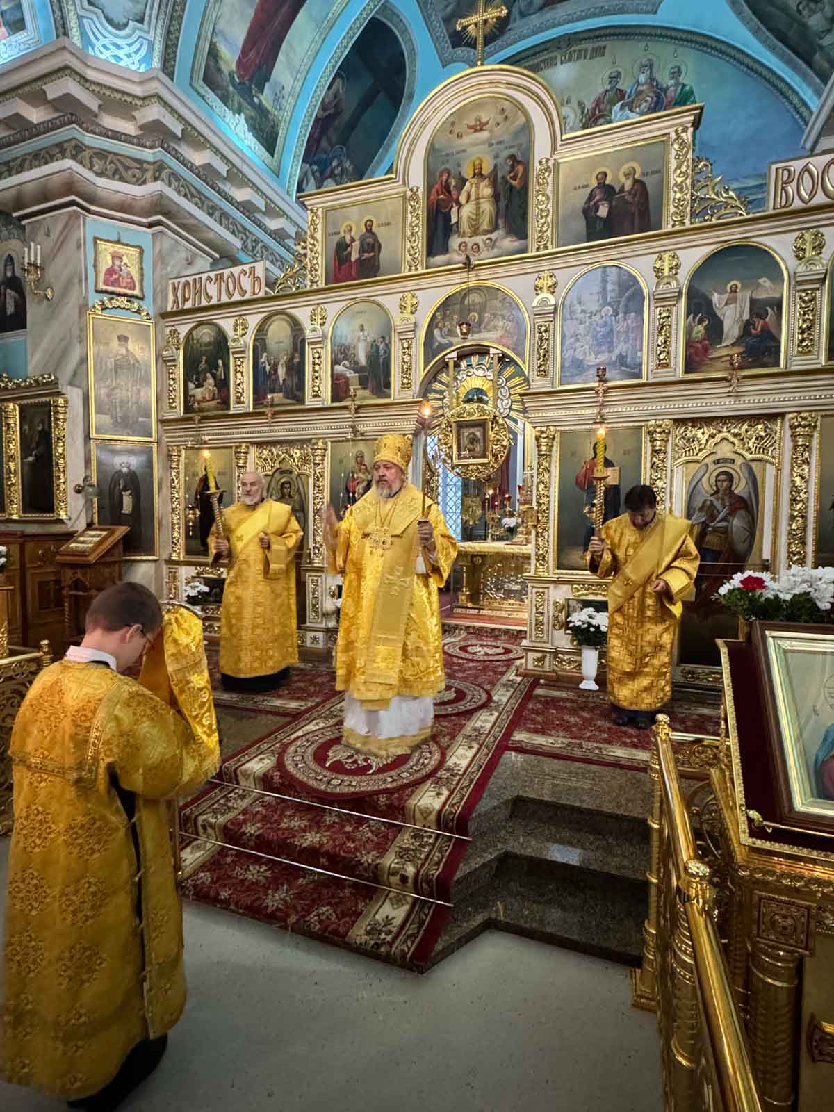Его Высокопреосвященству сослужили клирики кафедрального собора.